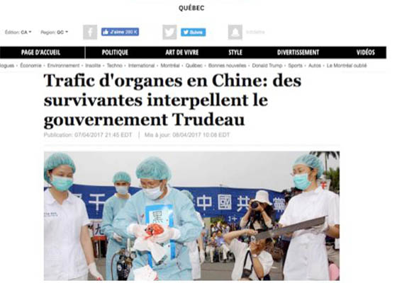 加拿大法文媒体发表了酷刑受害者呼吁总理关注中共活摘器官的报导。他们希望加拿大政府能够采取行动,制止这场灾难继续在暗中进行。