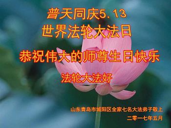 山东省青岛六个学法小组全体大法弟子恭祝伟大师尊华诞!恭贺世界法轮大法日!