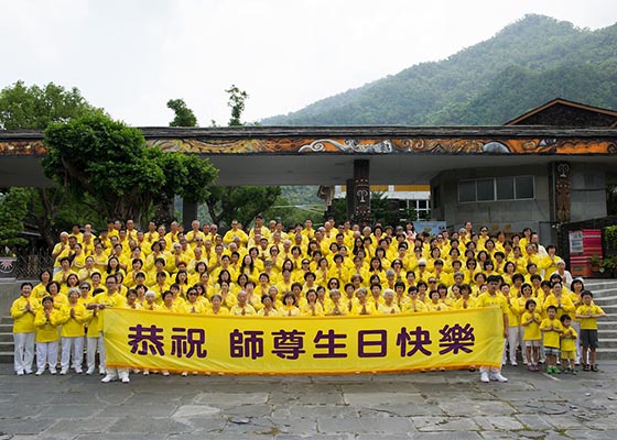 庆祝513世界法轮大法日暨法轮功创始人李洪志大师生日,屏东部份法轮功学员2017年5月6日在原住民文化园区前集体演炼功法,场面祥和殊胜。