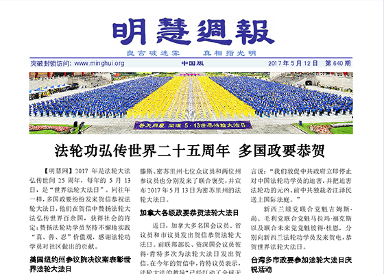 法轮功弘传世界二十五周年 多国政要恭贺