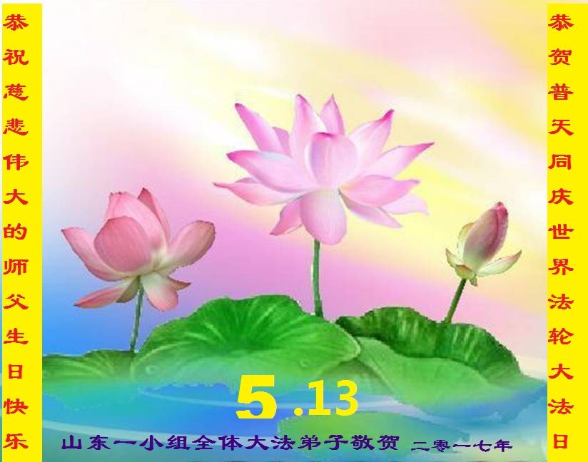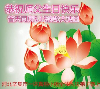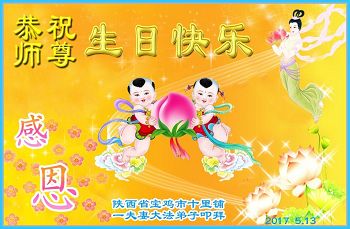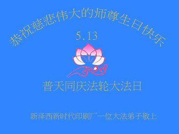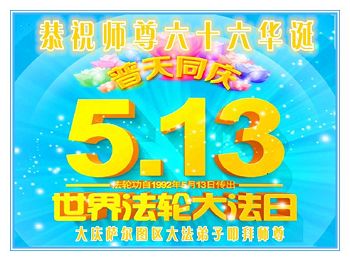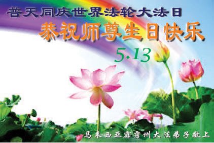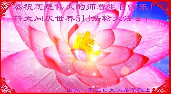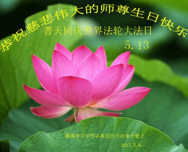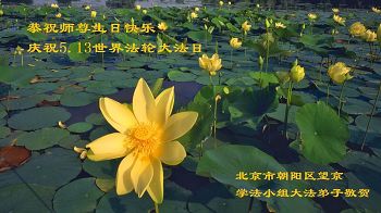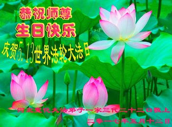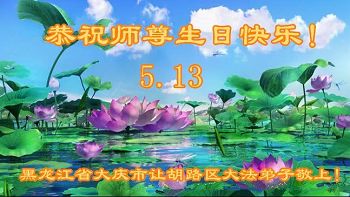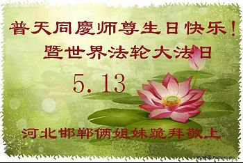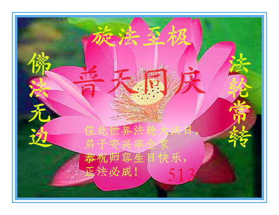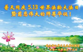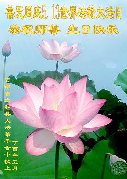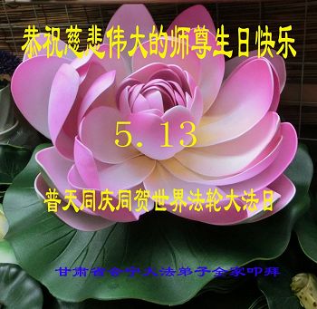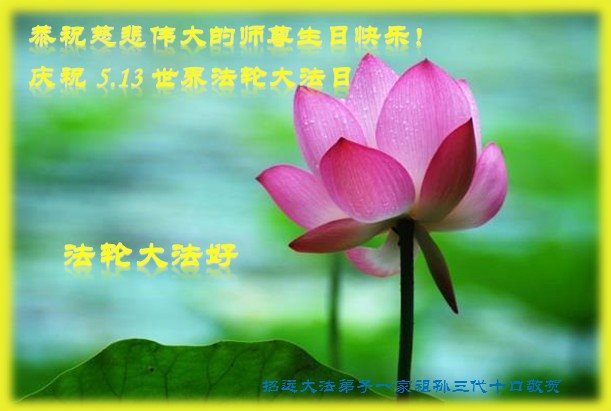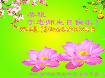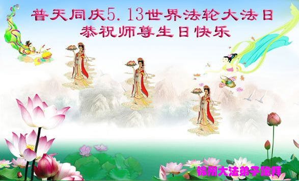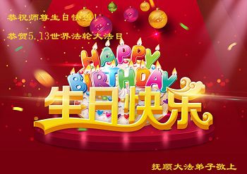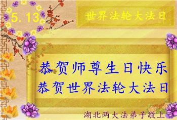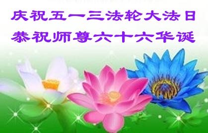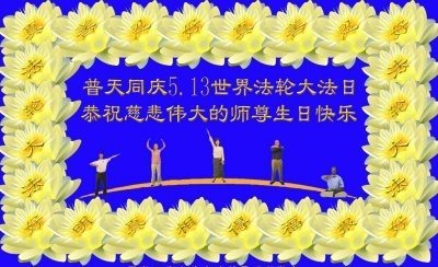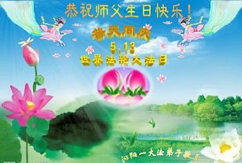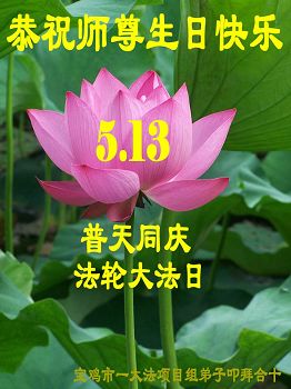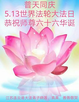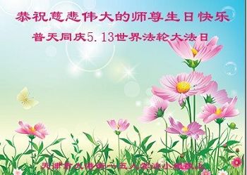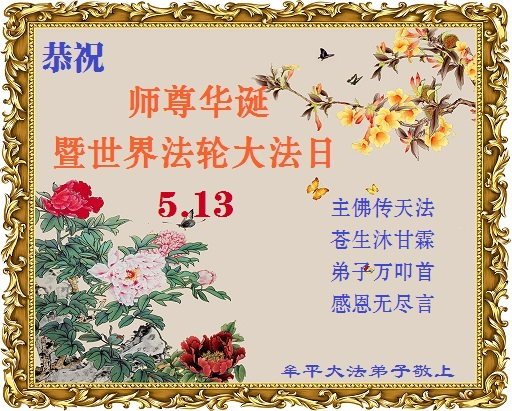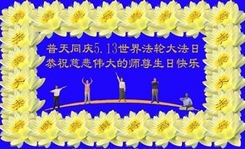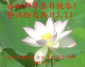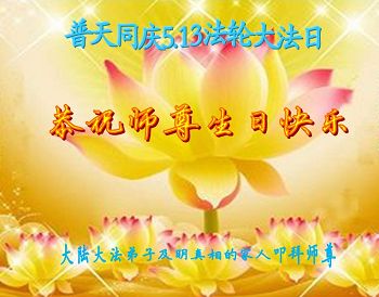 在五月十三日世界法轮大法日来临之际,衷心祝愿李老师生日快乐!法轮大法好!真善忍好!感谢大法洪传!感谢师尊救度之恩!