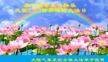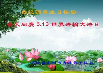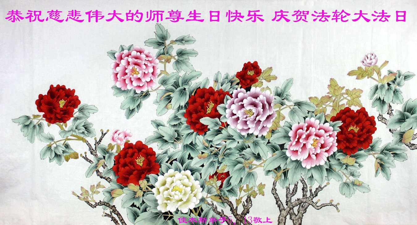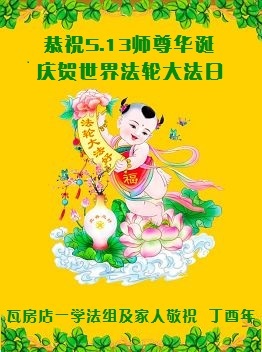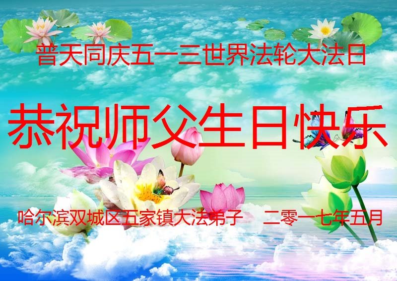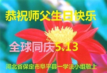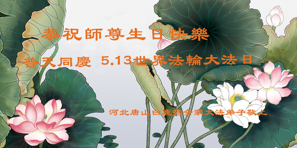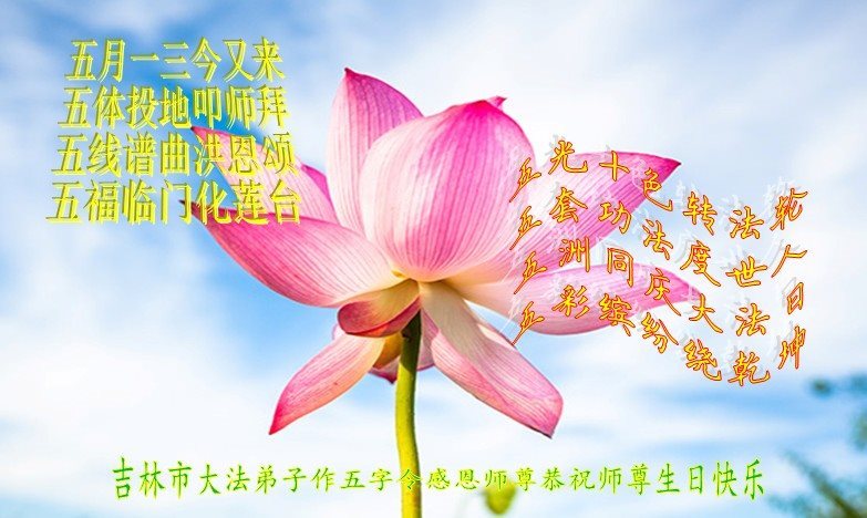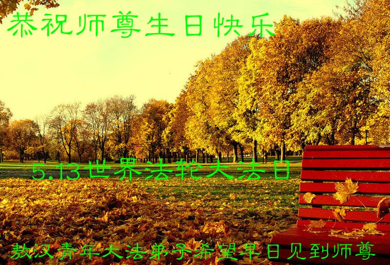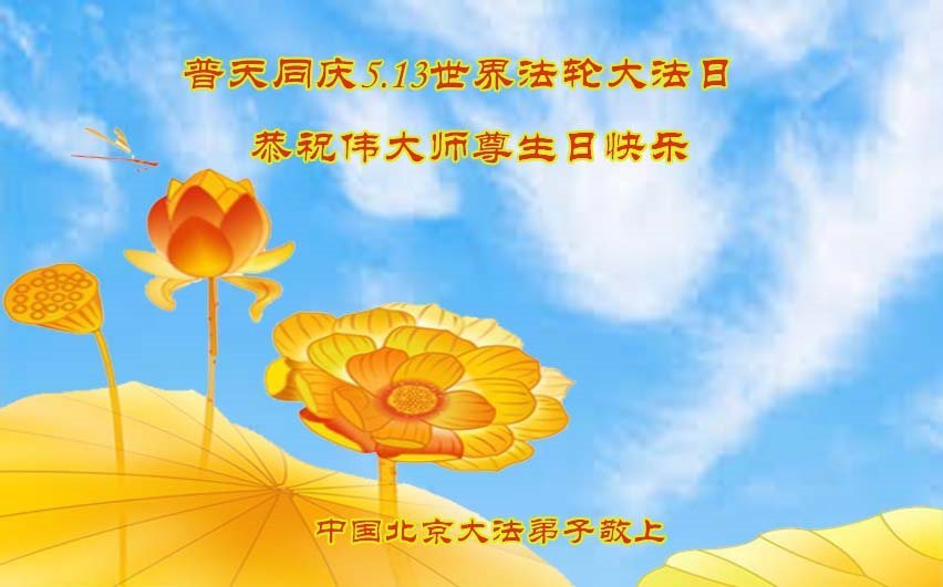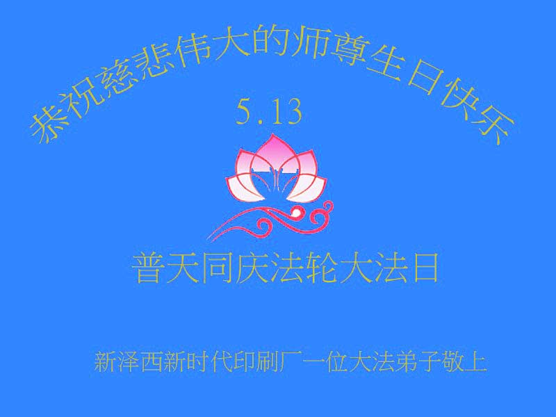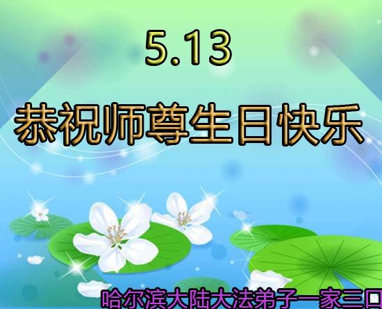 在五月十三日世界法轮大法日来临之际,衷心祝愿李老师生日快乐!法轮大法好!真善忍好!感谢大法洪传!感谢师尊救度之恩!