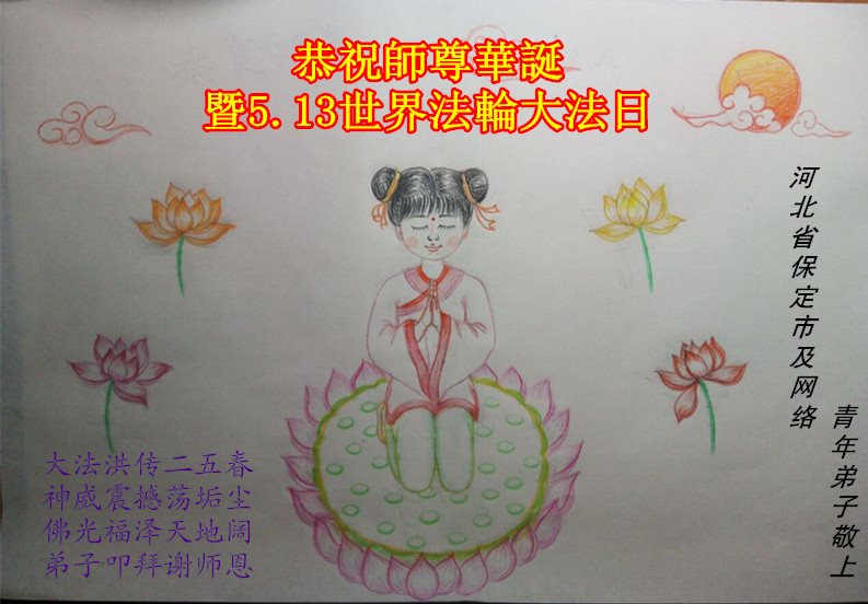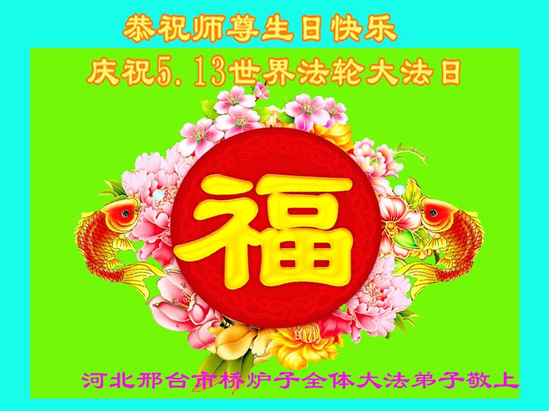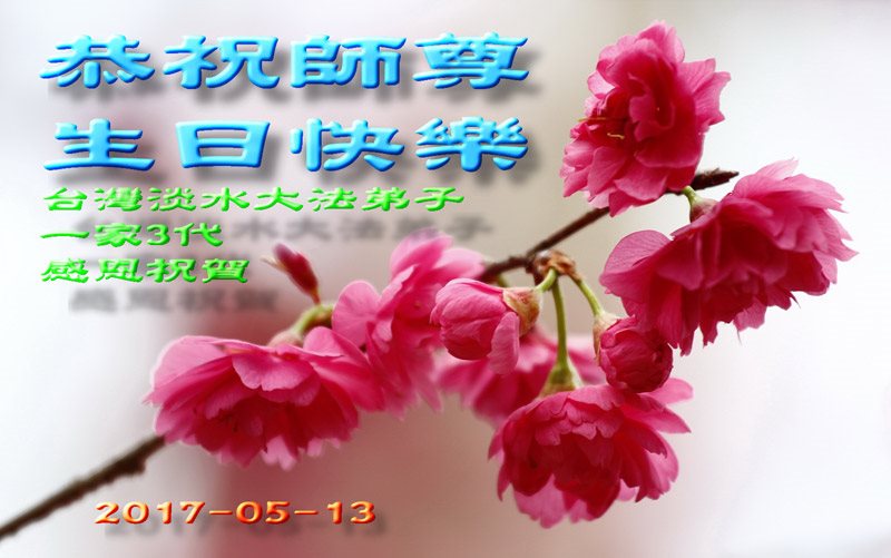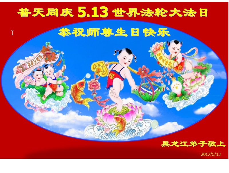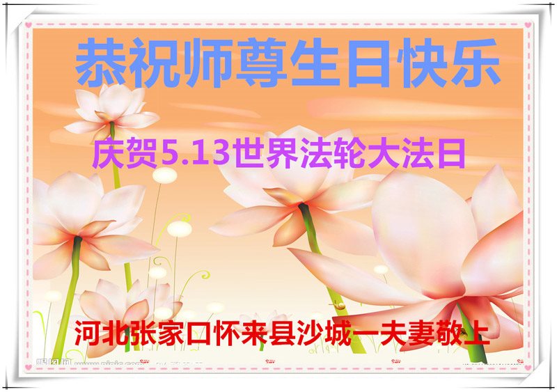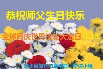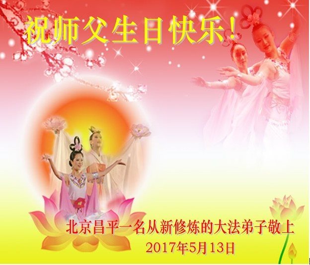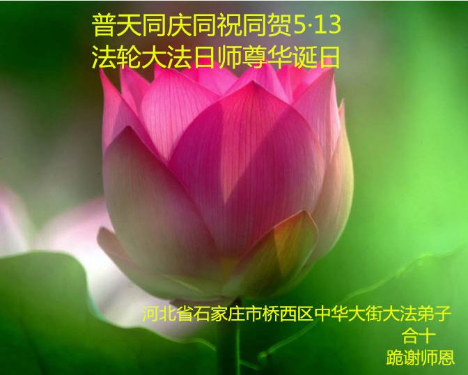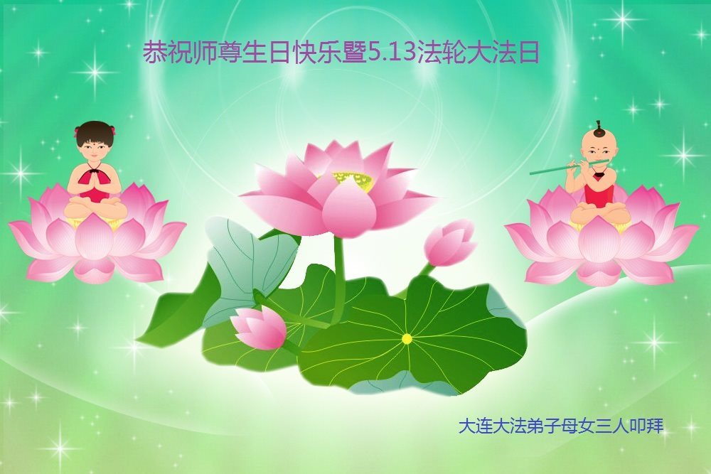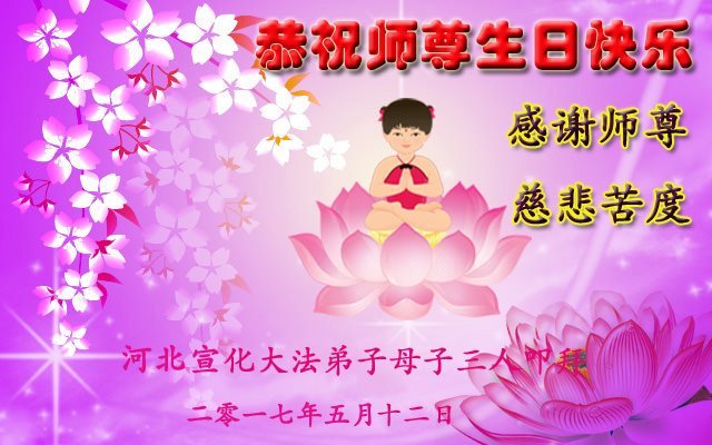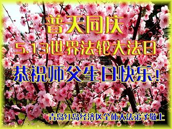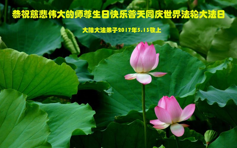 在五月十三日世界法轮大法日来临之际,衷心祝愿李老师生日快乐!法轮大法好!真善忍好!感谢大法洪传!感谢师尊救度之恩!