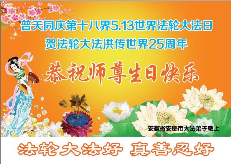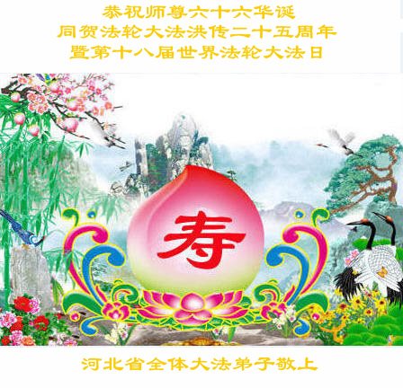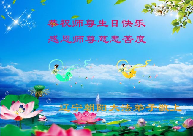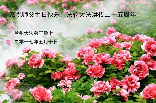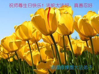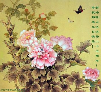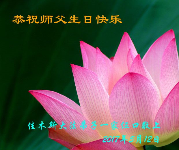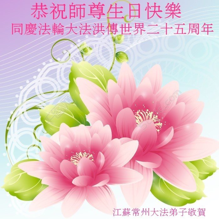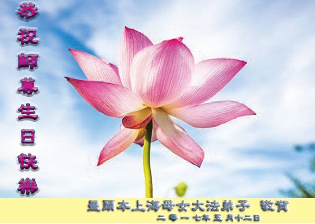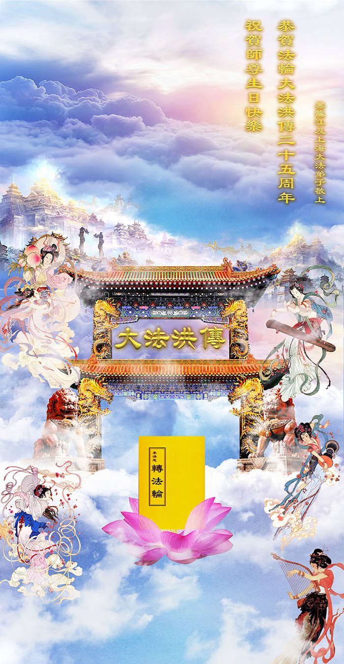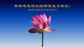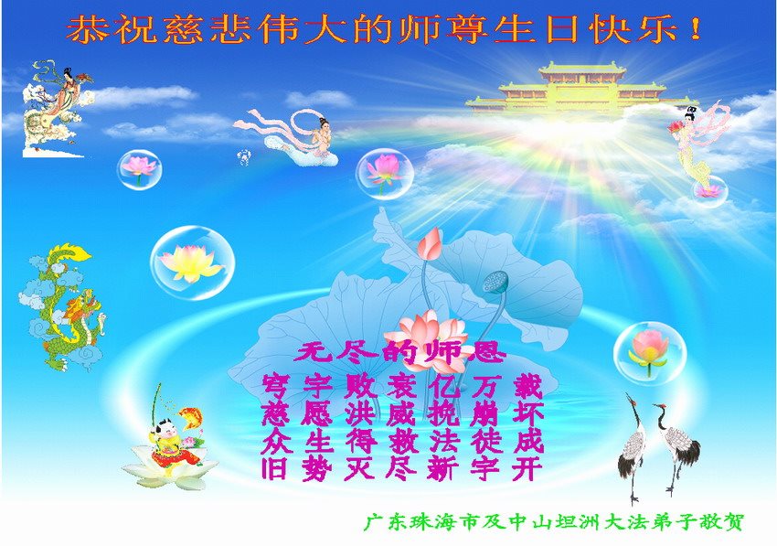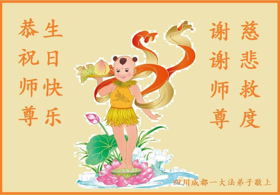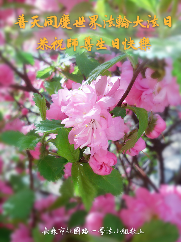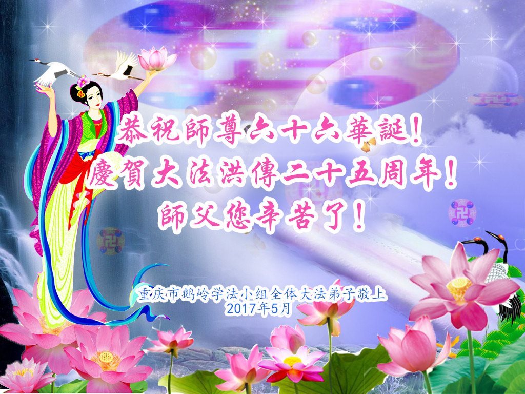 师尊您好!弟子们无法用语言无限感恩师尊的慈悲苦度!叩祝慈悲伟大的师尊生日快乐!并与世界各地各位大法弟子及明真相的世人普天同庆法轮大法洪传二十五周年暨欢庆第十八届世界法轮大法日!