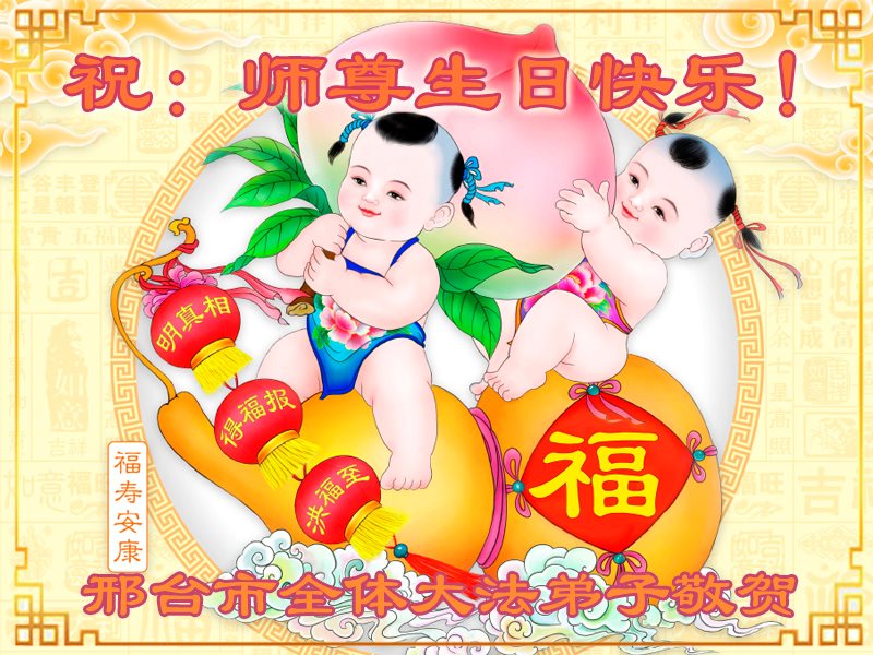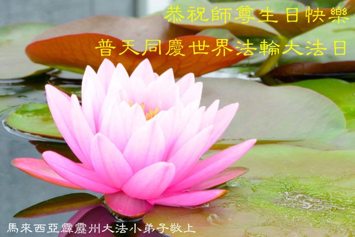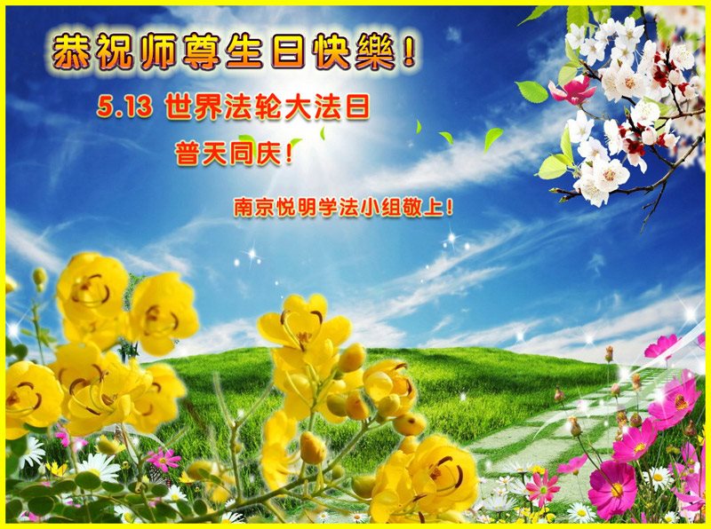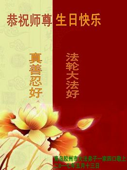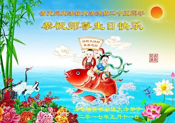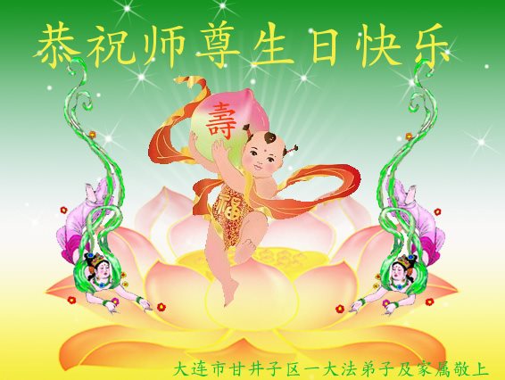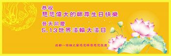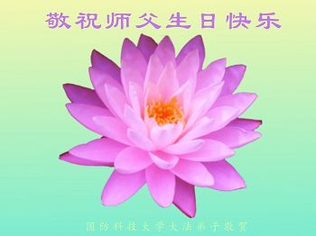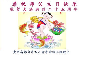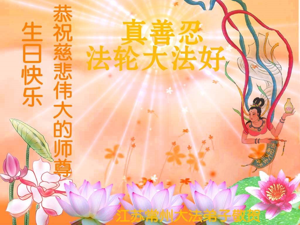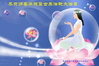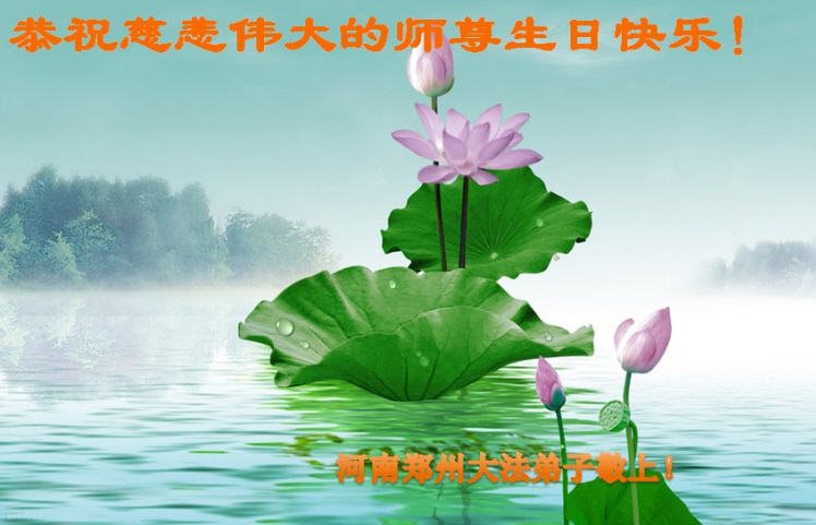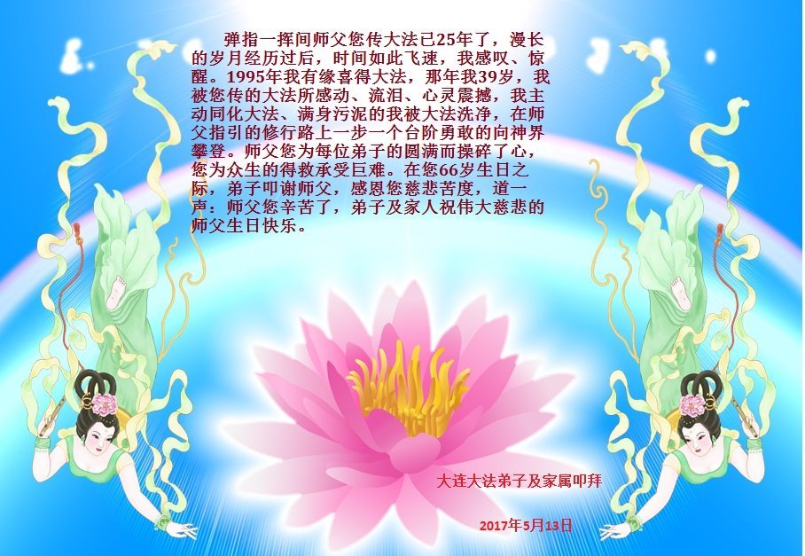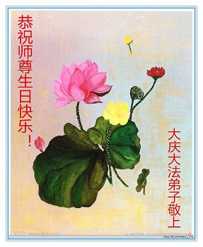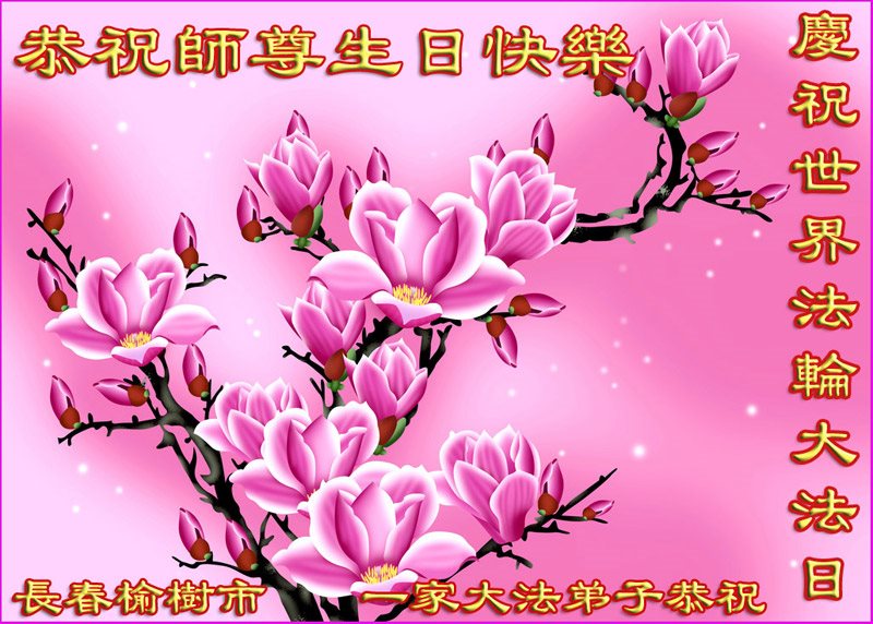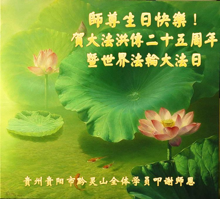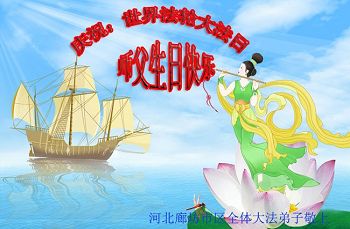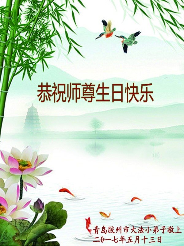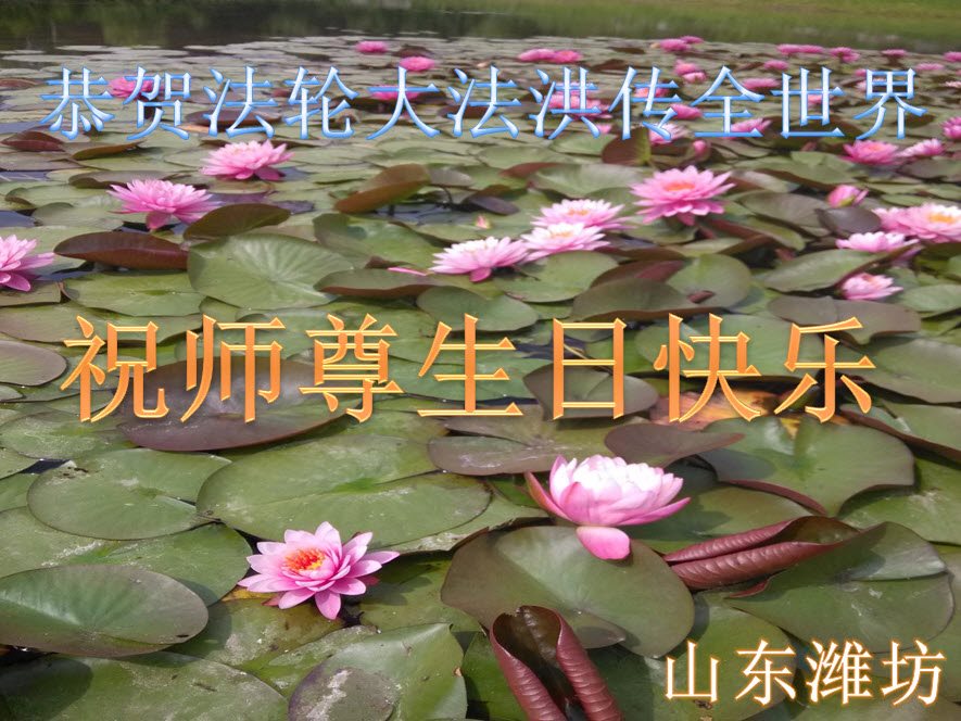 师尊您好!弟子们无法用语言无限感恩师尊的慈悲苦度!叩祝慈悲伟大的师尊生日快乐!并与世界各地各位大法弟子及明真相的世人普天同庆法轮大法洪传二十五周年暨欢庆第十八届世界法轮大法日!