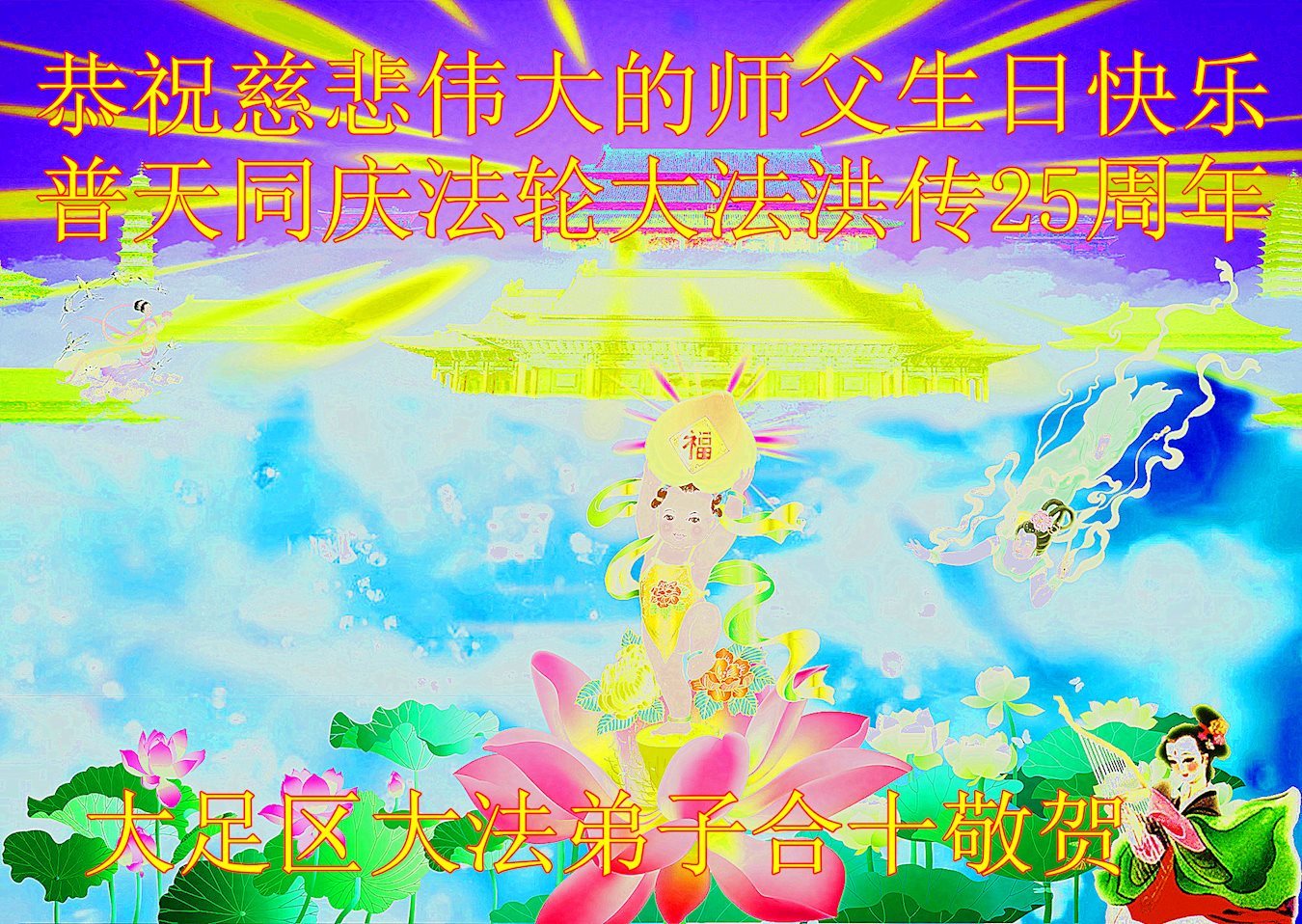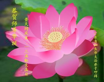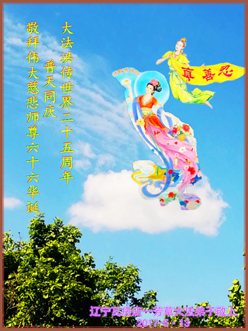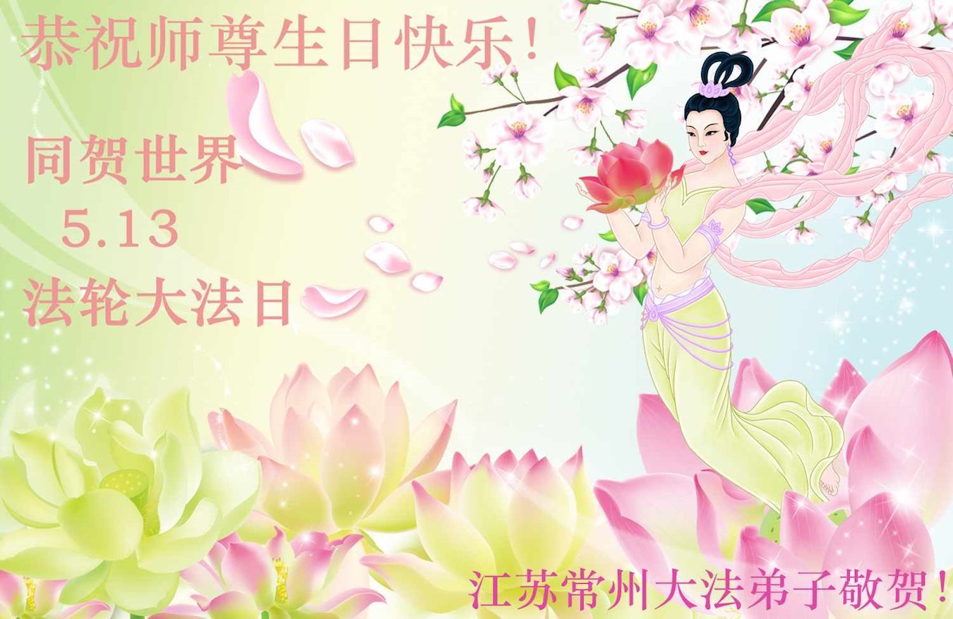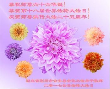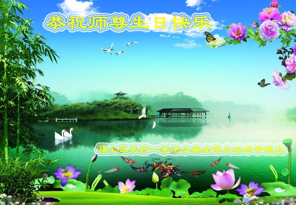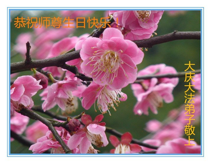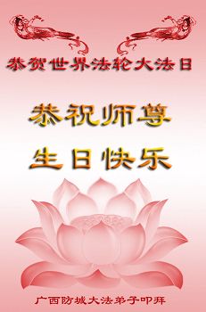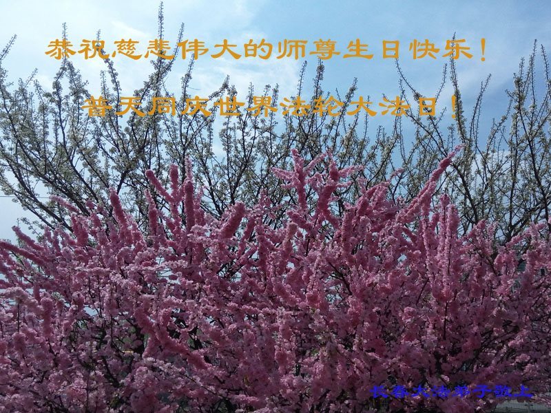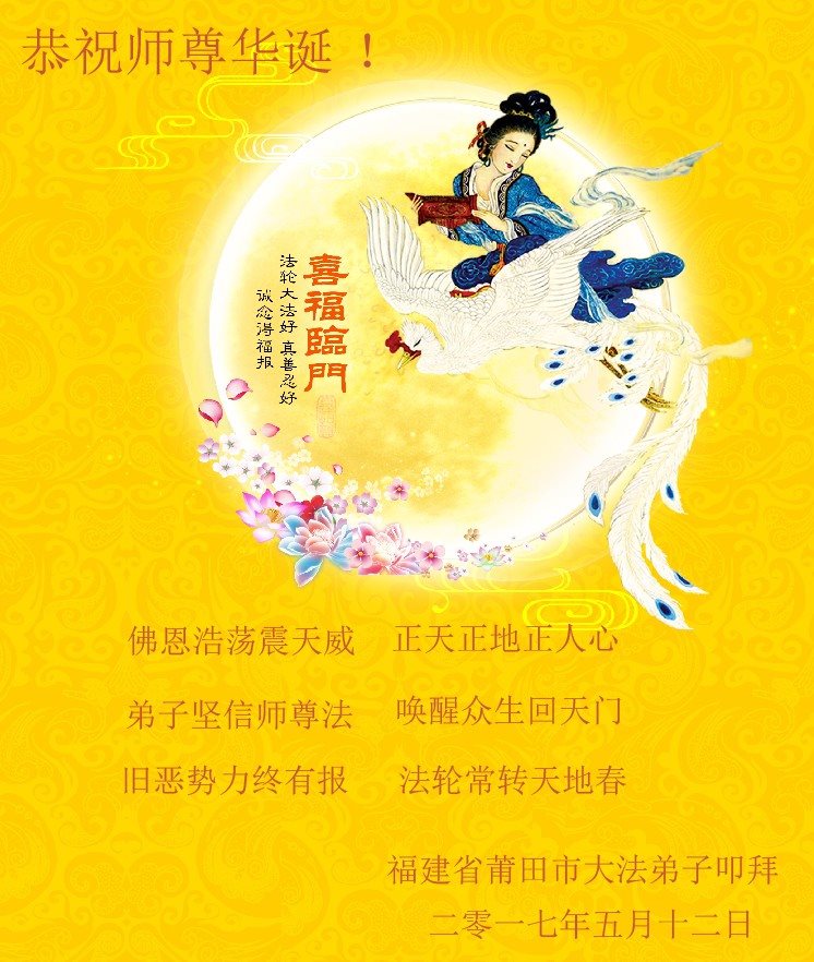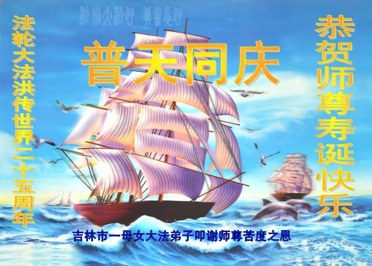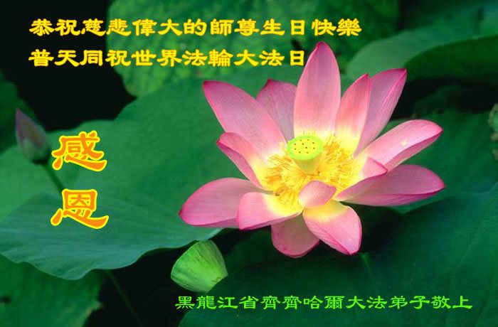 师尊您好!弟子们无法用语言无限感恩师尊的慈悲苦度!叩祝慈悲伟大的师尊生日快乐!并与世界各地各位大法弟子及明真相的世人普天同庆法轮大法洪传二十五周年暨欢庆第十八届世界法轮大法日!