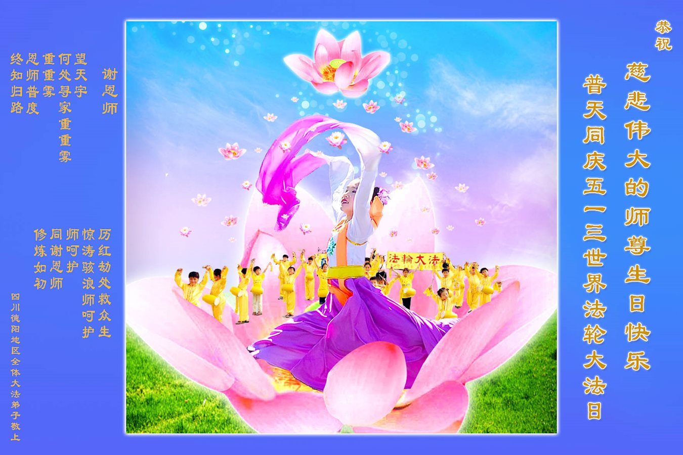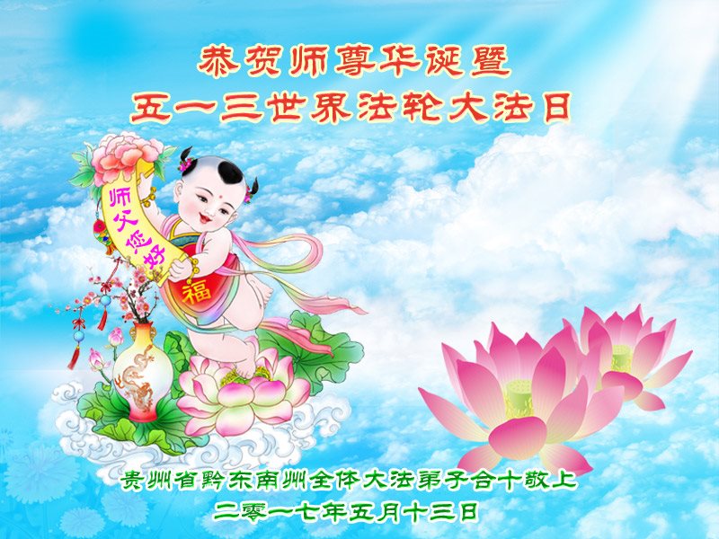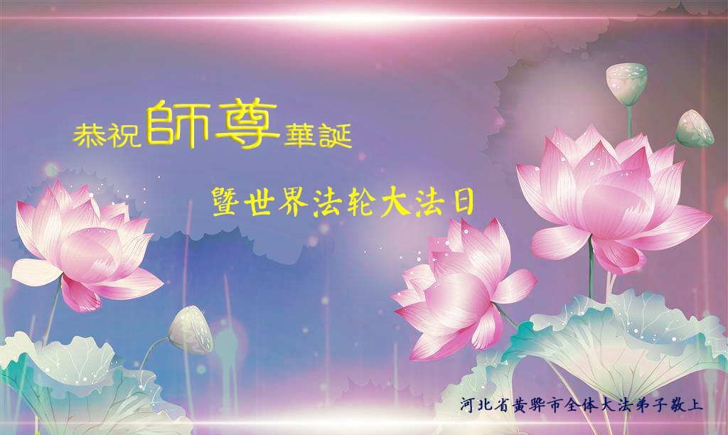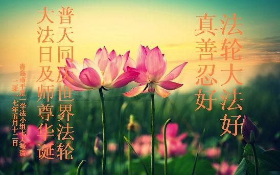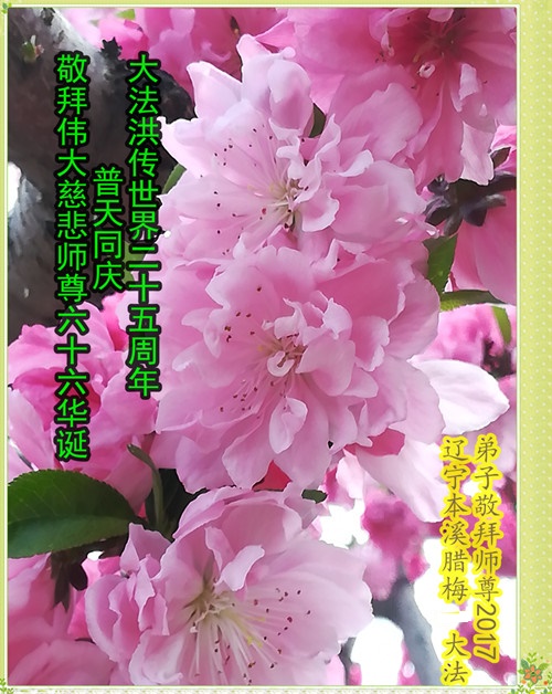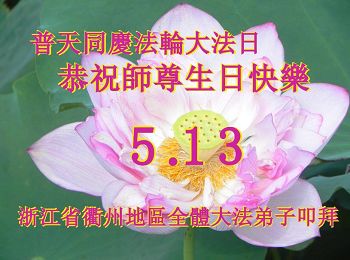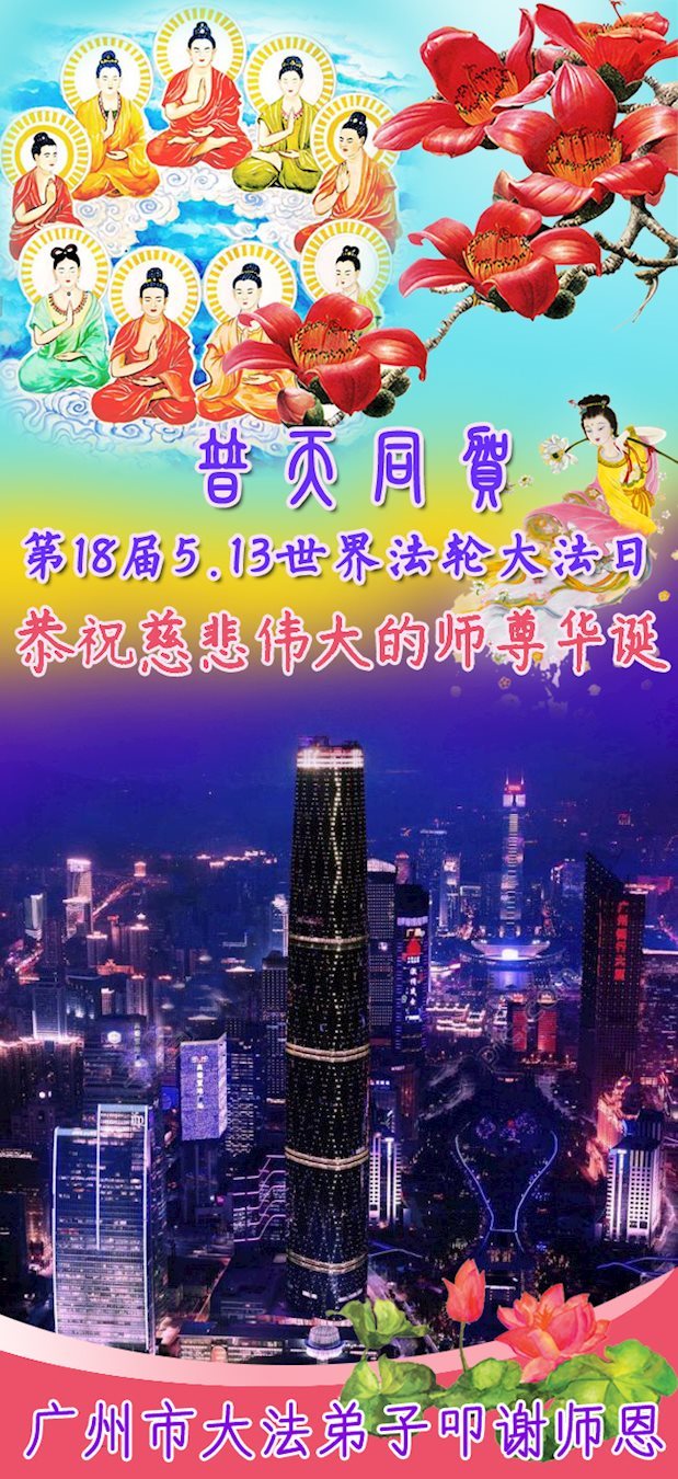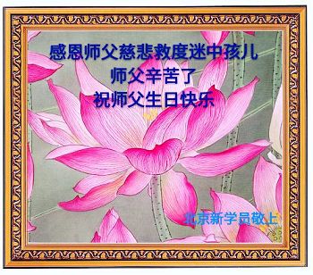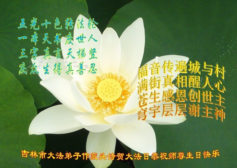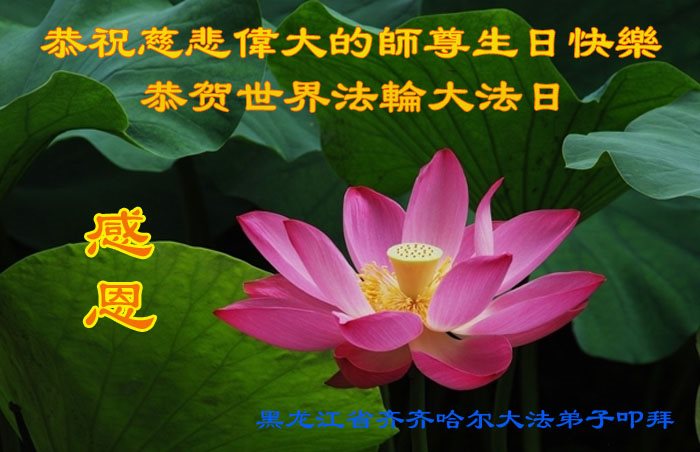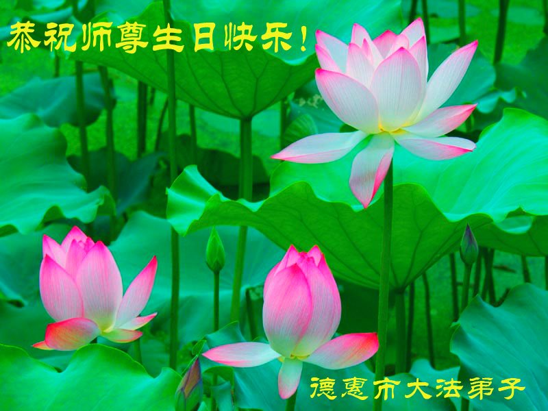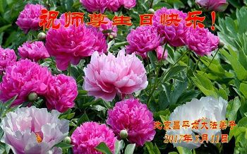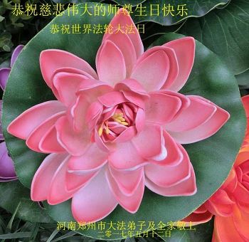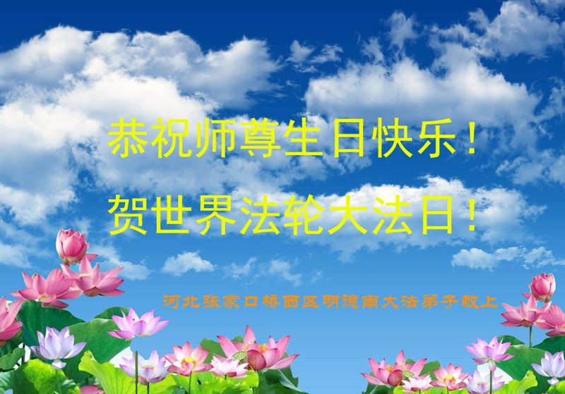 师尊您好!弟子们无法用语言无限感恩师尊的慈悲苦度!叩祝慈悲伟大的师尊生日快乐!并与世界各地各位大法弟子及明真相的世人普天同庆法轮大法洪传二十五周年暨欢庆第十八届世界法轮大法日!