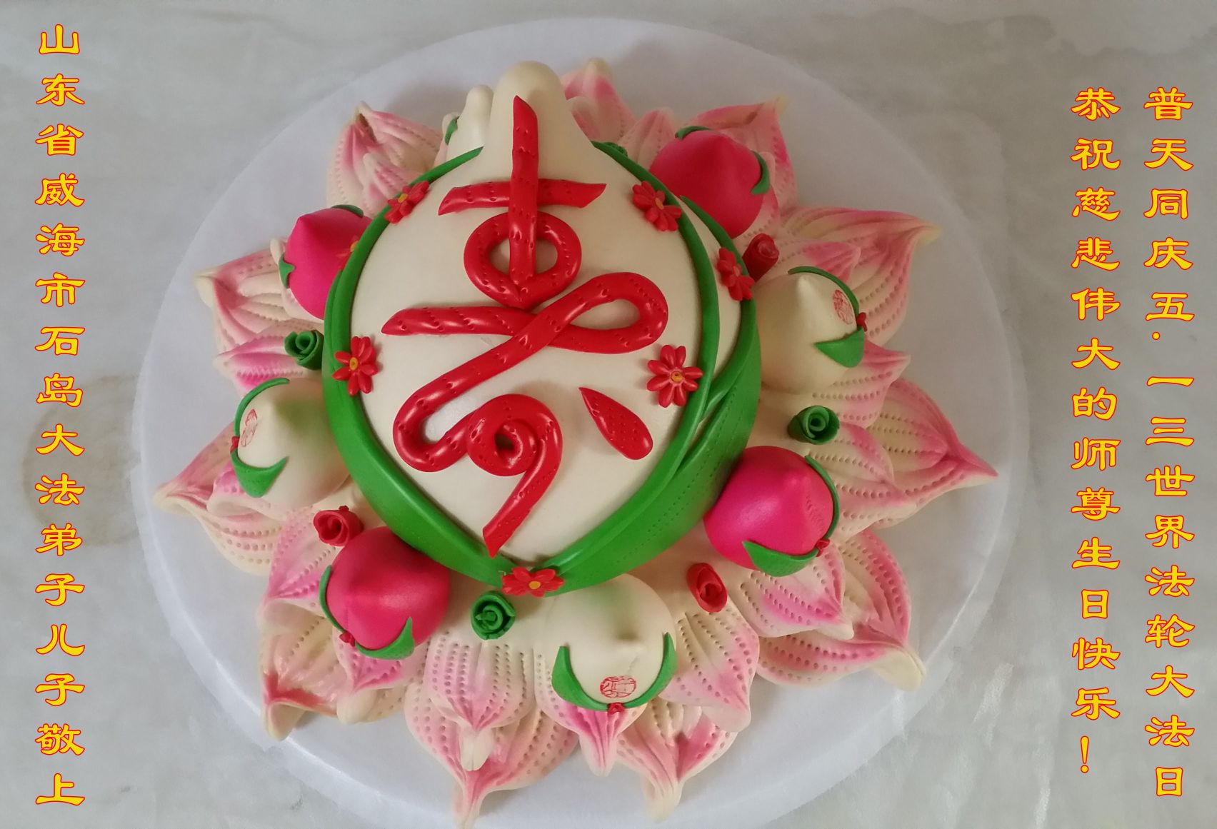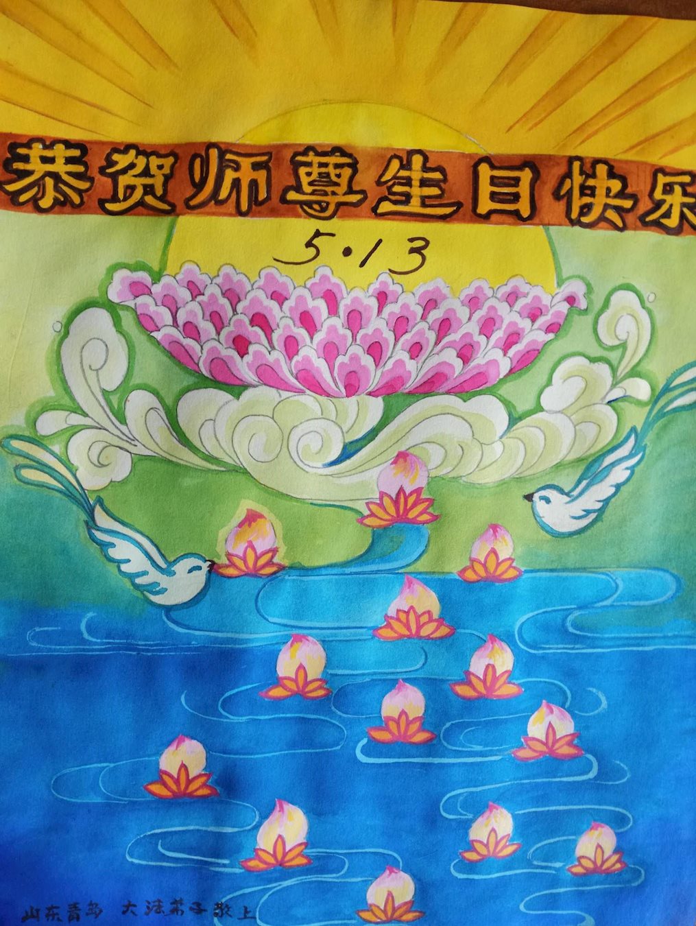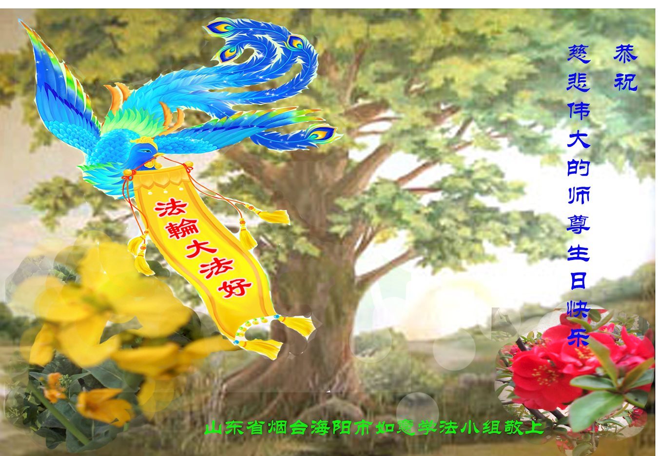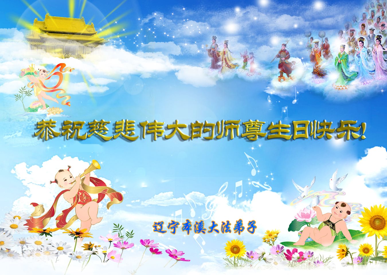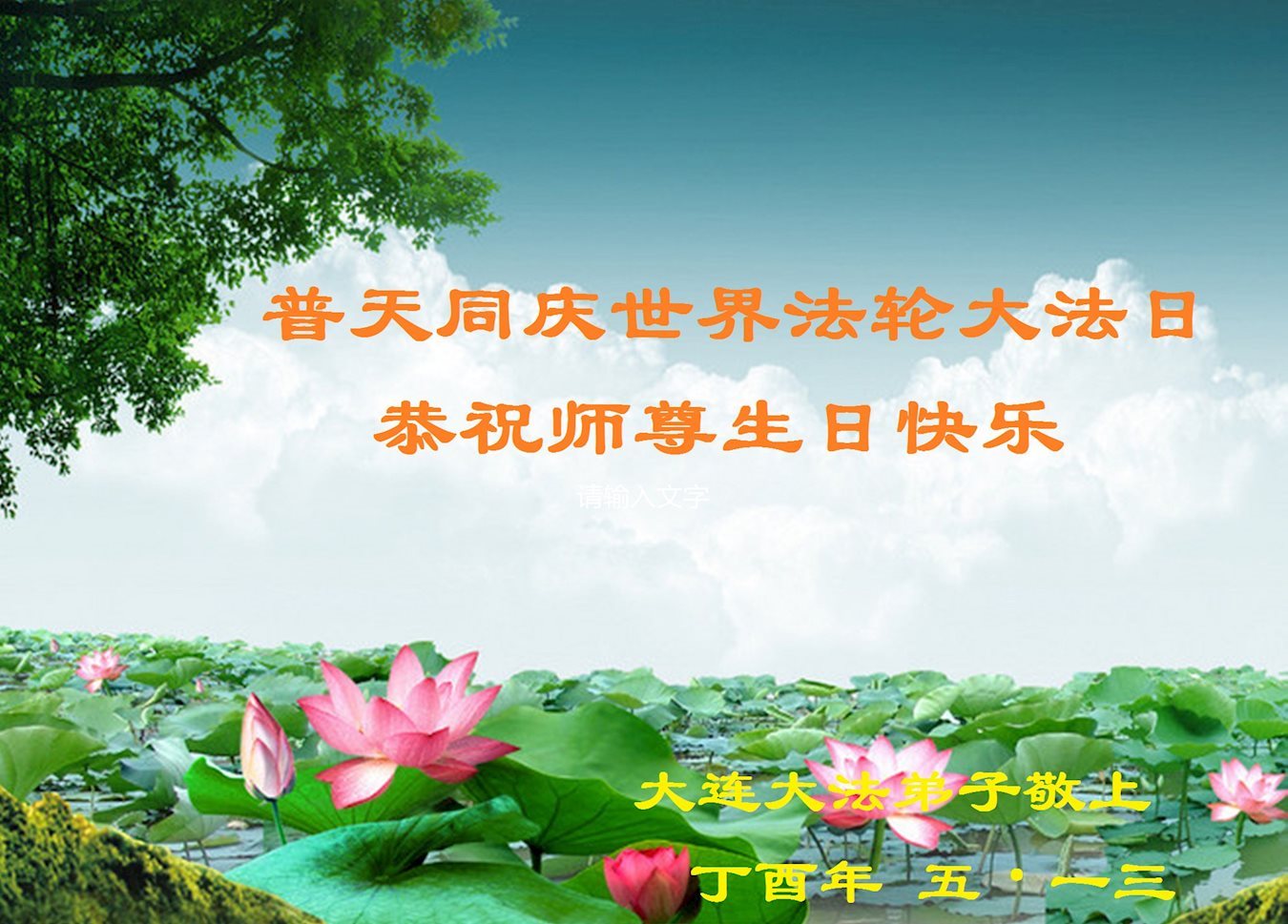 师尊您好!弟子们无法用语言无限感恩师尊的慈悲苦度!叩祝慈悲伟大的师尊生日快乐!并与世界各地各位大法弟子及明真相的世人普天同庆法轮大法洪传二十五周年暨欢庆第十八届世界法轮大法日!
