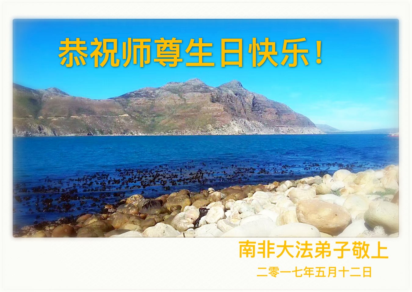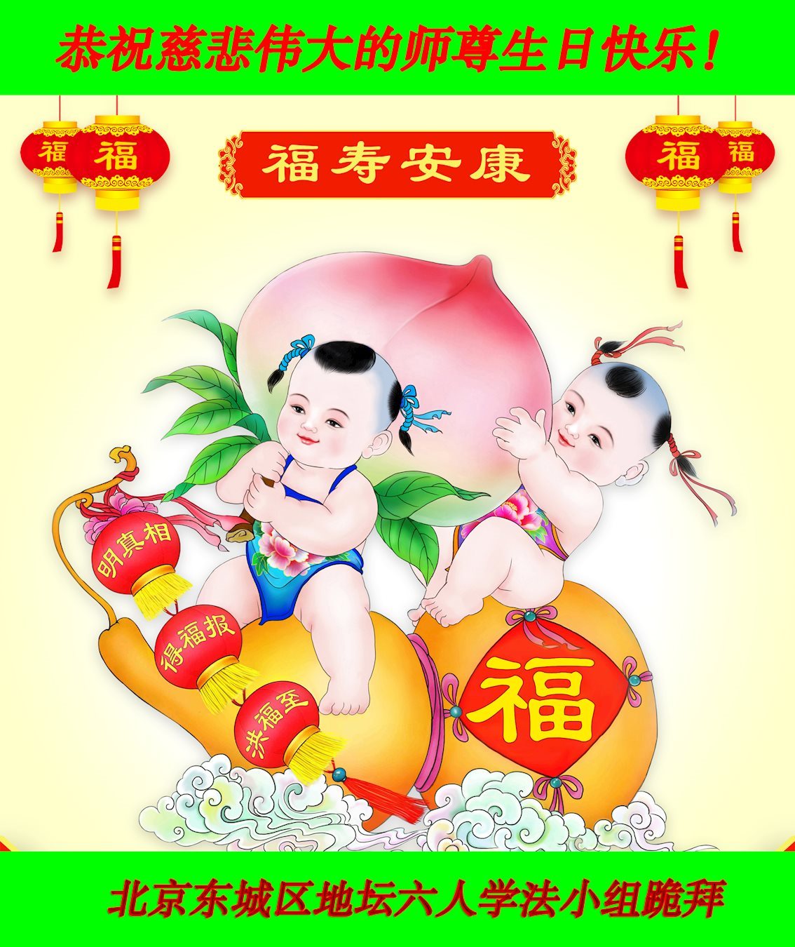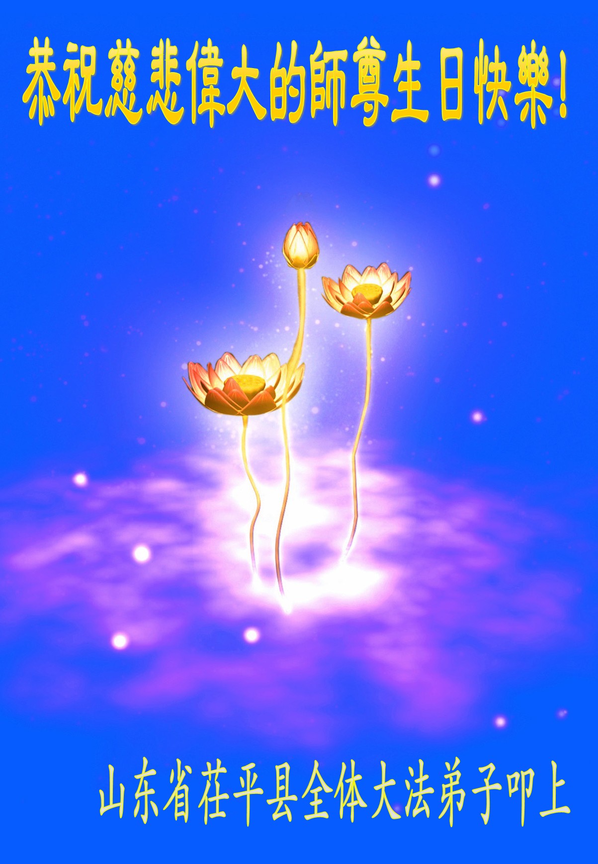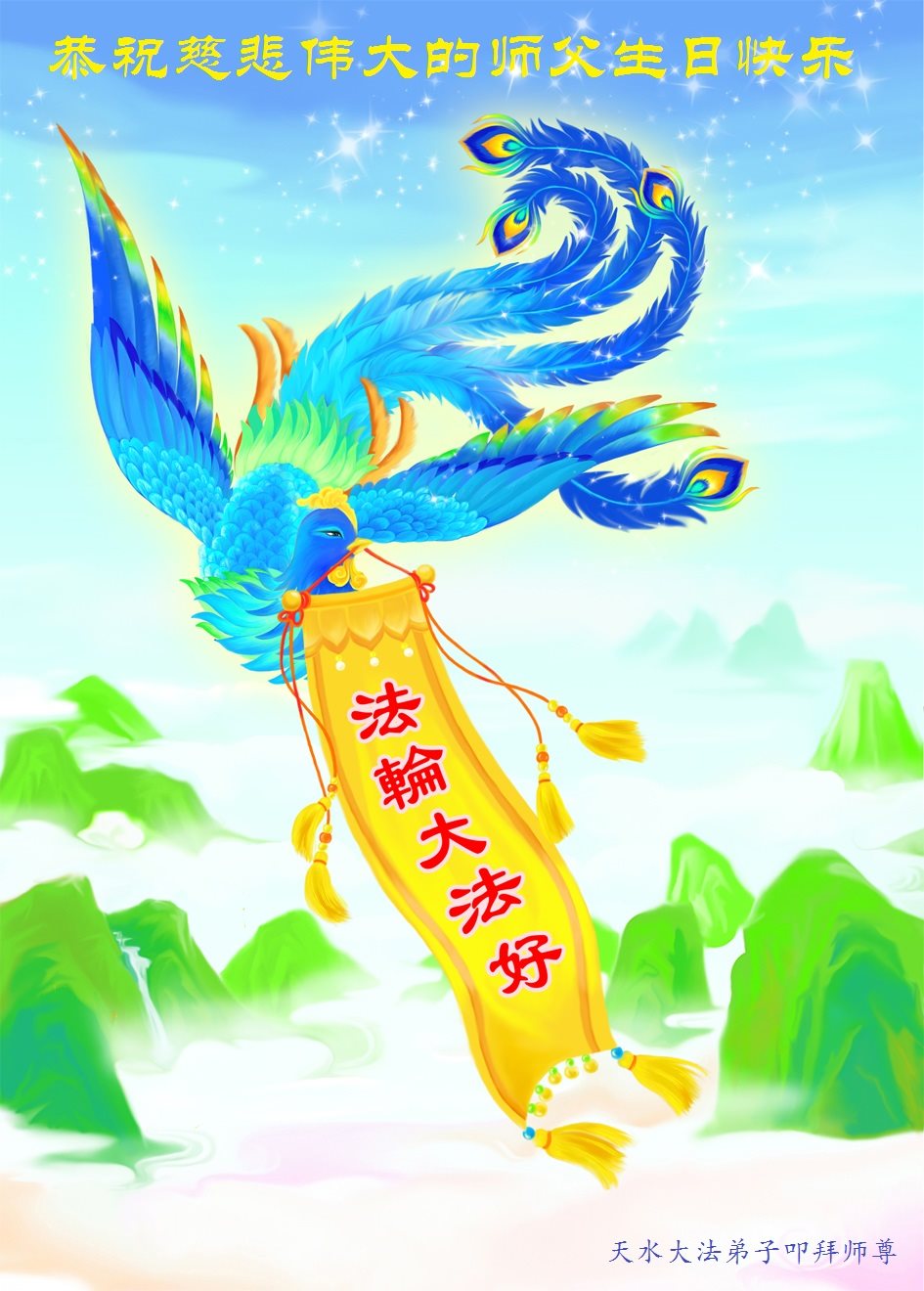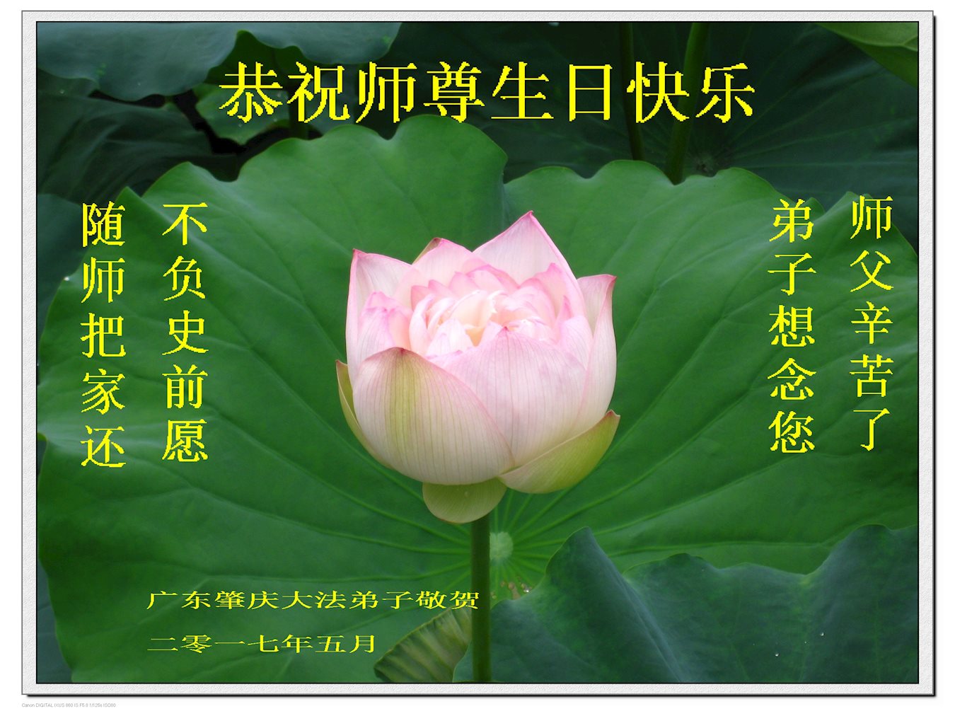 师尊您好!弟子们无法用语言无限感恩师尊的慈悲苦度!叩祝慈悲伟大的师尊生日快乐!并与世界各地各位大法弟子及明真相的世人普天同庆法轮大法洪传二十五周年暨欢庆第十八届世界法轮大法日!