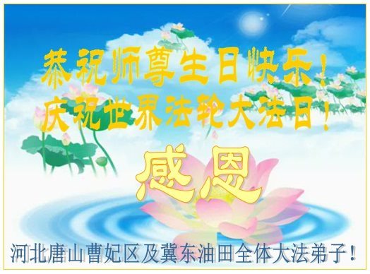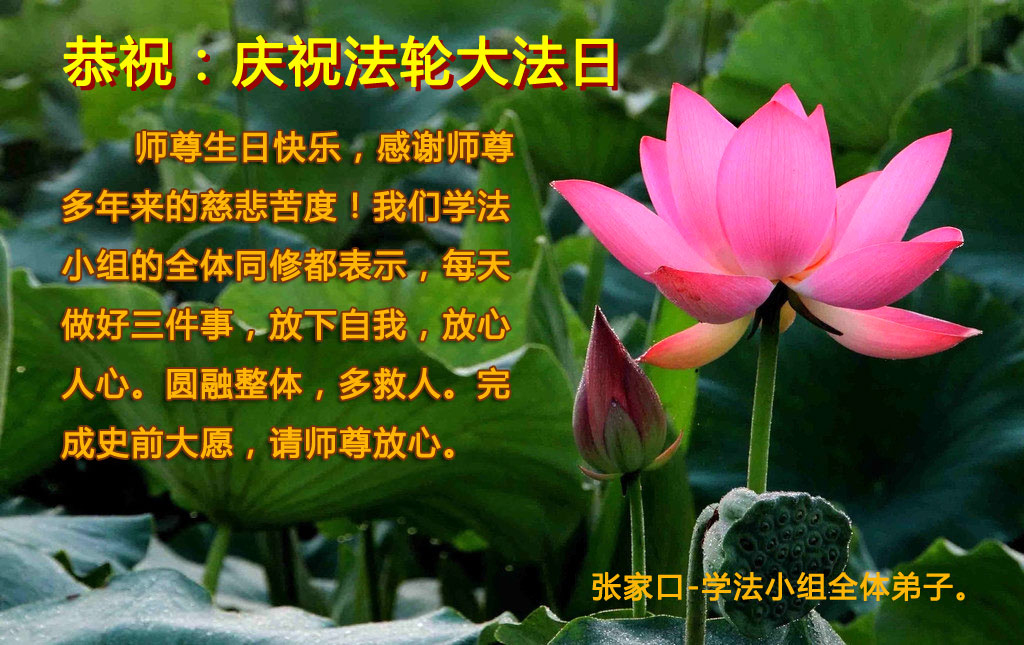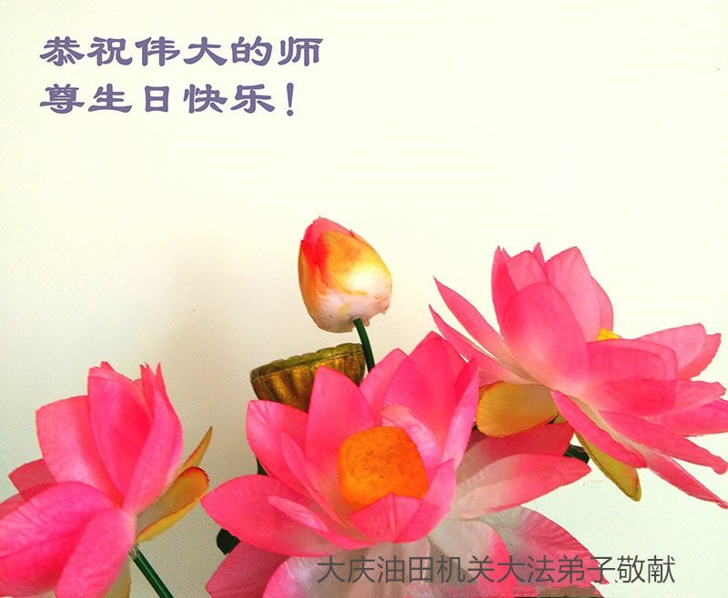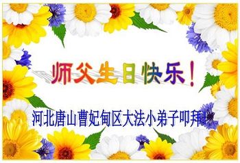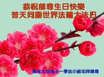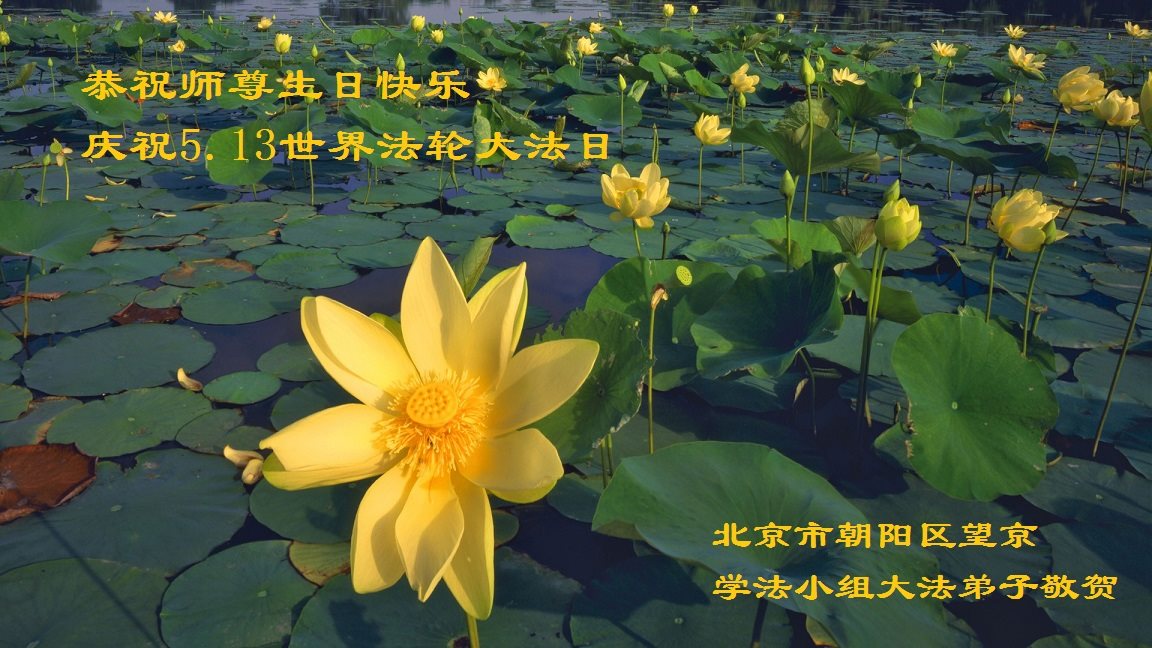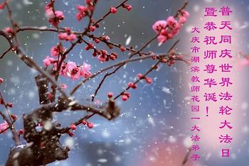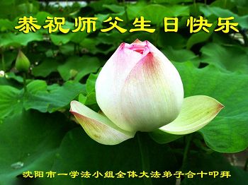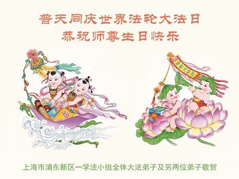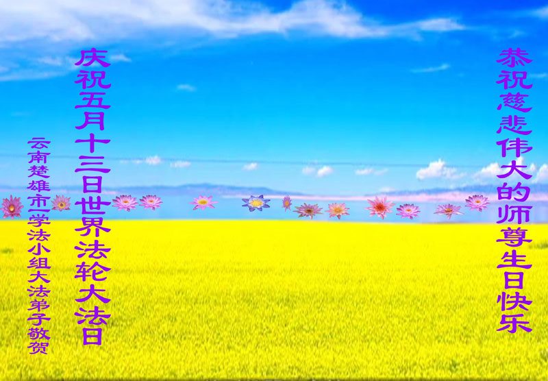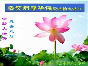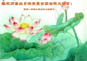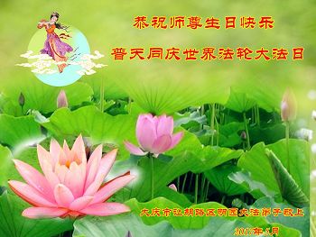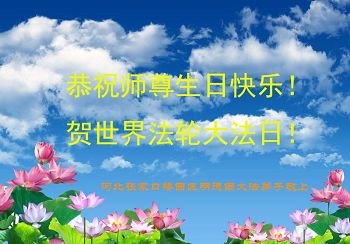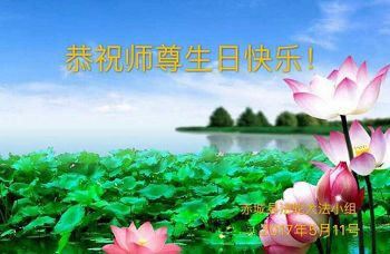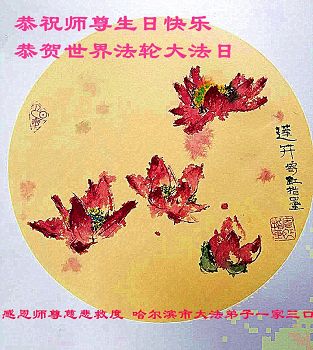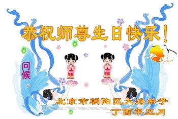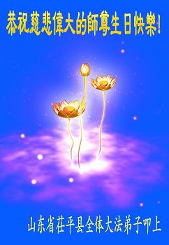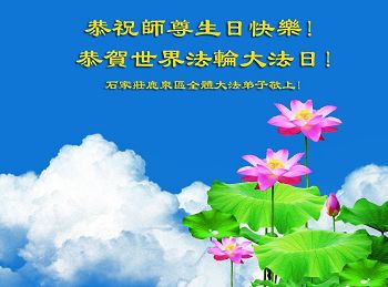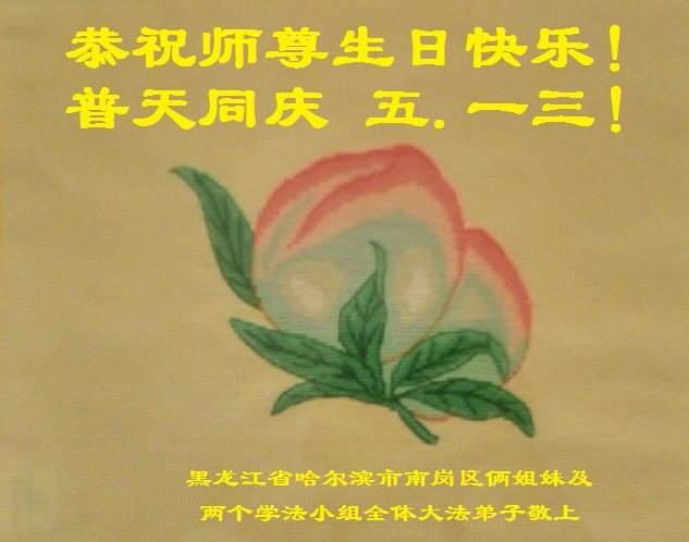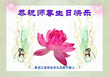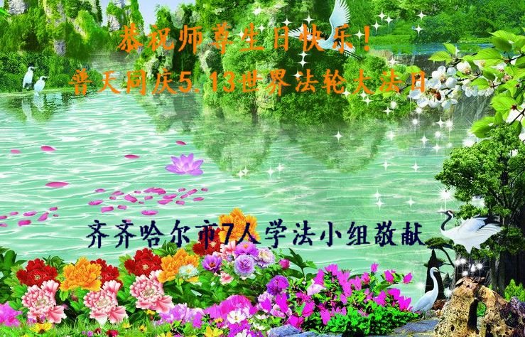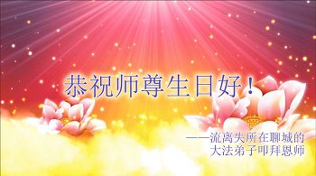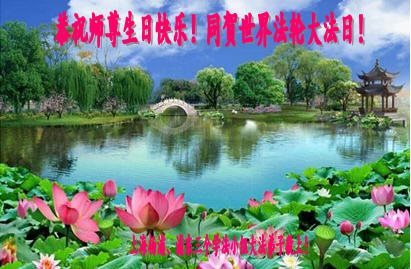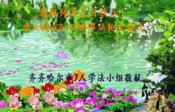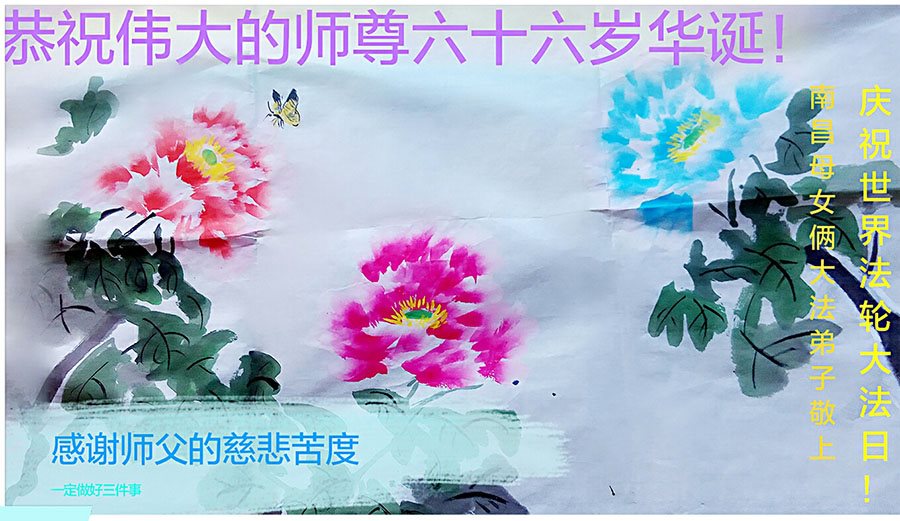 我们学法小组的三位大法弟子是被邪党绑架后,在邪恶的劳教所被迫害时相识的。是师尊的呵护使我们走过了那段日子。值此普天同庆之时,对师尊的感恩无以言表,我们用最虔诚的心恭祝伟大师尊生日快乐!同庆世界法轮大法日!等待师父回国、等待神韵回国演出。