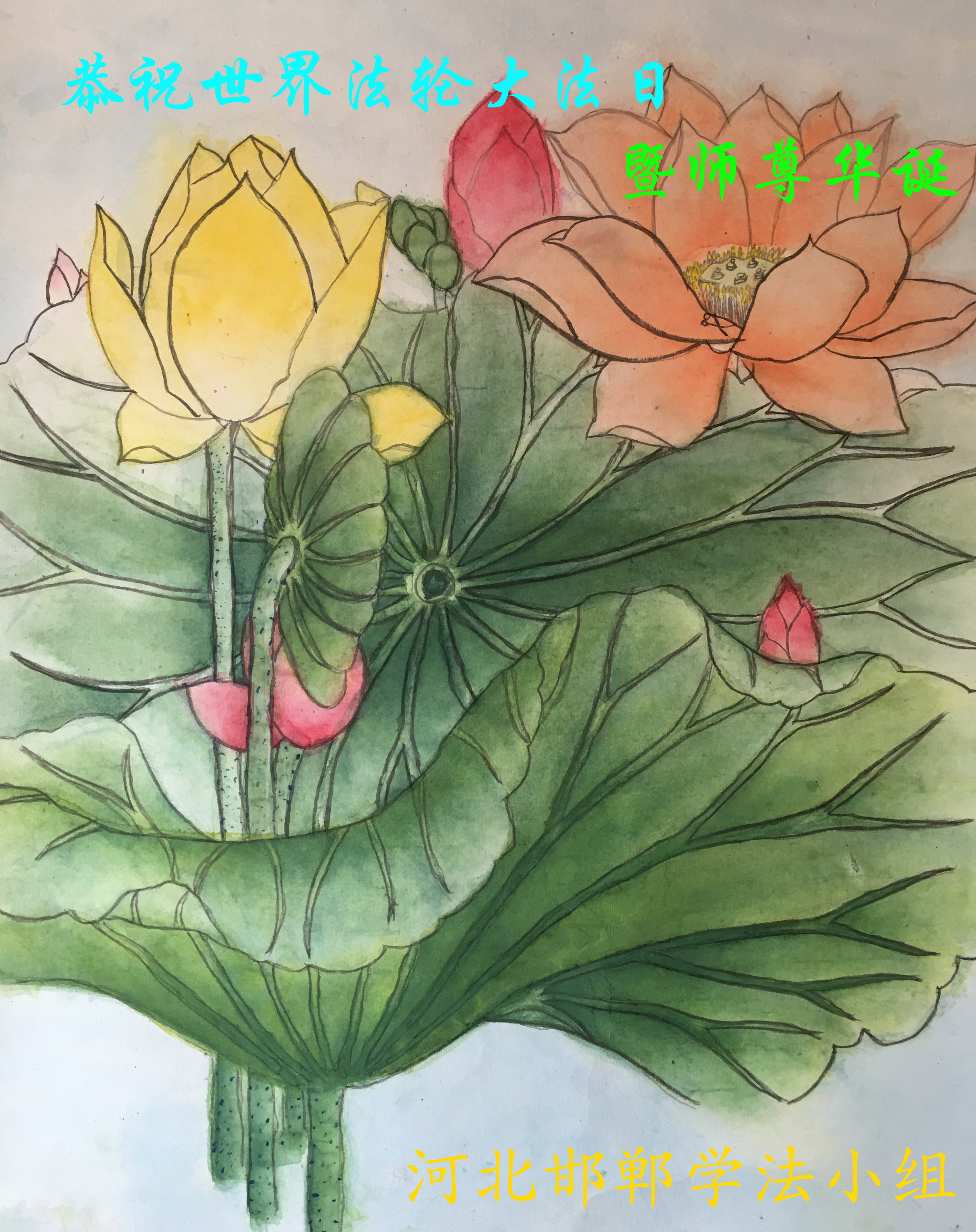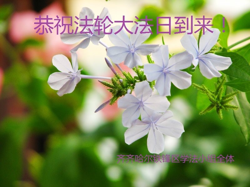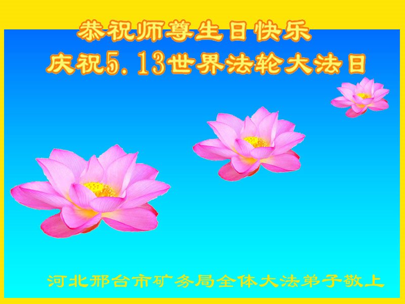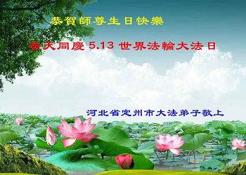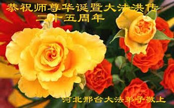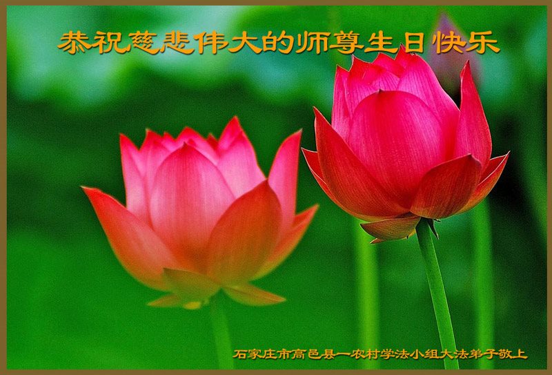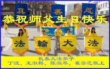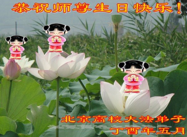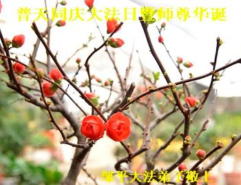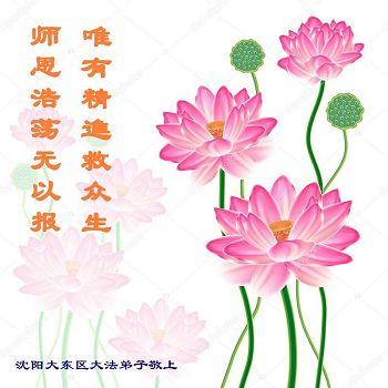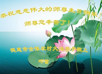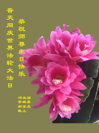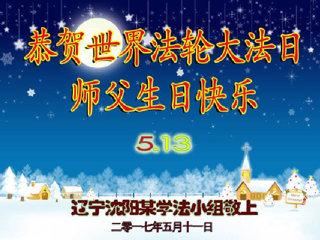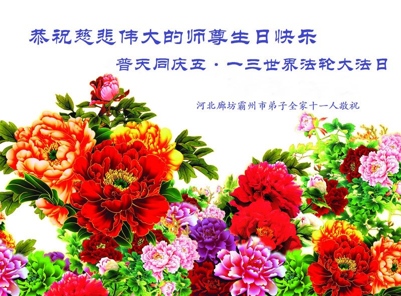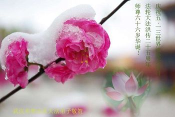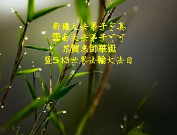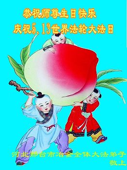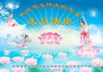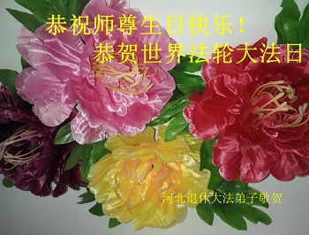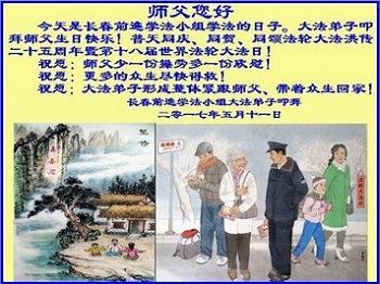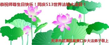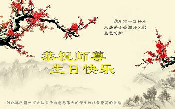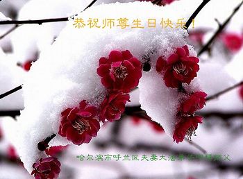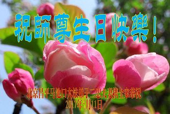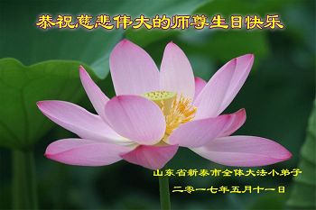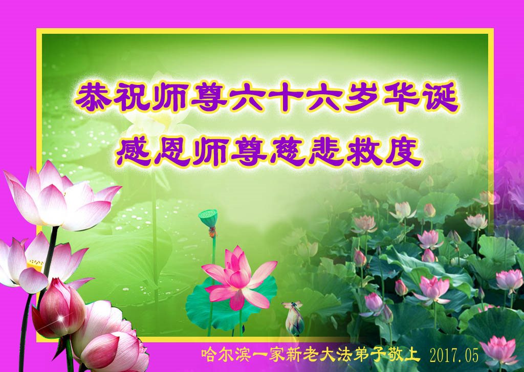 我们学法小组的三位大法弟子是被邪党绑架后,在邪恶的劳教所被迫害时相识的。是师尊的呵护使我们走过了那段日子。值此普天同庆之时,对师尊的感恩无以言表,我们用最虔诚的心恭祝伟大师尊生日快乐!同庆世界法轮大法日!等待师父回国、等待神韵回国演出。