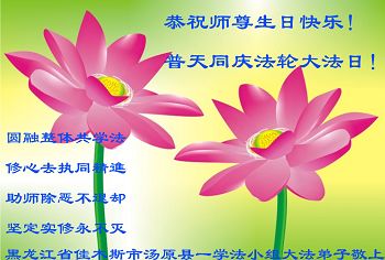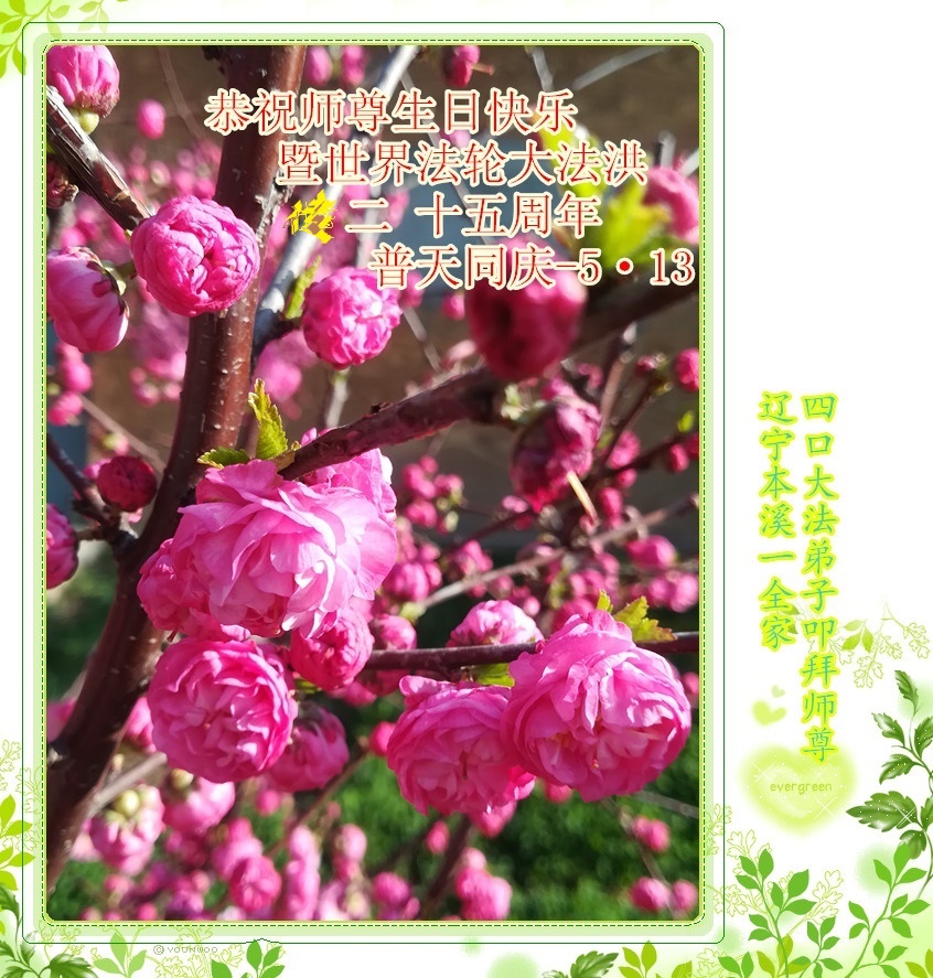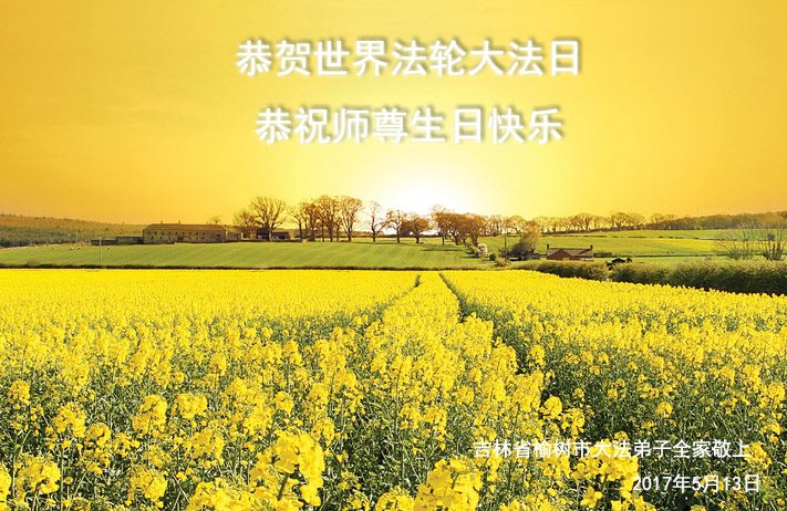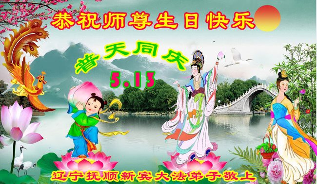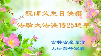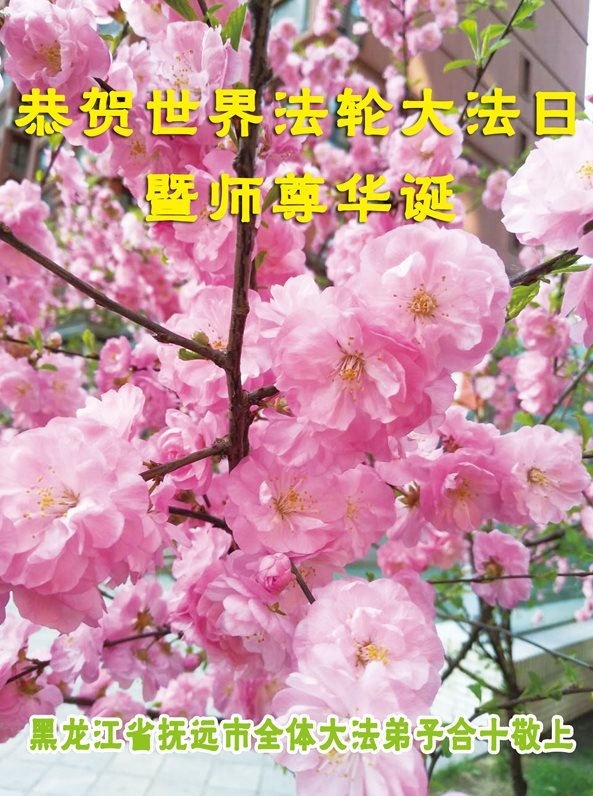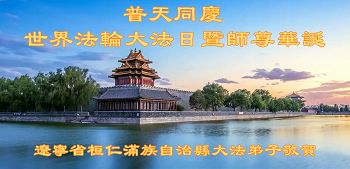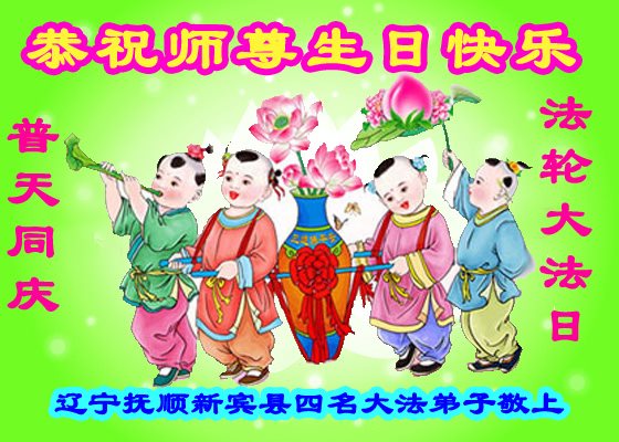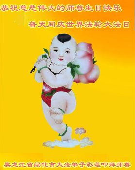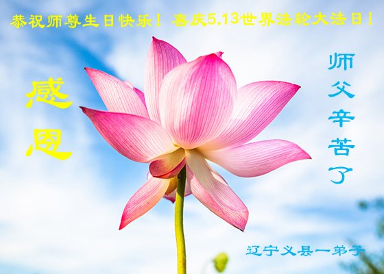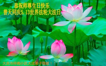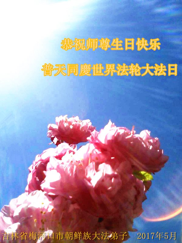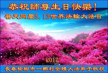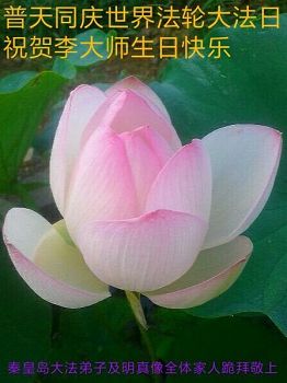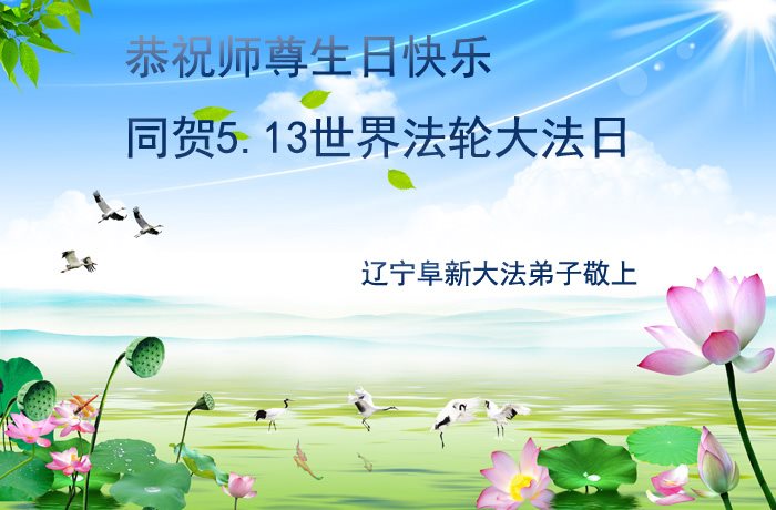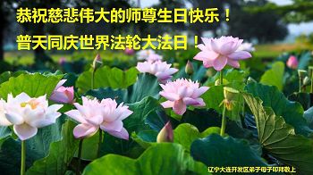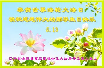 普天同庆世界法轮大法日!清原县大法弟子及明真相的家人们和邻居同修向慈悲伟大的师尊问好!弟子们感谢慈悲伟大的师尊慈悲救度!弟子们跪拜师尊,恭祝慈悲伟大的师尊生日快乐!