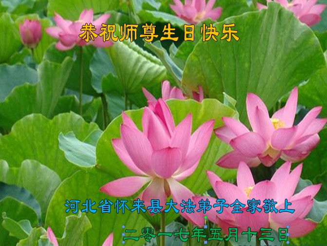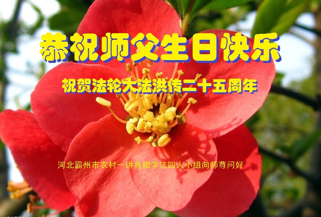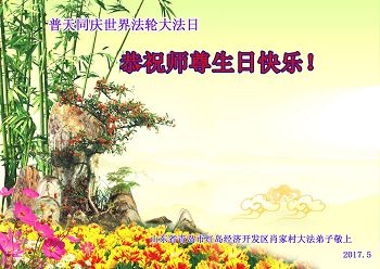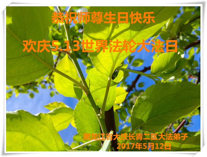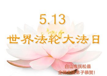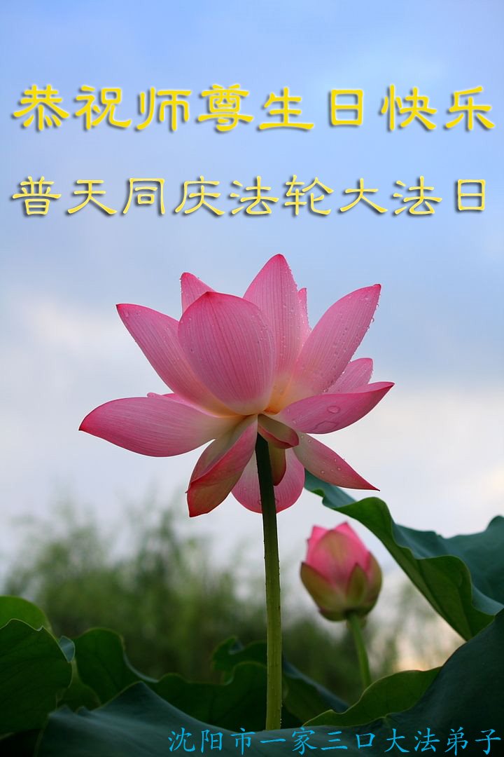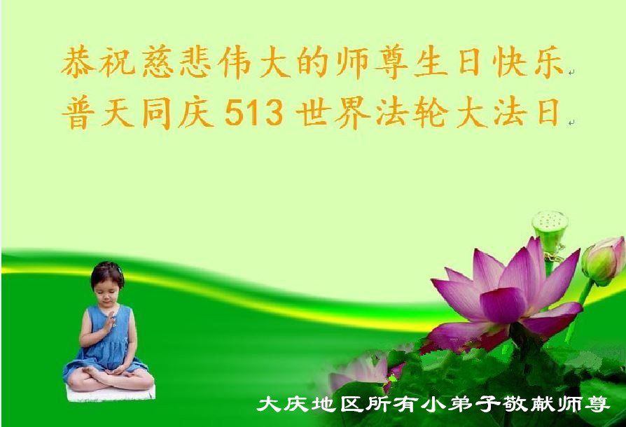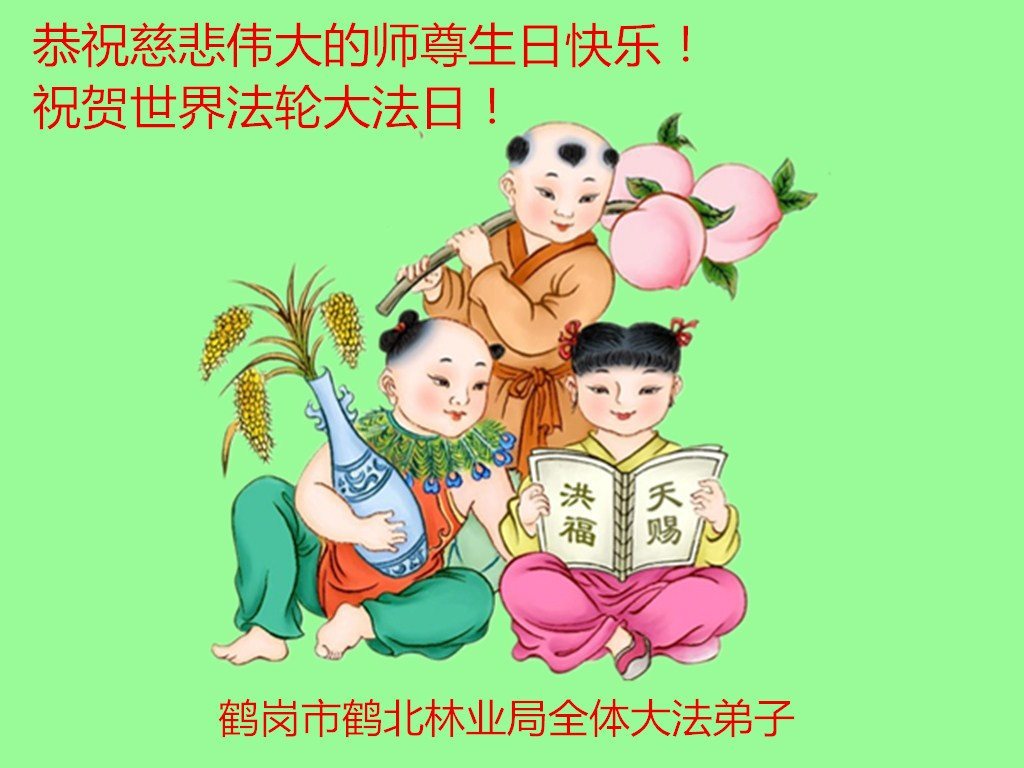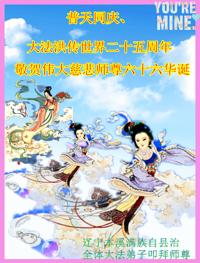 普天同庆世界法轮大法日!清原县大法弟子及明真相的家人们和邻居同修向慈悲伟大的师尊问好!弟子们感谢慈悲伟大的师尊慈悲救度!弟子们跪拜师尊,恭祝慈悲伟大的师尊生日快乐!