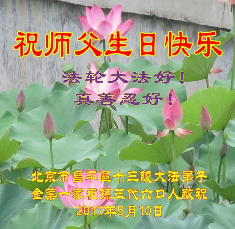 北京昌平城区大法弟子的亲属一家六口敬祝