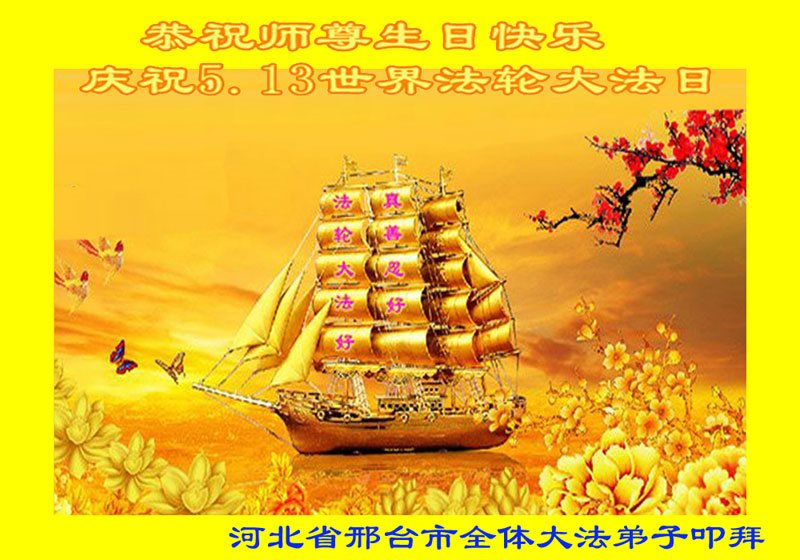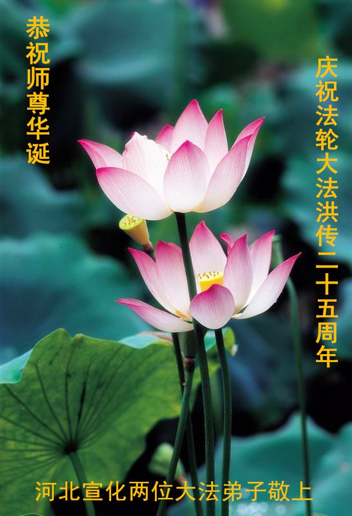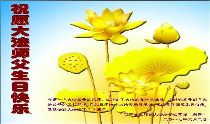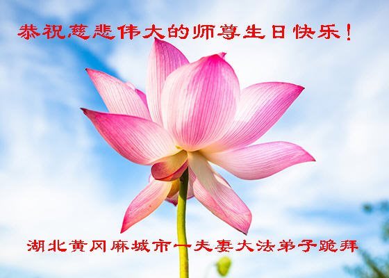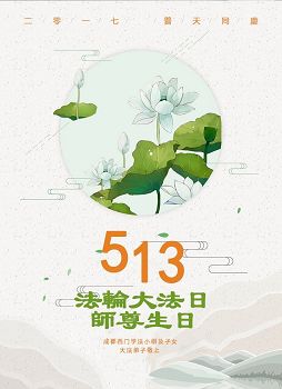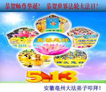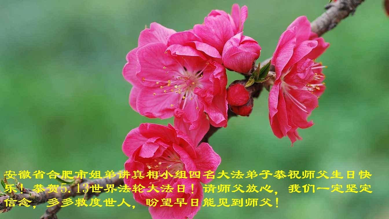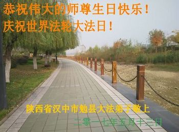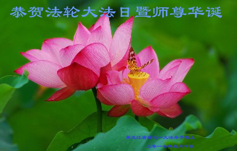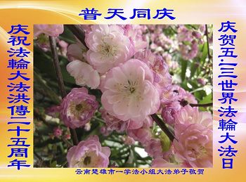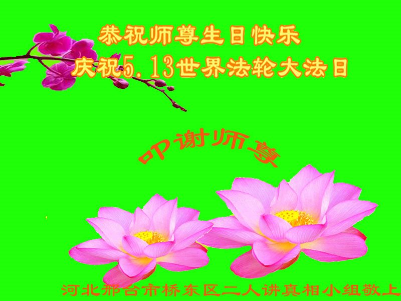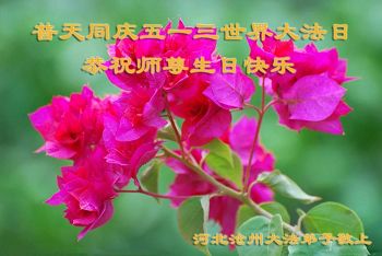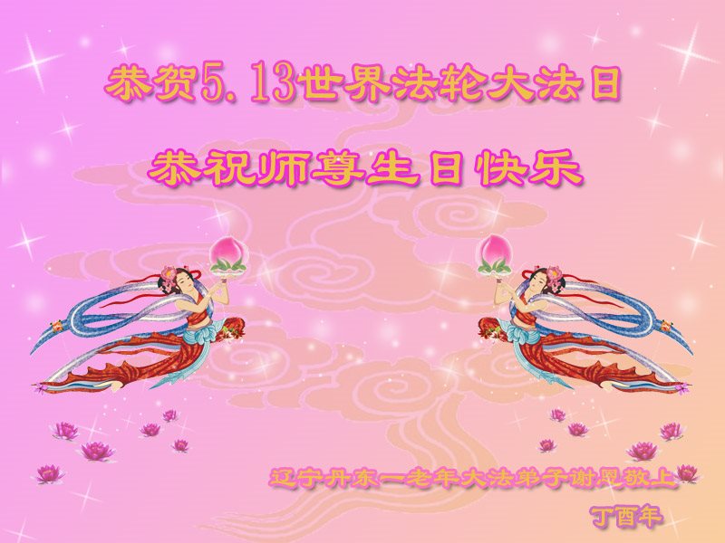 在五月十三日来临之际,我在这里祝贺法轮大法洪传二十五周年,同时祝李老师生日快乐!这二十五年来,万兴能有法轮大法的出现,是真善忍改变了这个世界,让人们真正认识到了什么才是宇宙的真理。然而在中共统治下的中国,却违背人伦,对信仰真善忍的好人无理打压,肆意抓捕、迫害,让这些好人蒙冤,我真心希望天灭中共之日早些到来,早日将这些迫害法轮大法好人的罪犯绳之以法,让他们得到应有的惩罚。