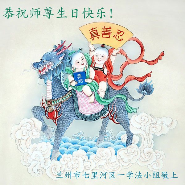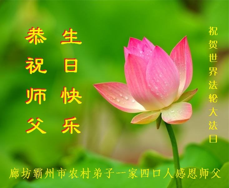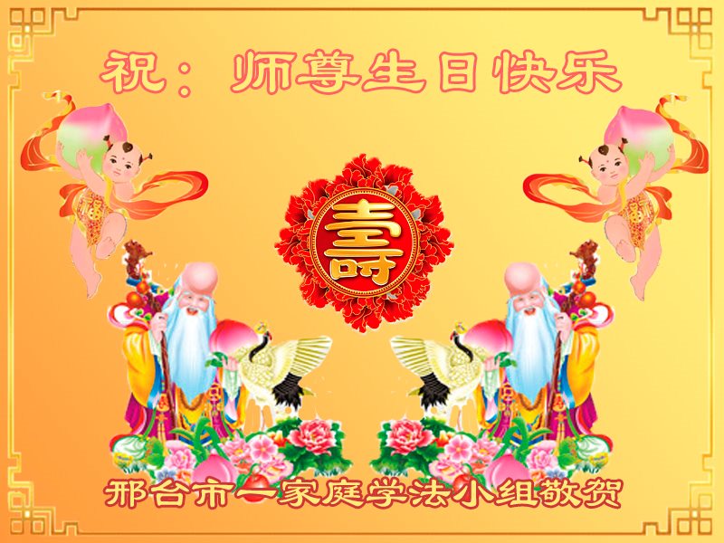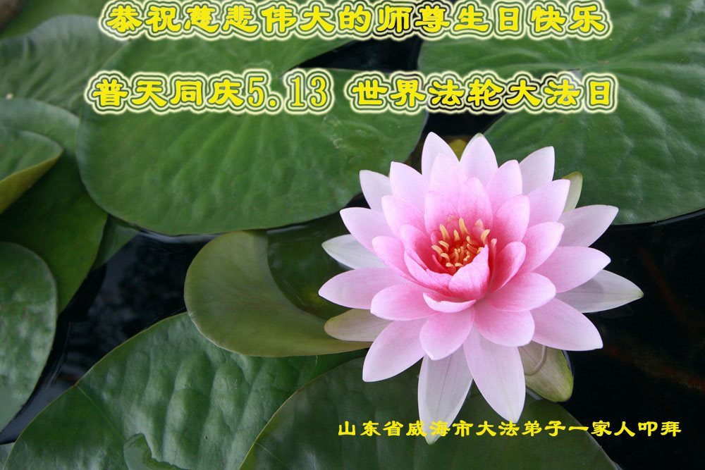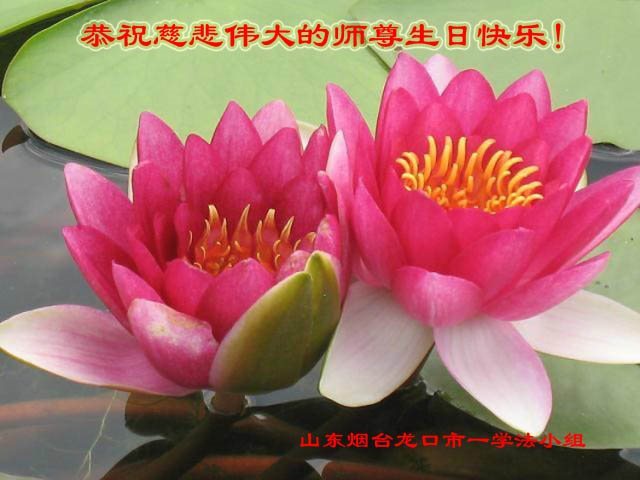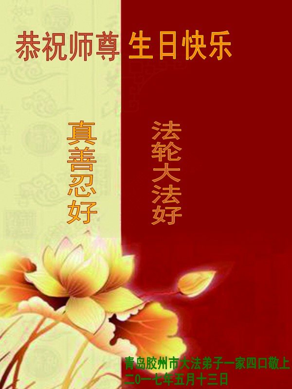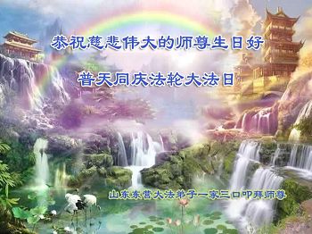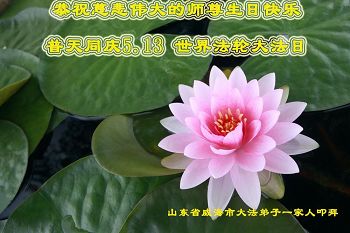 山东烟台龙口一家七人大法弟子和明白真相的家人,恭祝慈悲伟大的师尊生日快乐!普天同庆法轮大法日!