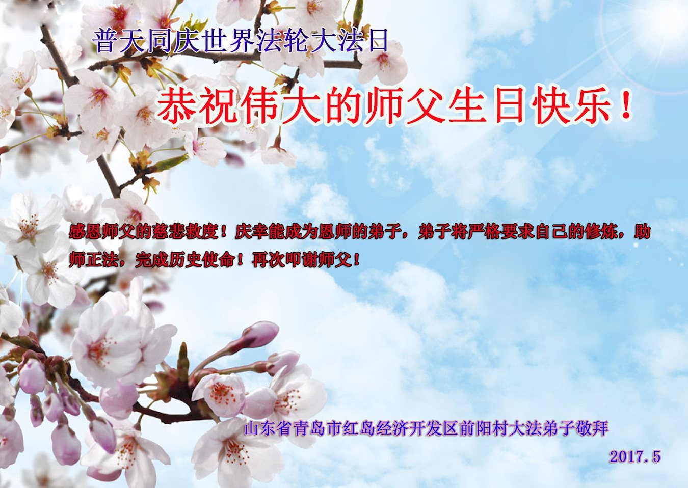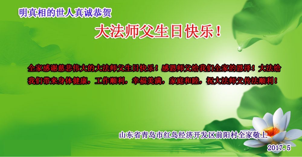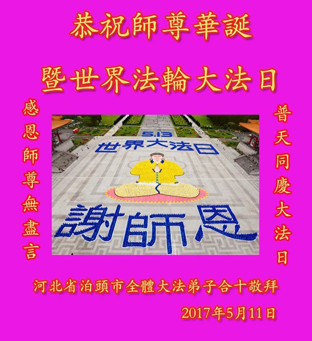 <英文版: http://en.minghui.org/html/articles/2017/5/15/163850.html>明真相世人恭贺世界法轮大法日暨师尊华诞(29条)