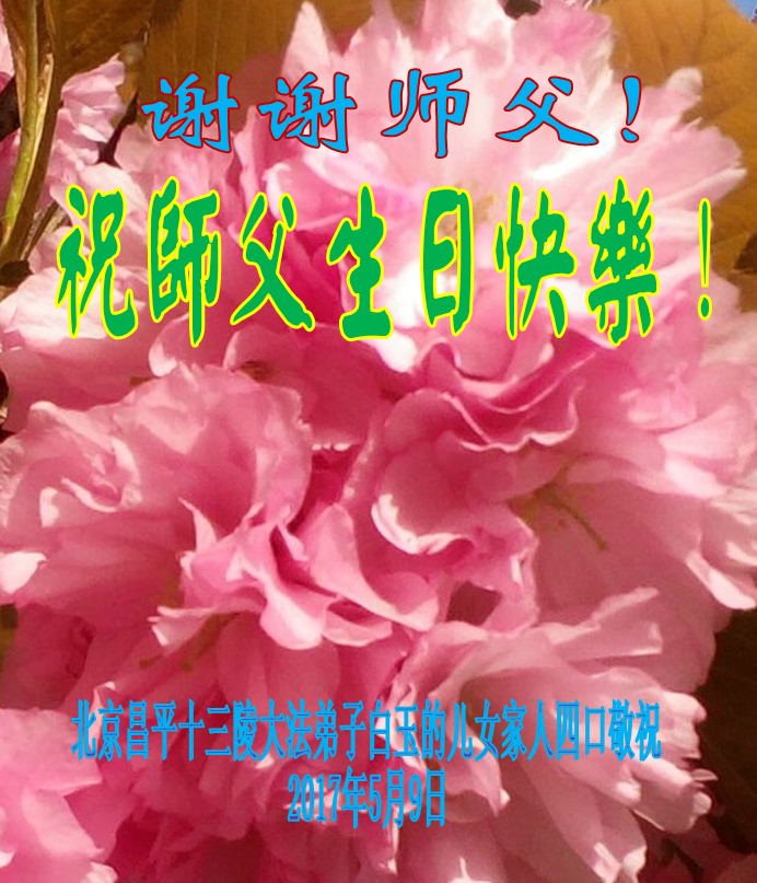 师父的生日马上就要到了,我代表家人向慈悲的大法师父问好!恭祝师父生日快乐!
