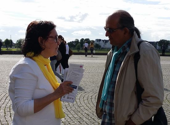 接着伦斯福德激动地说:“我是退休老师,在修炼前身患多种疾病,修炼后这些病都不翼而飞,包括癌症。法轮功也挽救了我的婚姻,在修炼前我的家庭几乎破裂。我修炼我的丈夫也很高兴,我的家庭也获益良多。我希望分享法轮大法的美好,让世人能了解法轮大法好!”