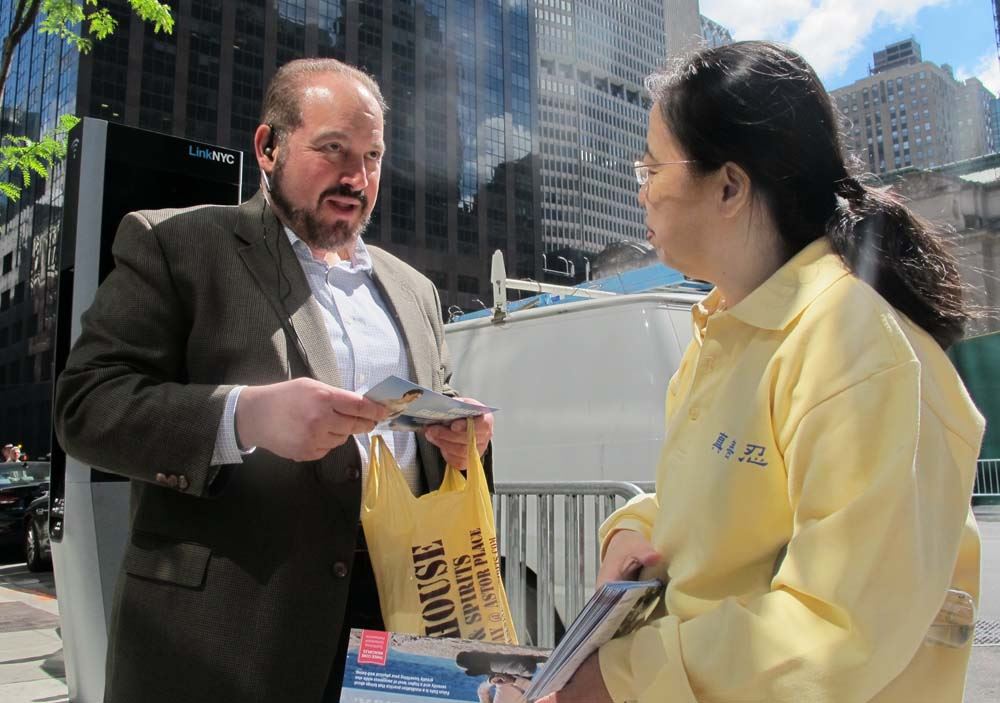来自加拿大,目前在纽约就学的约瑟夫·吉格利蒂(Joseph gigliotti)是三年前从一位朋友那里了解到法轮功的。他的那位朋友自己并不修炼,但知道法轮功很好,也知道修炼法轮功的人受益很大。约瑟夫也了解到关于法轮功受迫害的事。就此约瑟夫开始阅读《转法轮》,对于看书后所发生的内心变化约瑟夫这样描绘:“看了书后我马上明白,这是我就是我要的,我知道法轮功能教我做好人。我开始学炼功。刚开始修炼的时候我遇到一些挑战,现在我有进步。我的思想转变了,现在我更快乐了,我的内心变得宁静了,也不容易被激怒。”