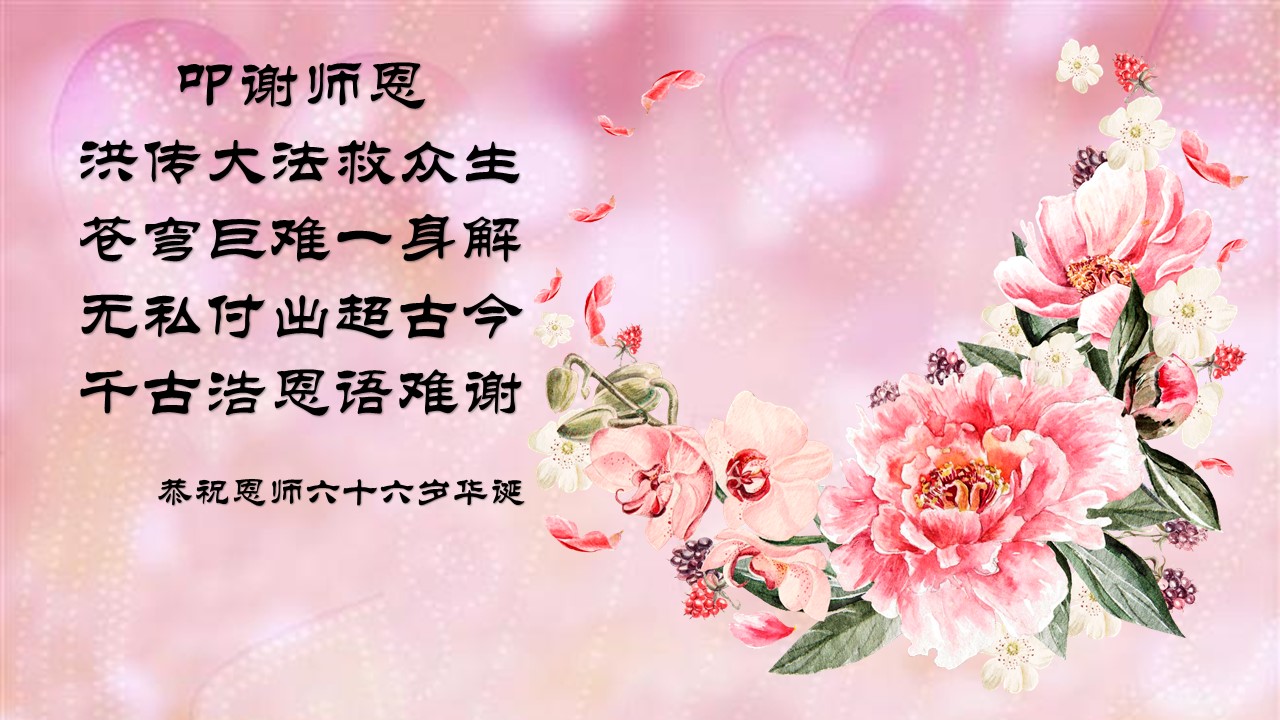 弟子们感谢师尊的慈悲救度!恭祝师尊生日快乐!普天同庆世界法轮大法日!