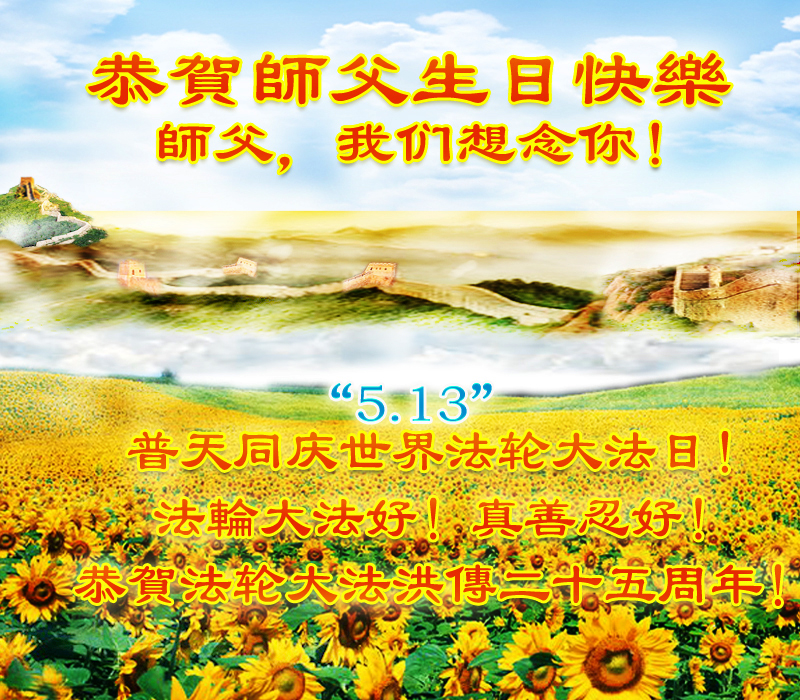 恭祝慈悲的师尊生日快乐!法轮大法洪传于世二十五周年普天同庆世界大法日5•13!