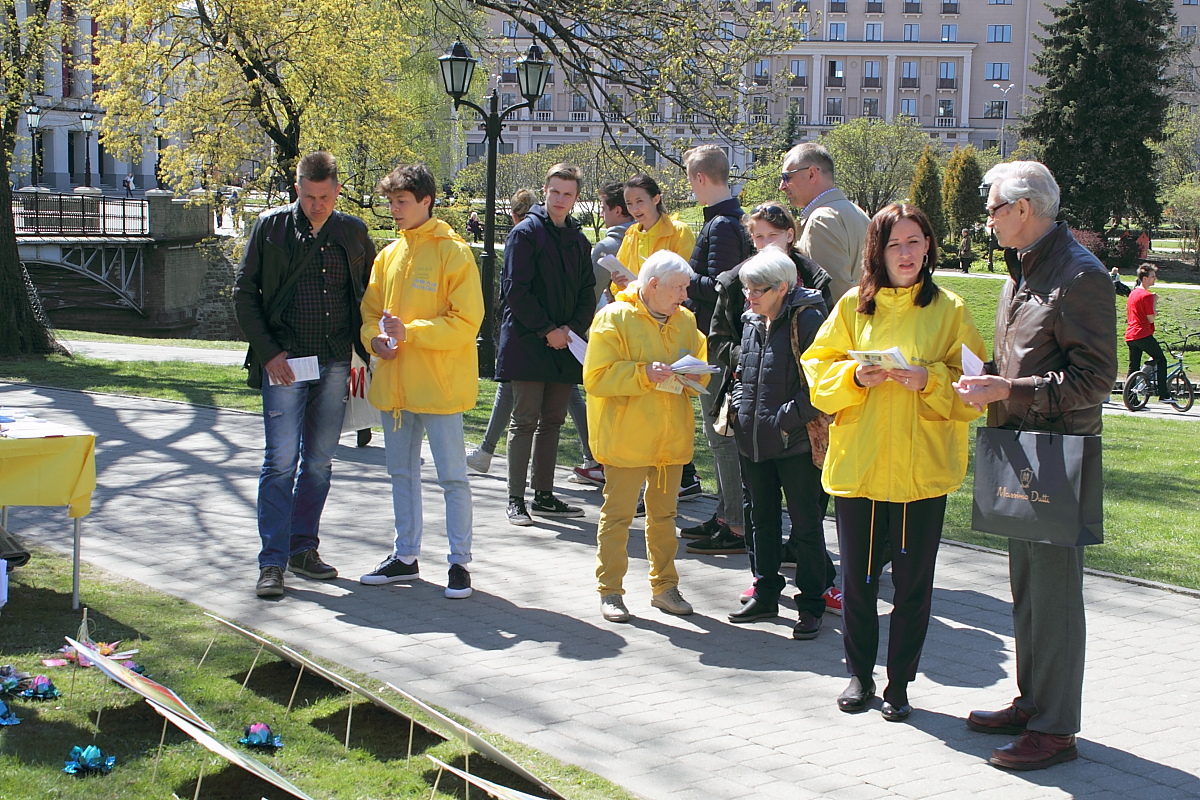 一位女士也对法轮功的活动很感兴趣,她说她的女儿在香港,是一名教师,可是从来没有听说过对法轮功的迫害。学员们告诉她,香港是自治区,法轮功学员的活动都是自由公开的,然而在中国大陆,法轮功学员每天都受到迫害的威胁,甚至被活摘器官。这名女士表示很难过和遗憾,并感谢学员让她了解了这么多的真相。