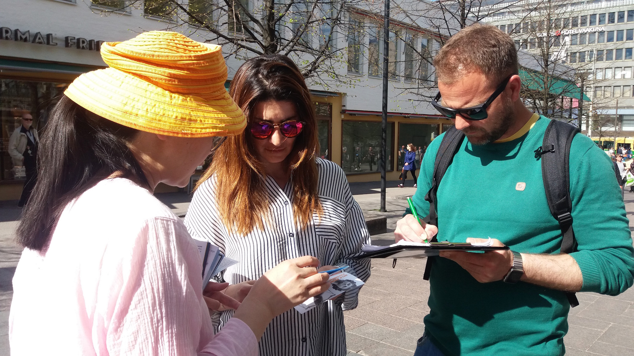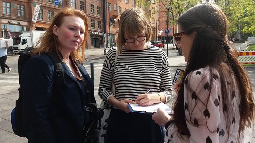 ![]() 图1:初夏的芬兰赫尔辛基市中心的反迫害信息日 |