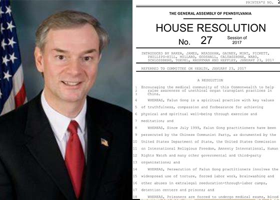 美国宾州再通过法案 谴责中共活摘器官(图)