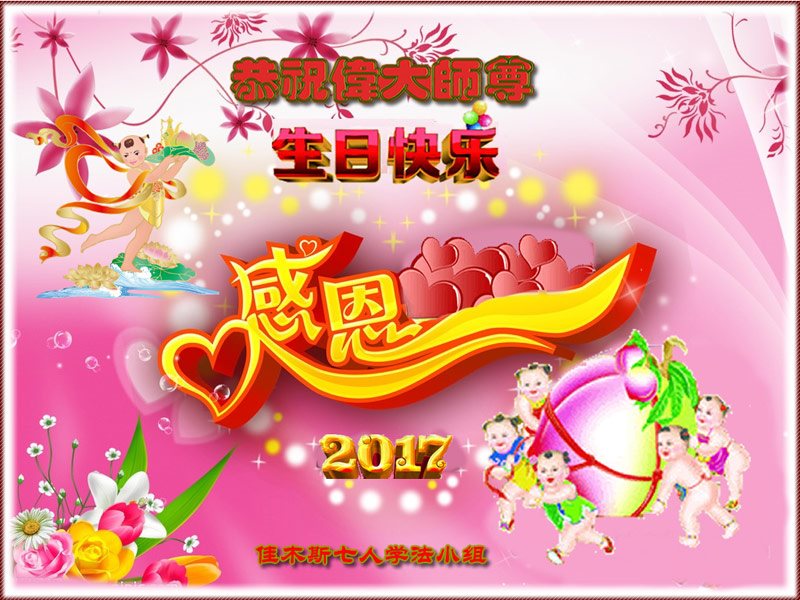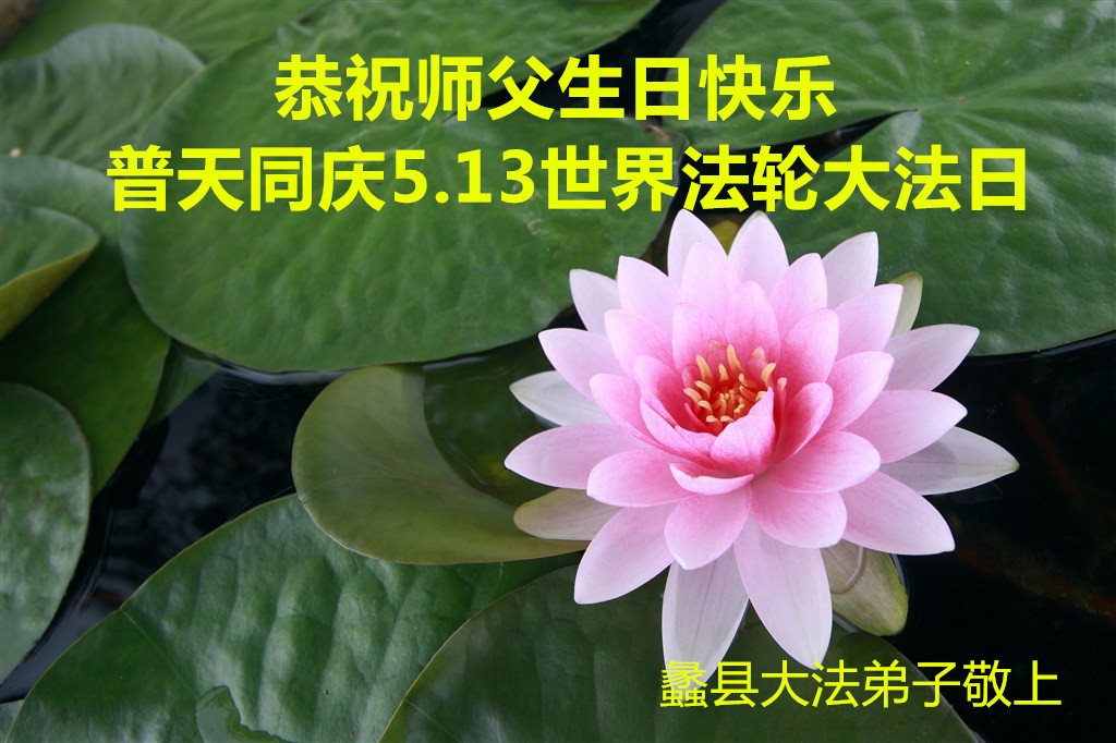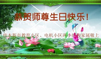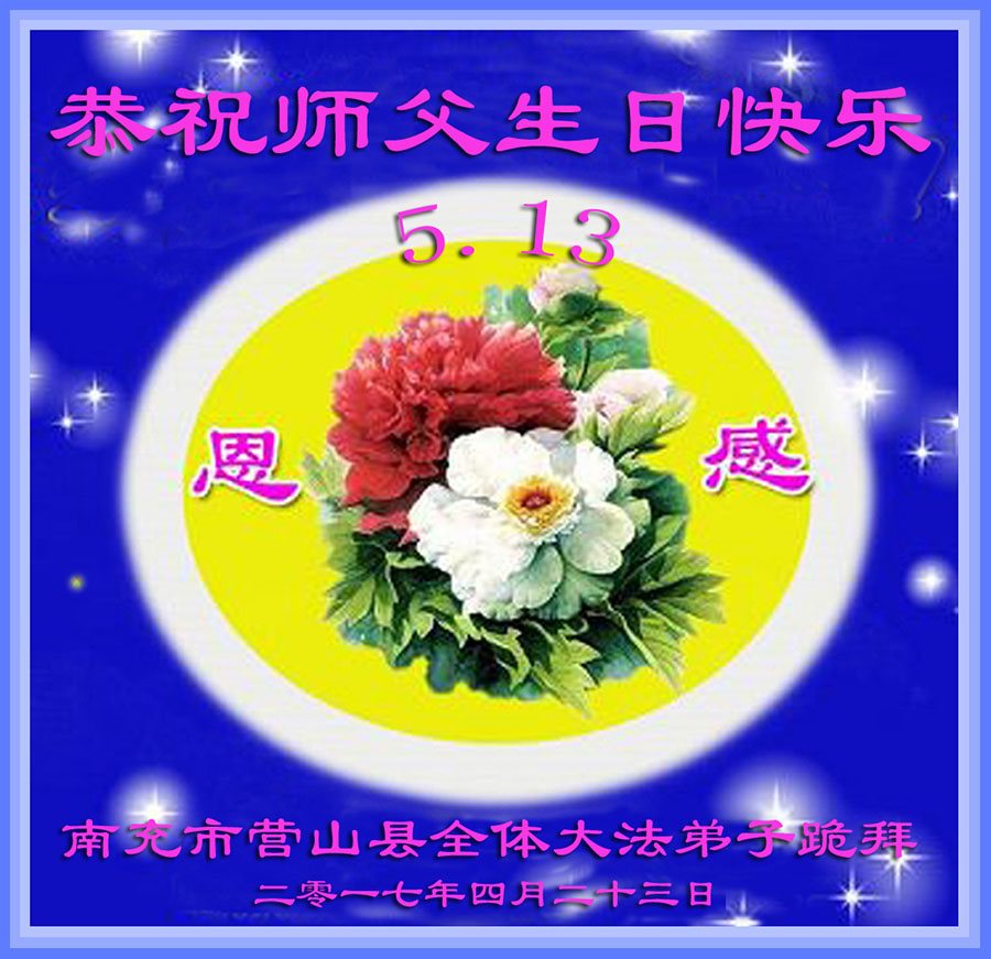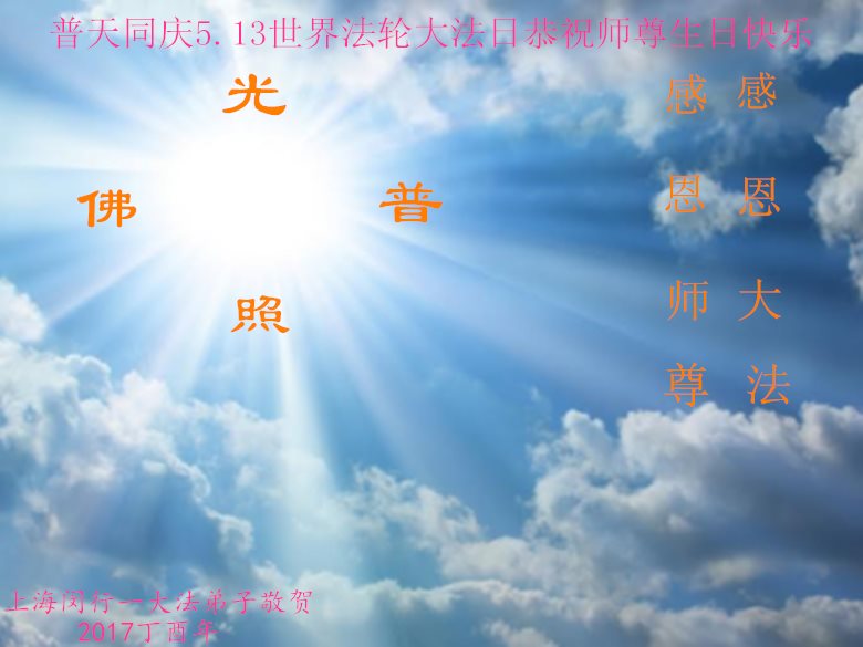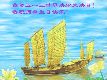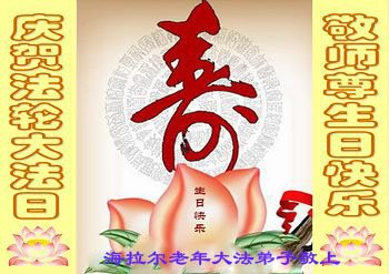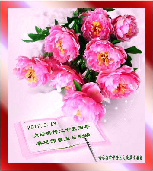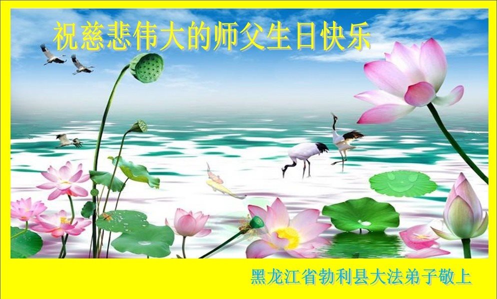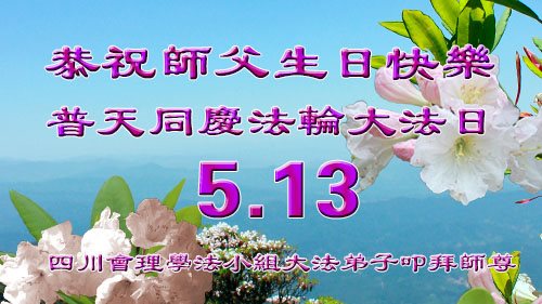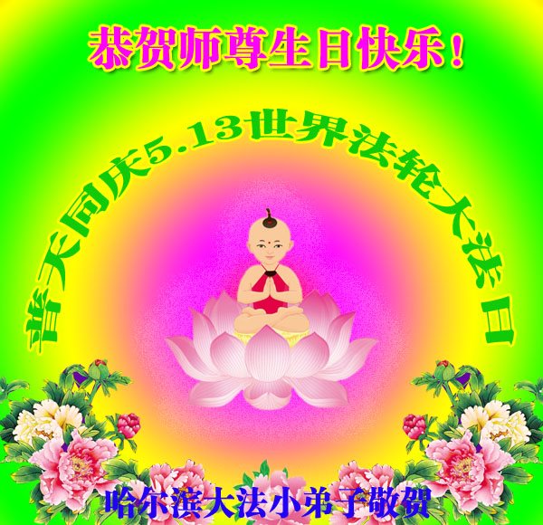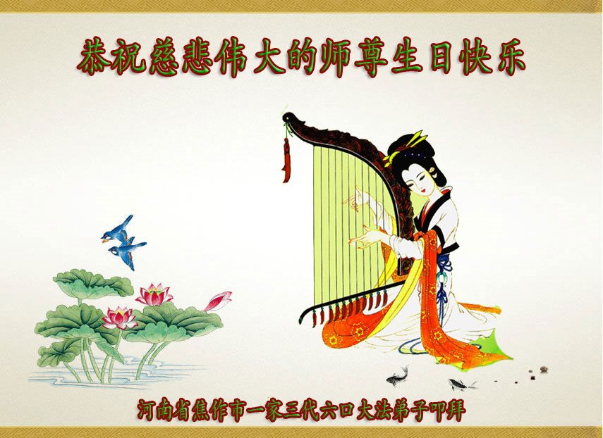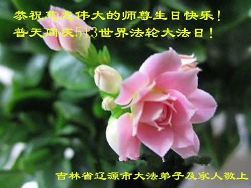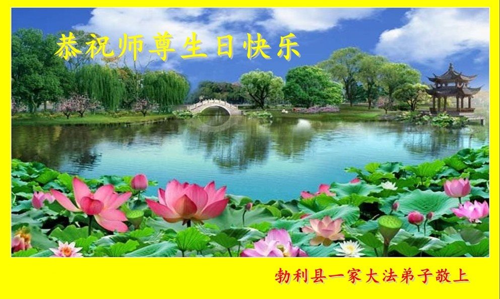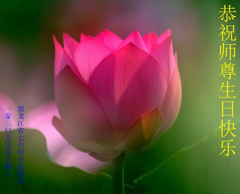 在五一三这个普天同庆队伟大时刻,我和我的家人在此恭祝:恭祝慈悲伟大的师尊生日快乐!为了芸芸众生得救,师父,您辛苦了!在此也祝贺:法轮大法洪传二十五周年!