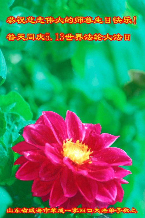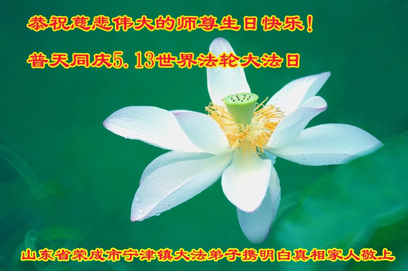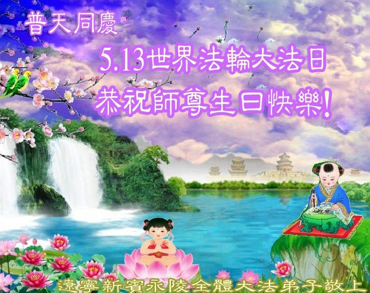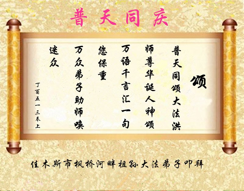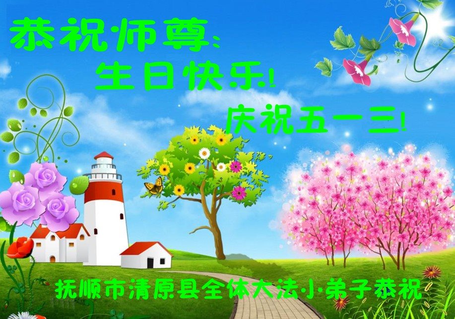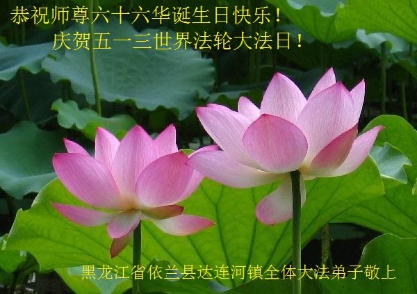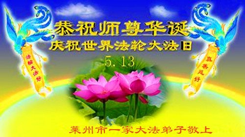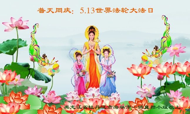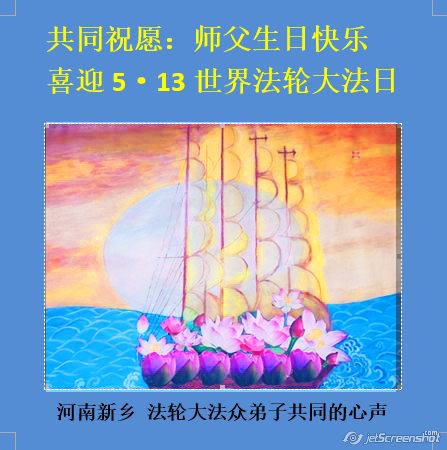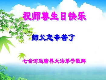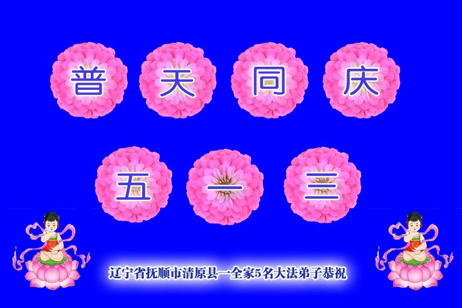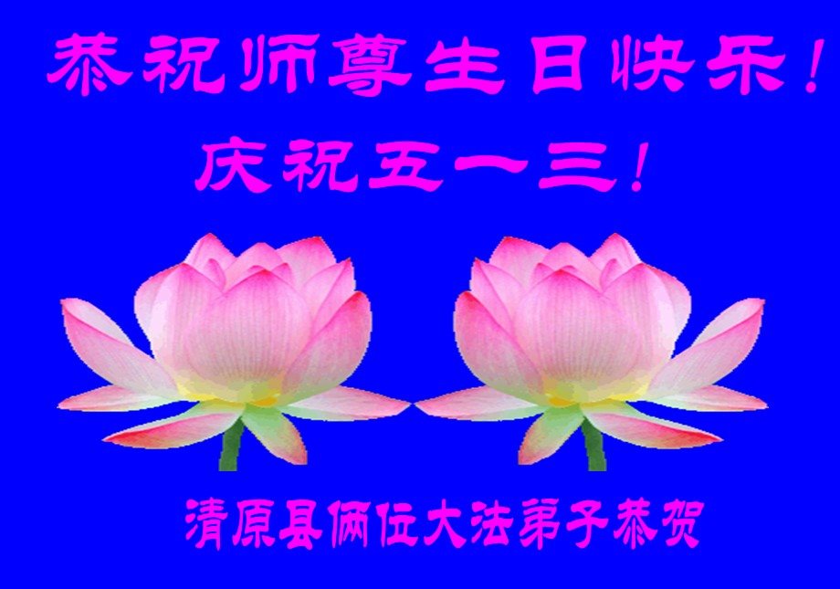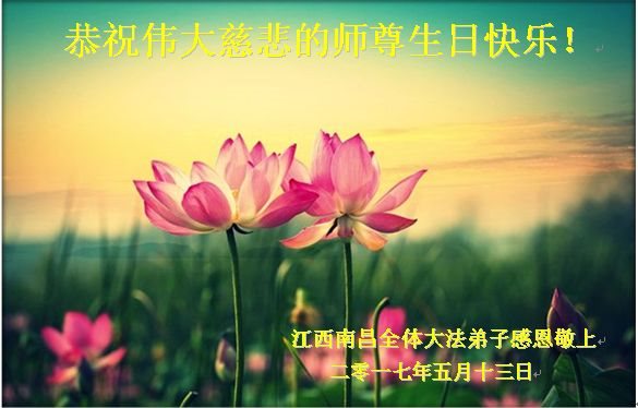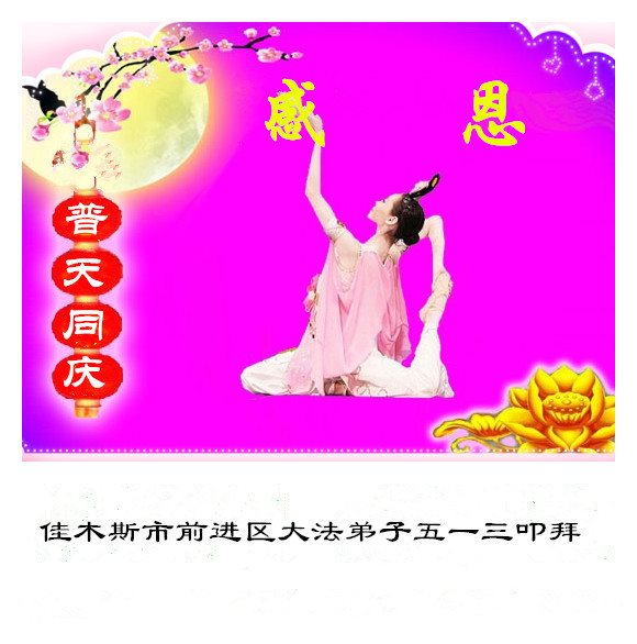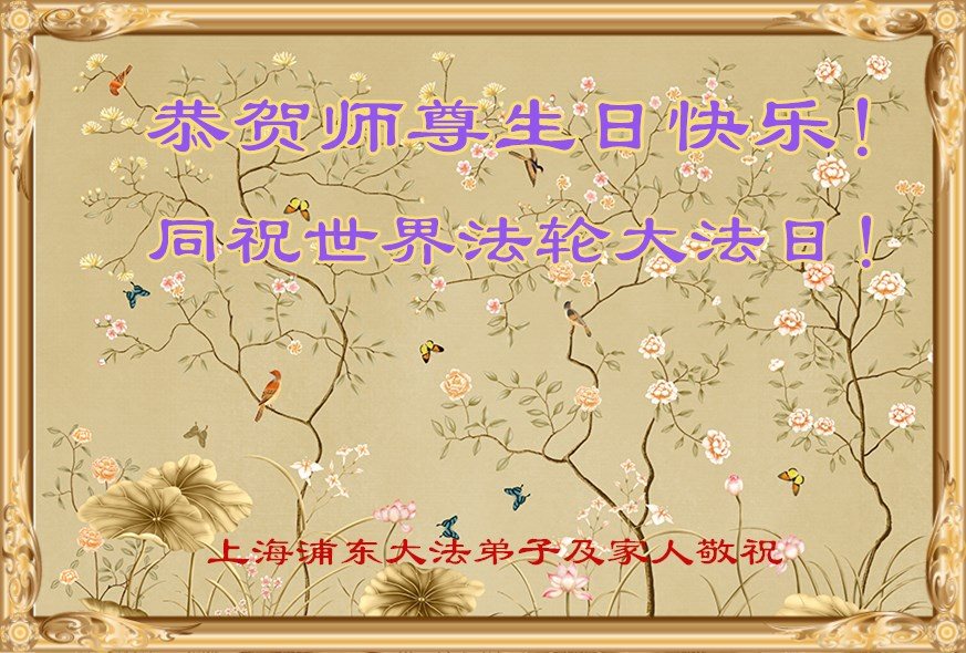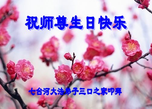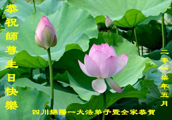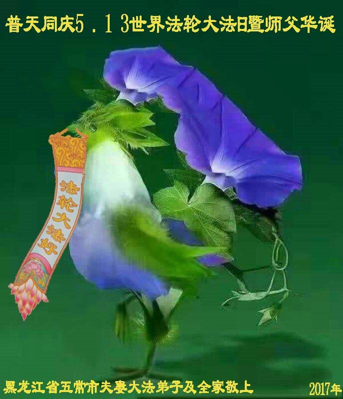 在五一三这个普天同庆队伟大时刻,我和我的家人在此恭祝:恭祝慈悲伟大的师尊生日快乐!为了芸芸众生得救,师父,您辛苦了!在此也祝贺:法轮大法洪传二十五周年!