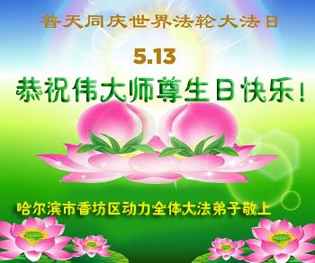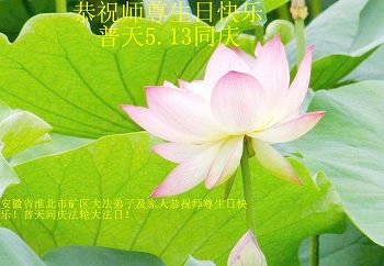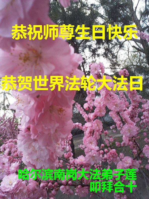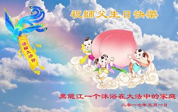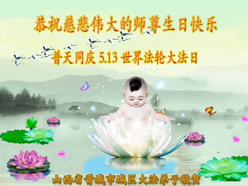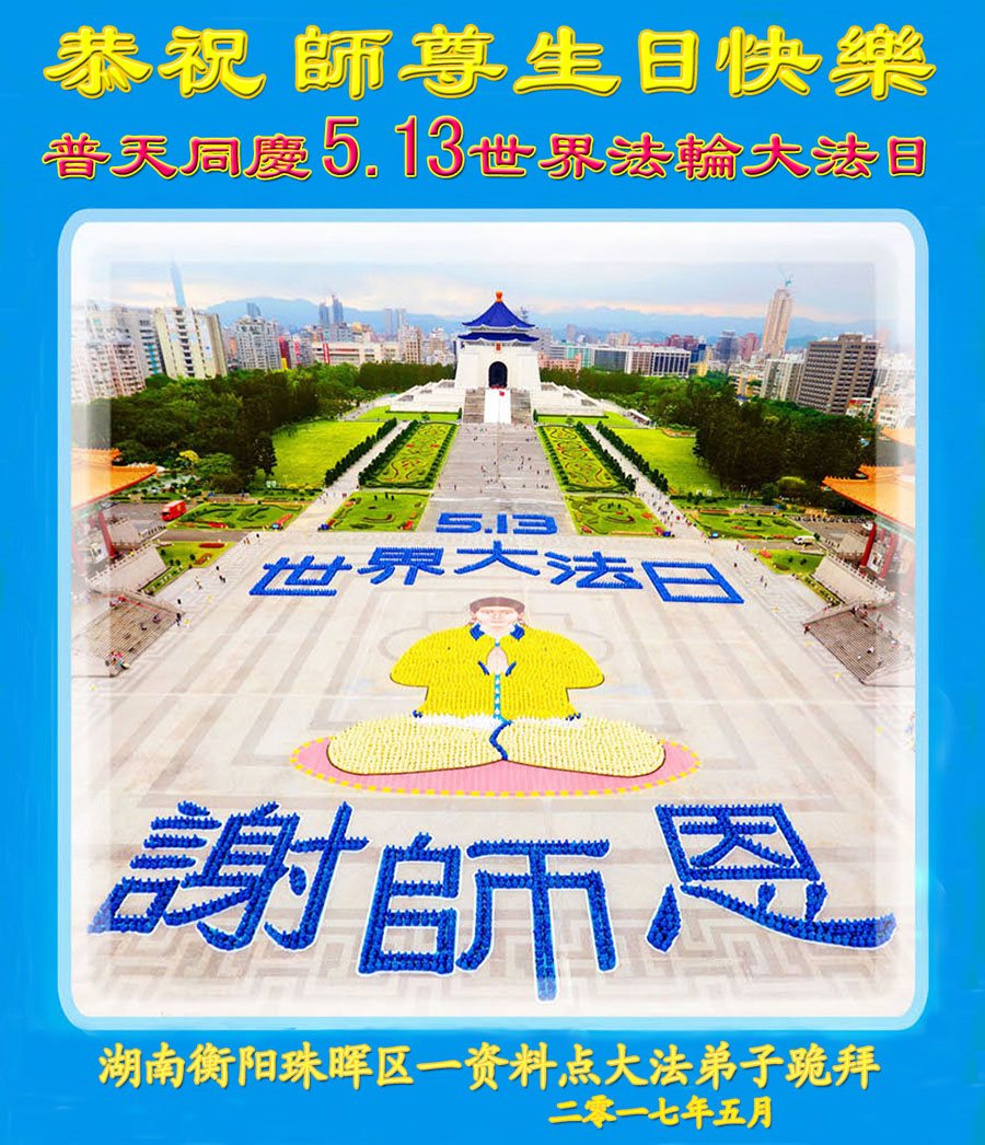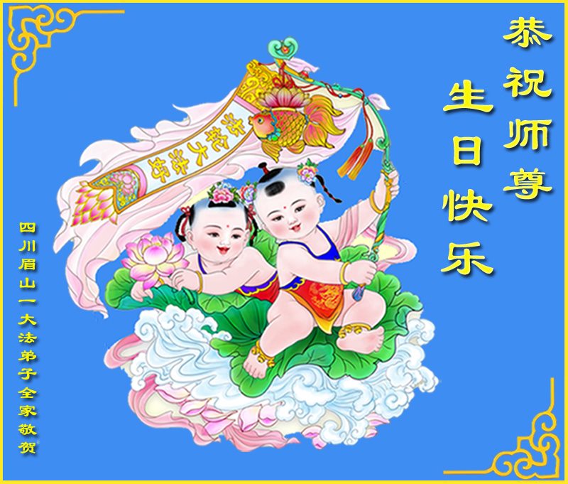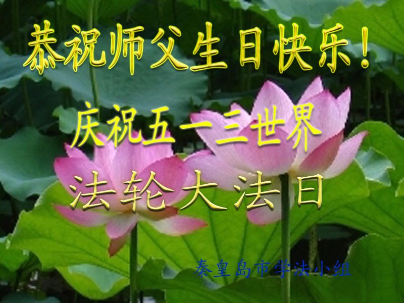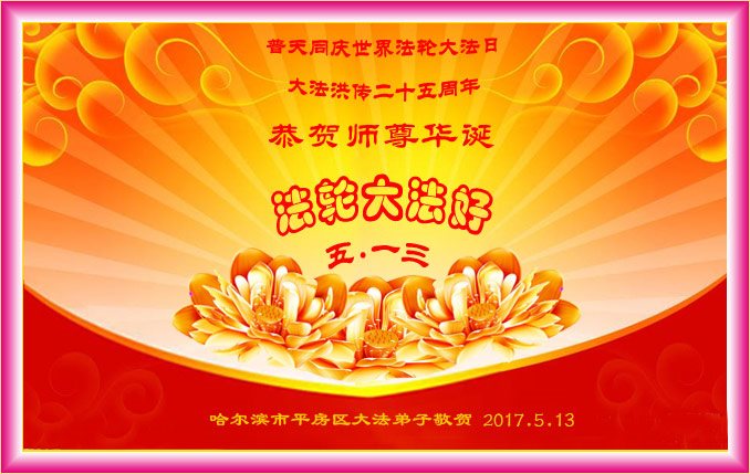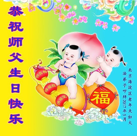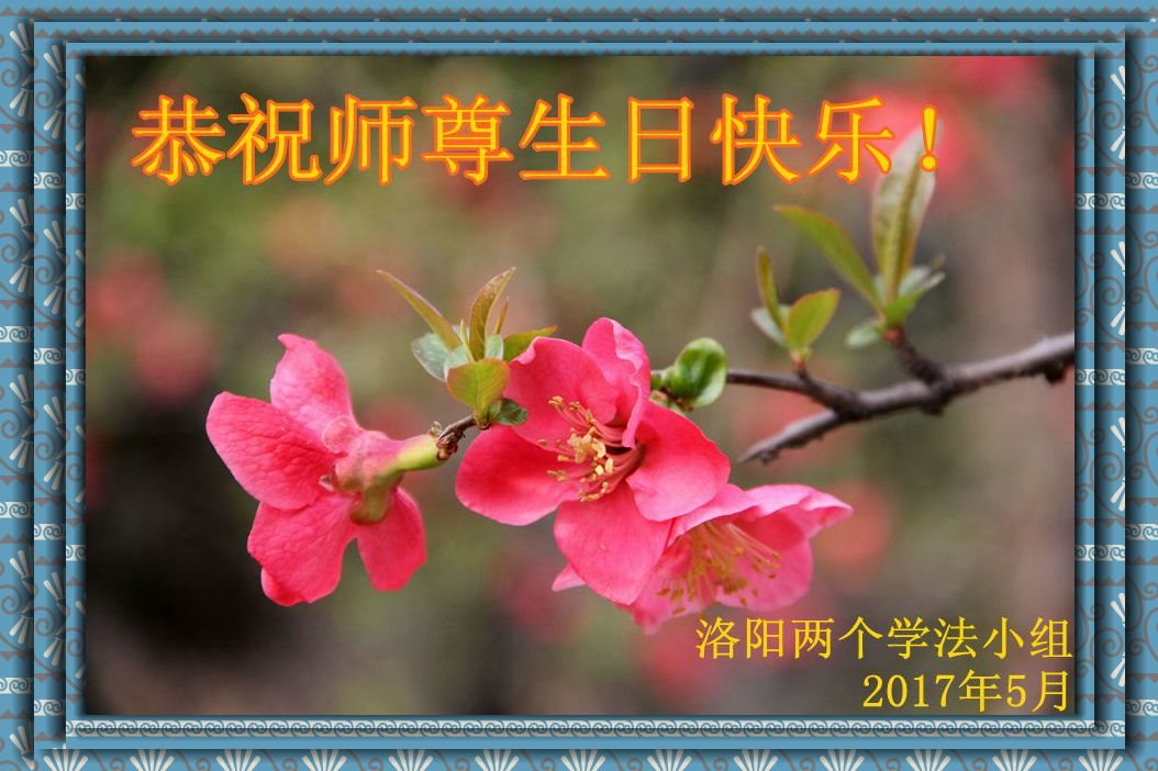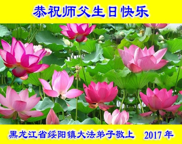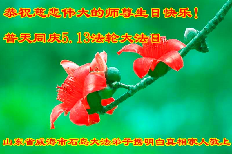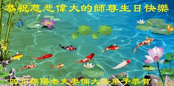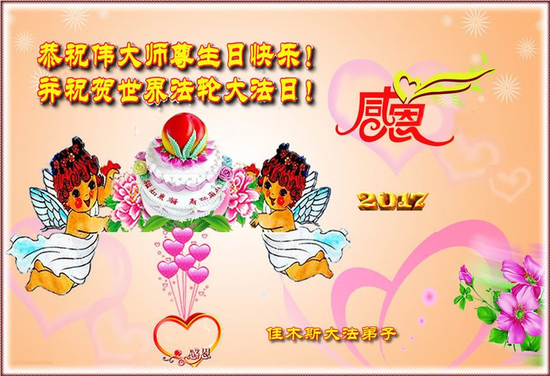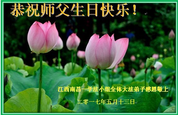 在五一三这个普天同庆队伟大时刻,我和我的家人在此恭祝:恭祝慈悲伟大的师尊生日快乐!为了芸芸众生得救,师父,您辛苦了!在此也祝贺:法轮大法洪传二十五周年!