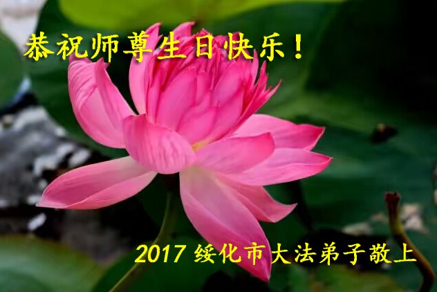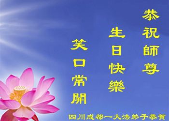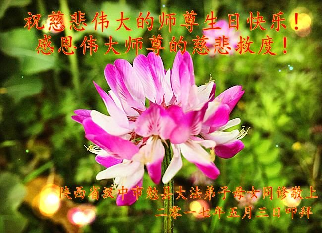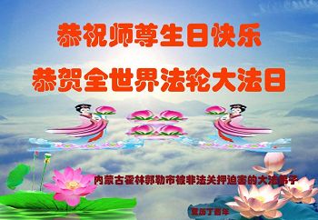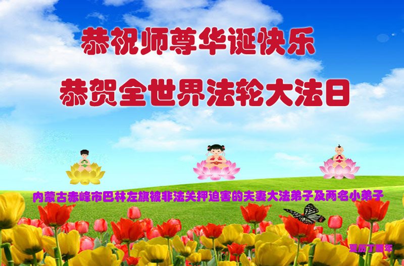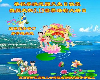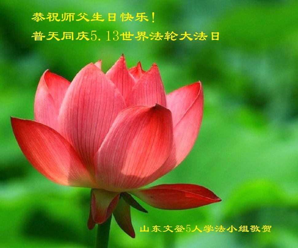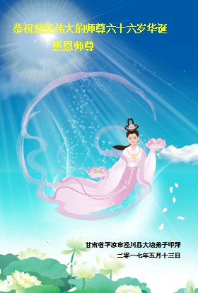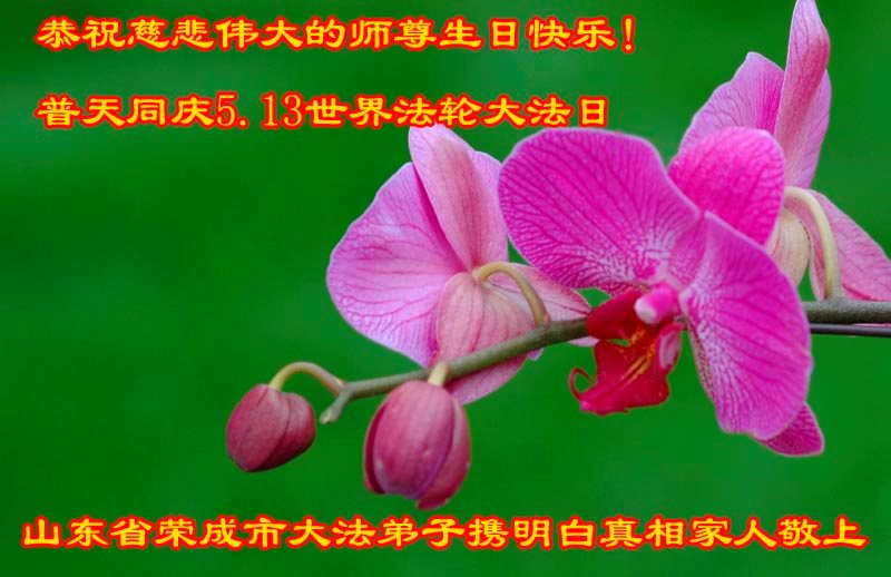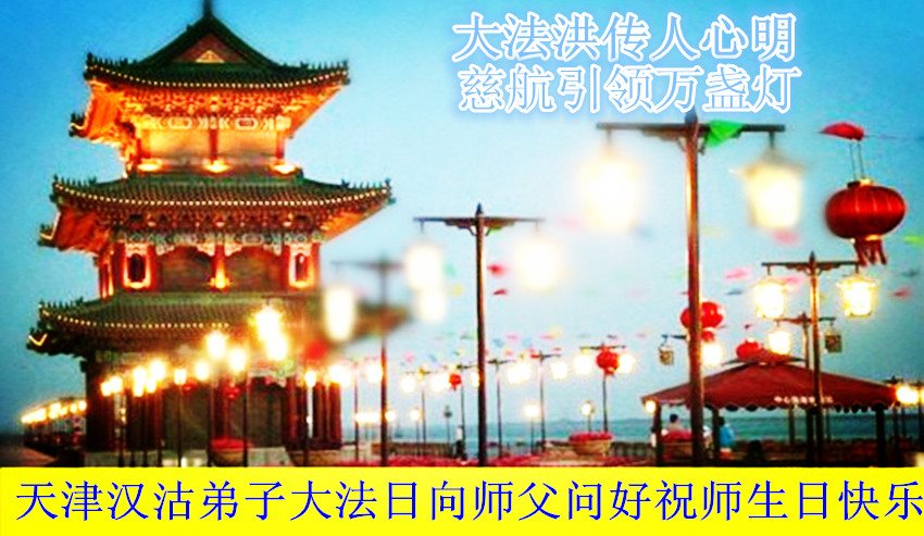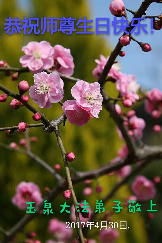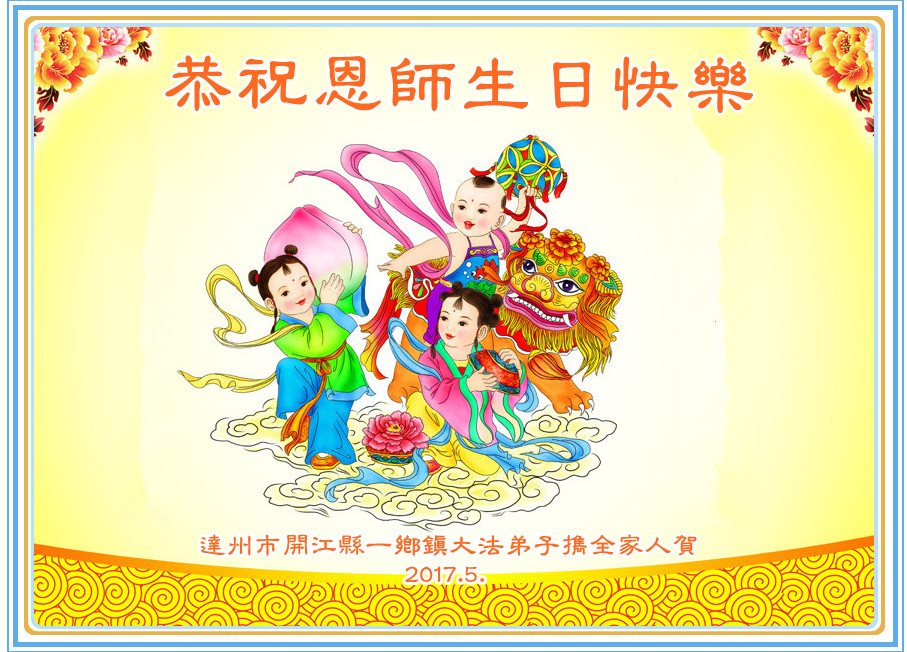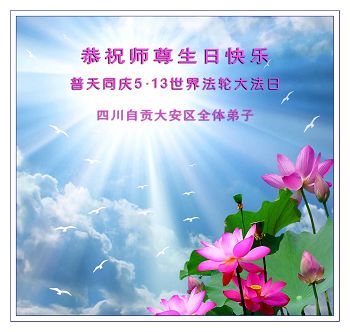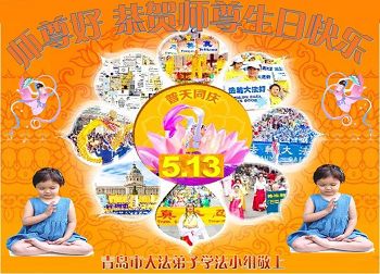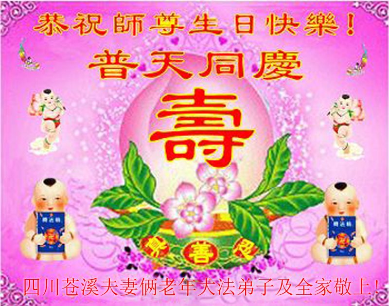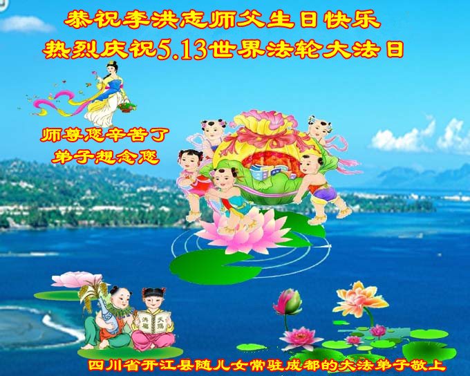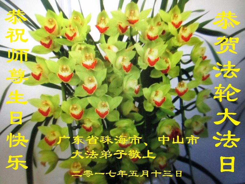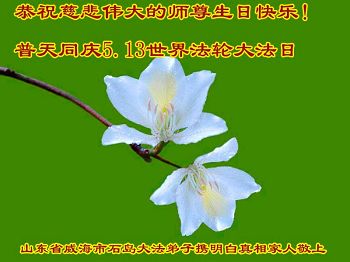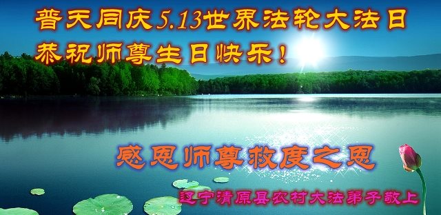 在五一三这个普天同庆队伟大时刻,我和我的家人在此恭祝:恭祝慈悲伟大的师尊生日快乐!为了芸芸众生得救,师父,您辛苦了!在此也祝贺:法轮大法洪传二十五周年!