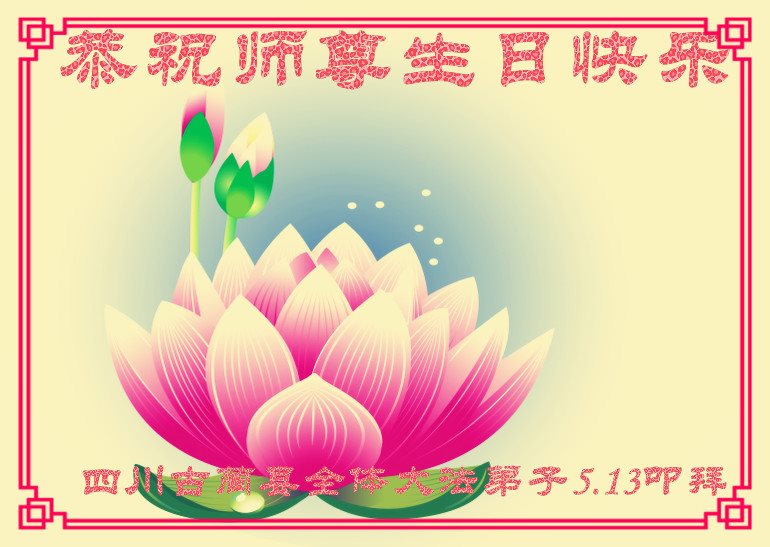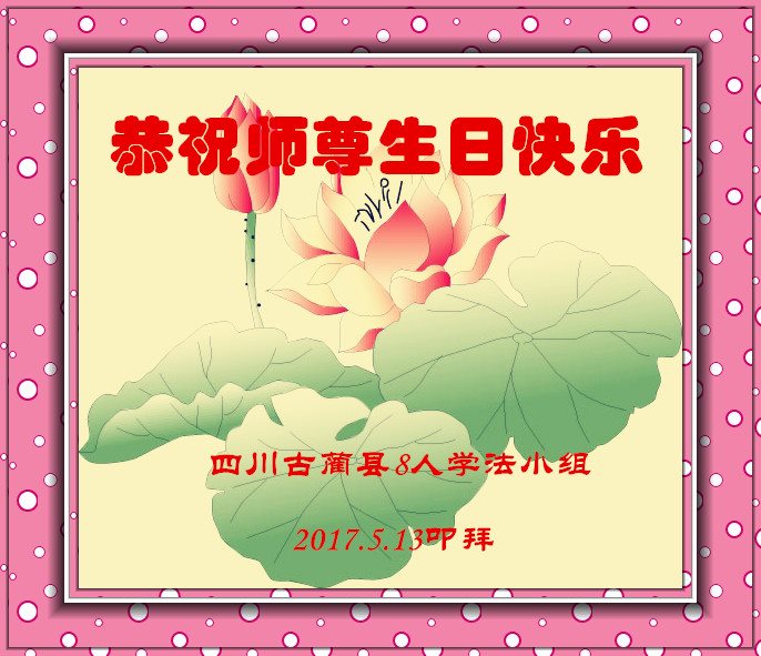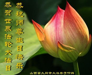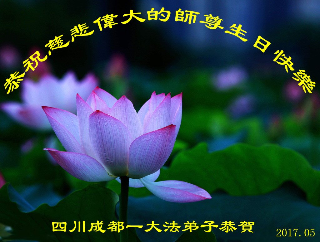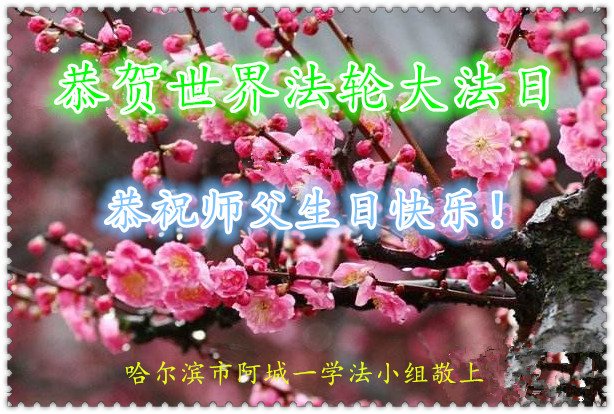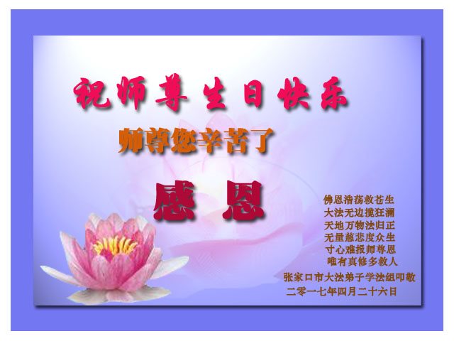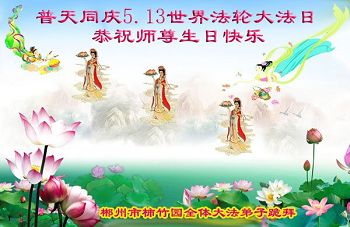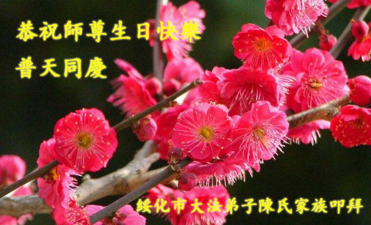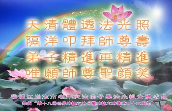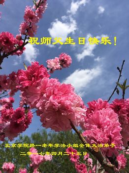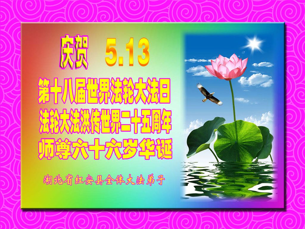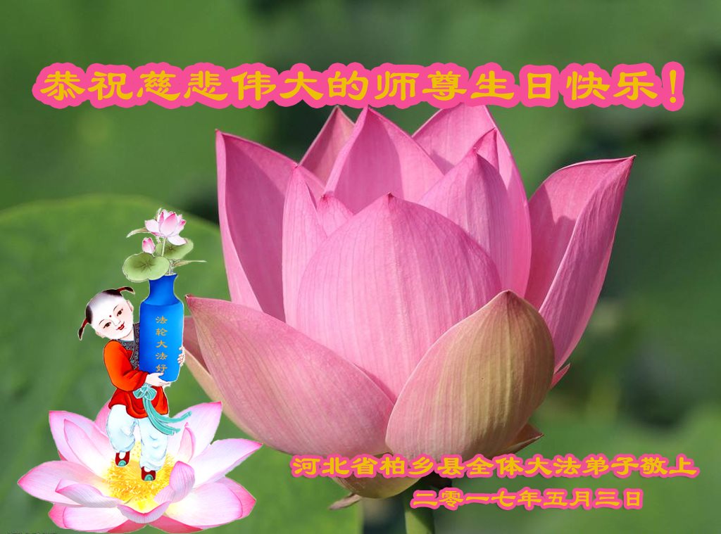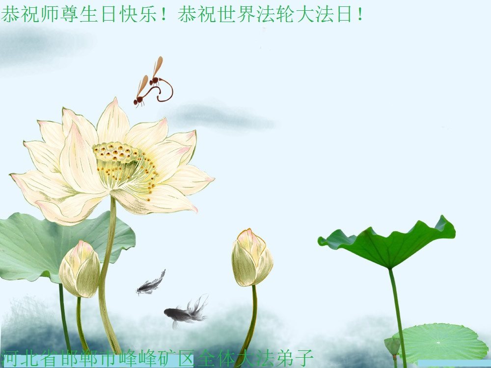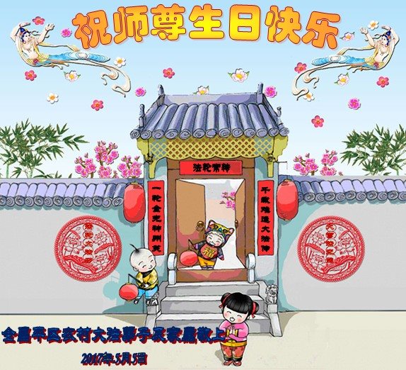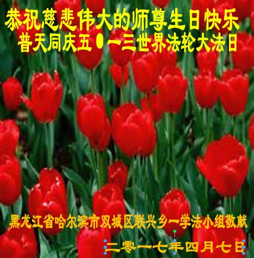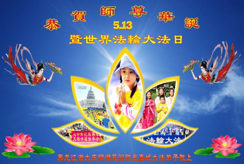 在五一三这个普天同庆队伟大时刻,我和我的家人在此恭祝:恭祝慈悲伟大的师尊生日快乐!为了芸芸众生得救,师父,您辛苦了!在此也祝贺:法轮大法洪传二十五周年!