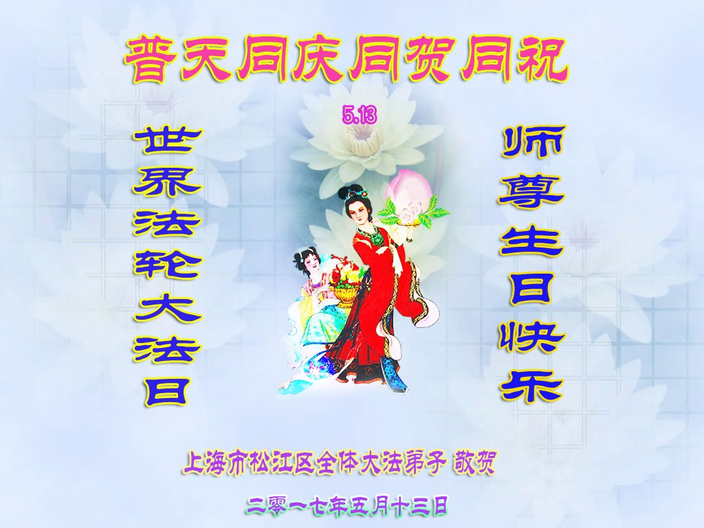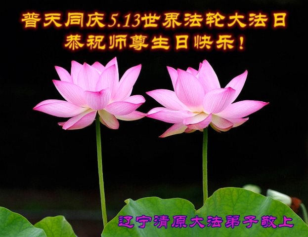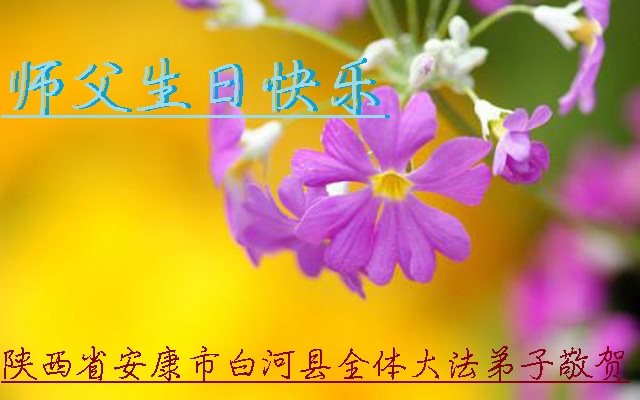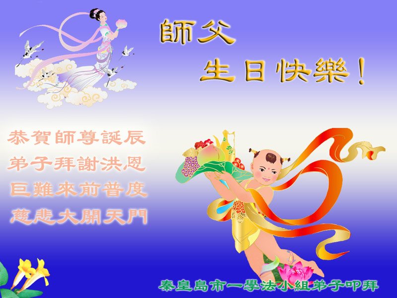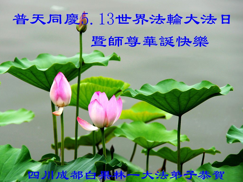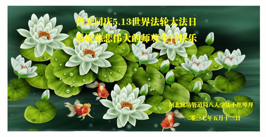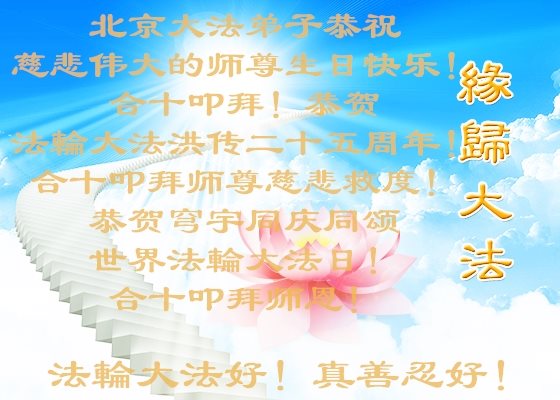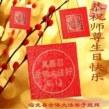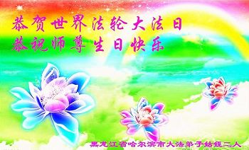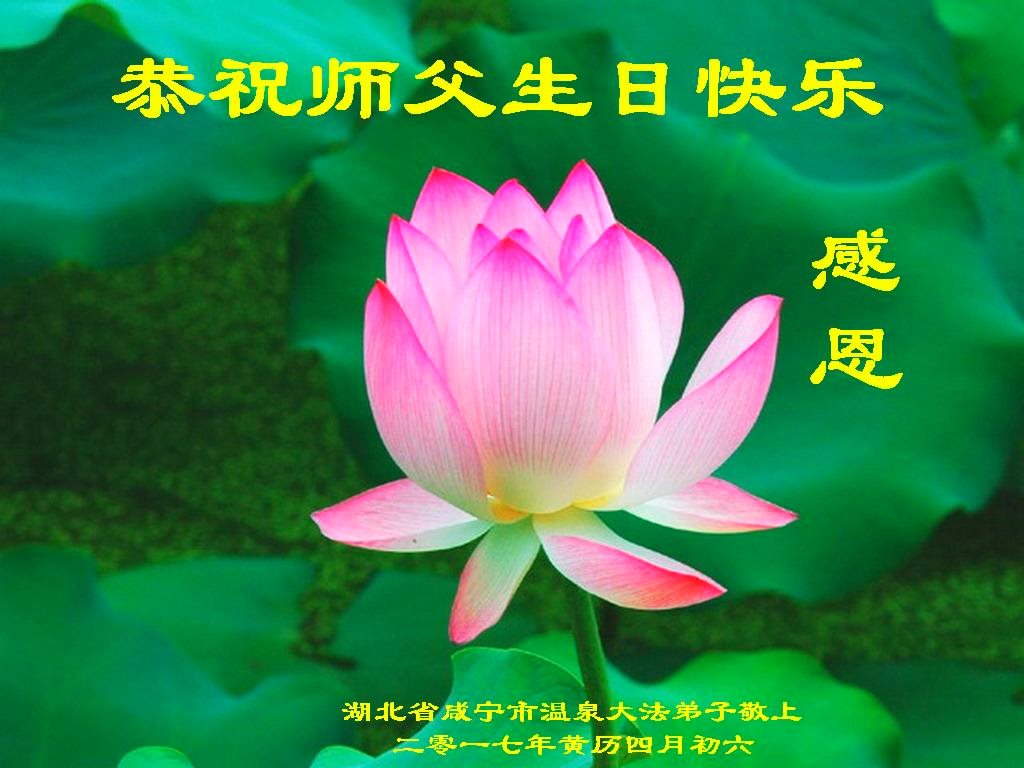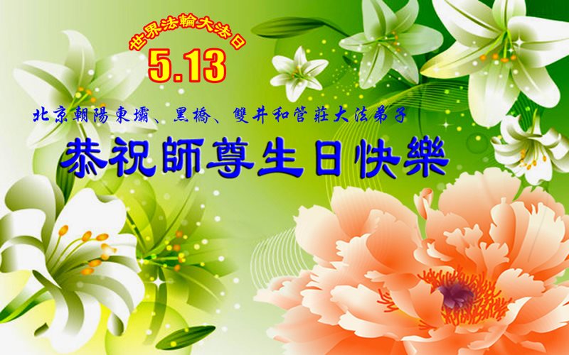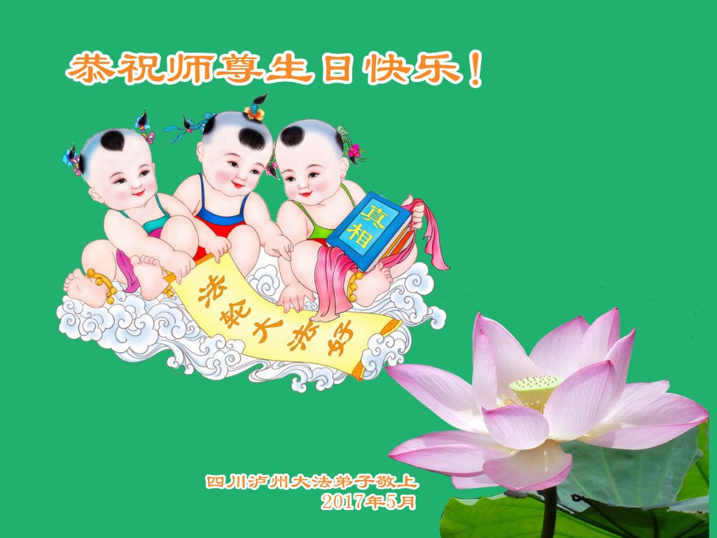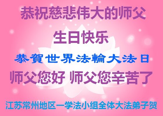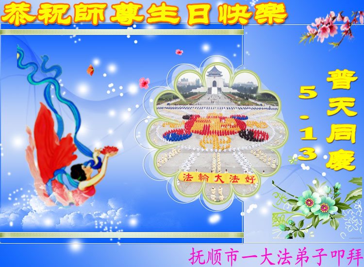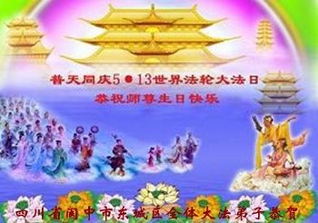 在五一三这个普天同庆队伟大时刻,我和我的家人在此恭祝:恭祝慈悲伟大的师尊生日快乐!为了芸芸众生得救,师父,您辛苦了!在此也祝贺:法轮大法洪传二十五周年!