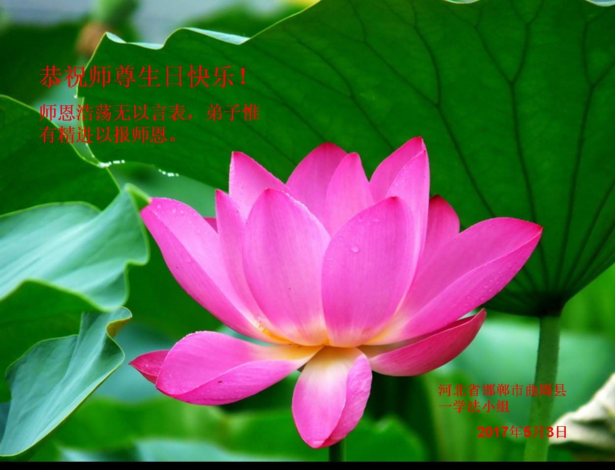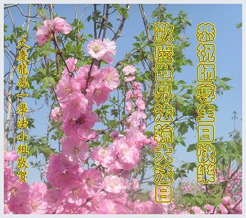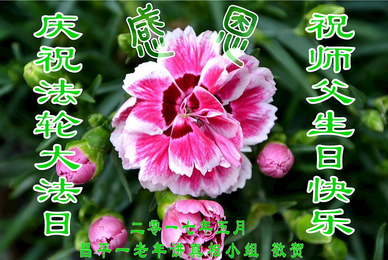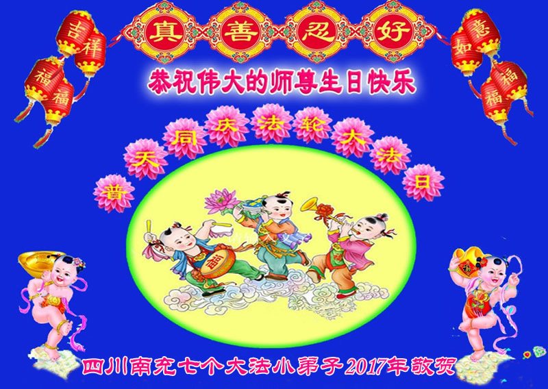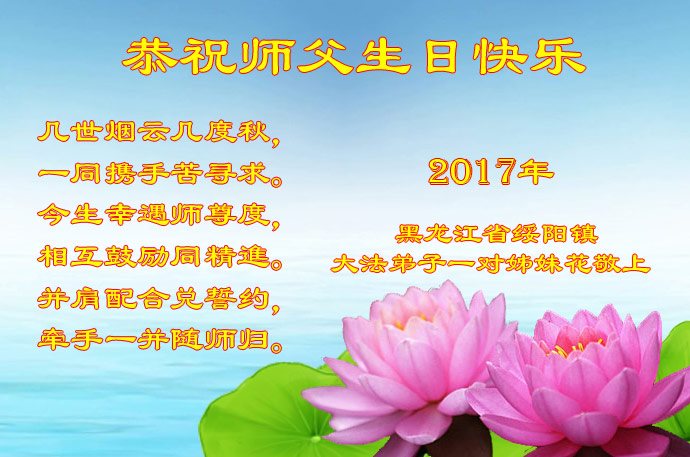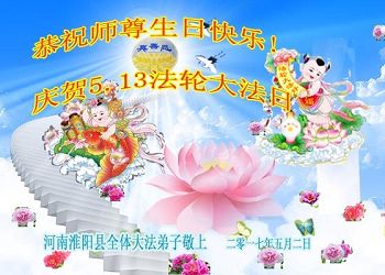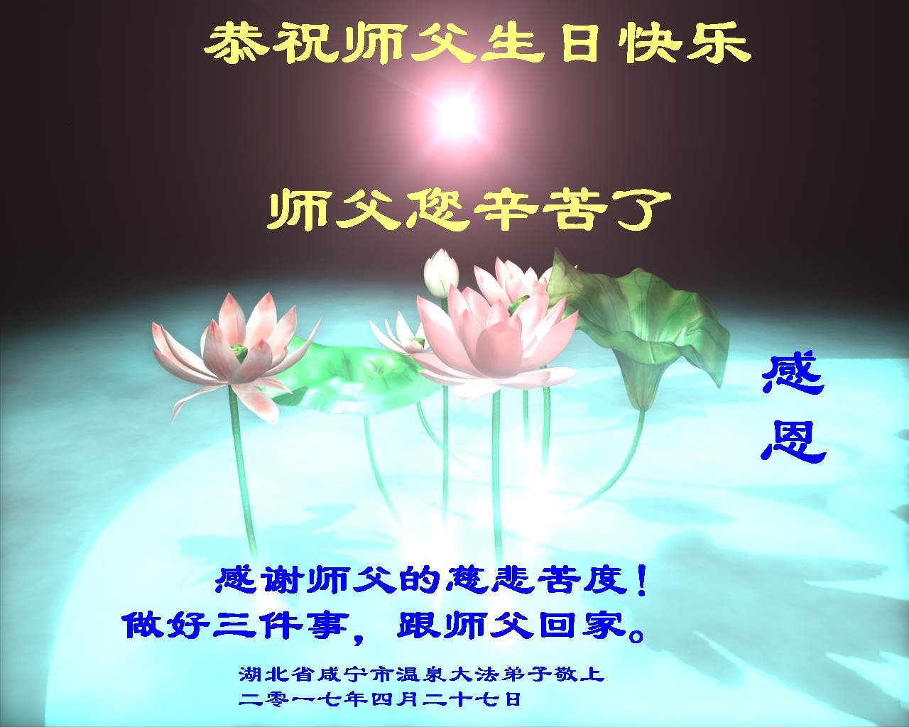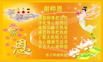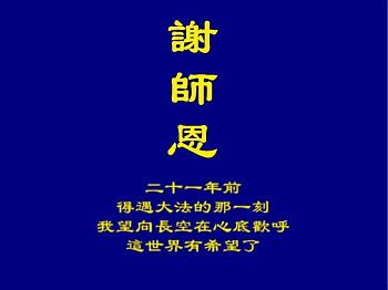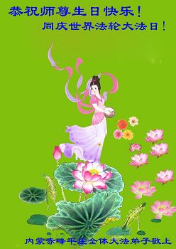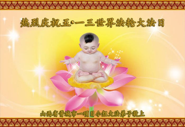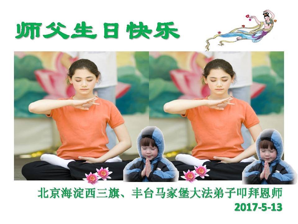 在五一三这个普天同庆队伟大时刻,我和我的家人在此恭祝:恭祝慈悲伟大的师尊生日快乐!为了芸芸众生得救,师父,您辛苦了!在此也祝贺:法轮大法洪传二十五周年!
