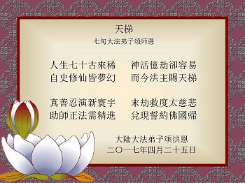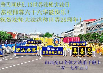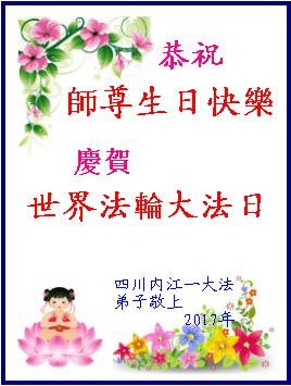 <英文版: http://en.minghui.org/html/articles/2017/5/10/163308.html>教育系统大法弟子恭贺世界法轮大法日暨师尊华诞(19条)
