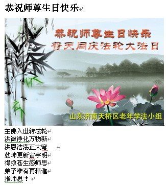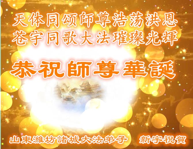 聊城一教育系统大法弟子恭祝师父生日快乐!