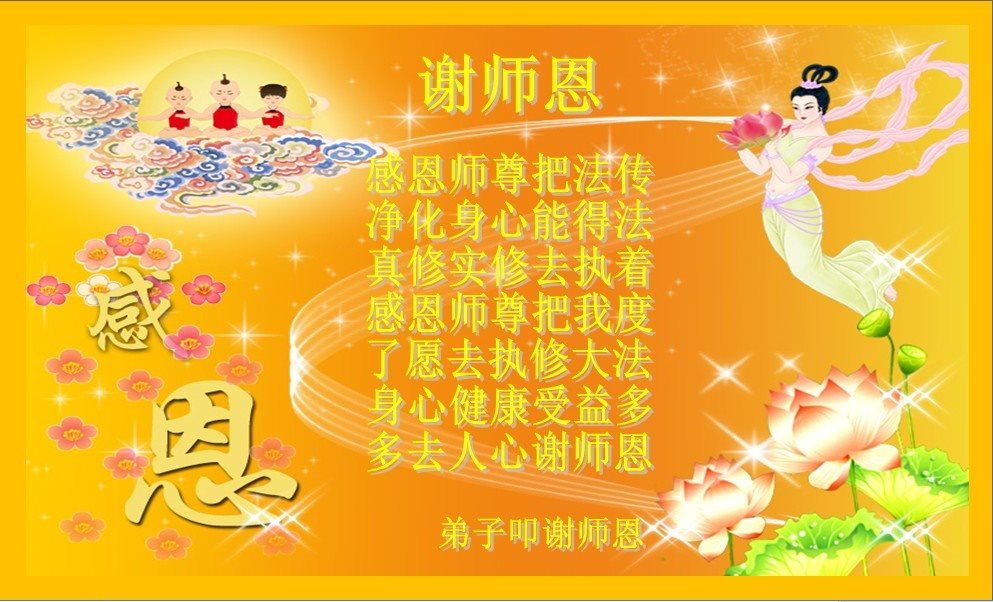 在这普天同庆的日子,我们全村的大法弟子叩谢师恩,无以言表对师尊的感激,我们会在以后的道路上更加精進,互相配合好,不负师尊的慈悲救度。谢谢师尊、谢谢师尊。