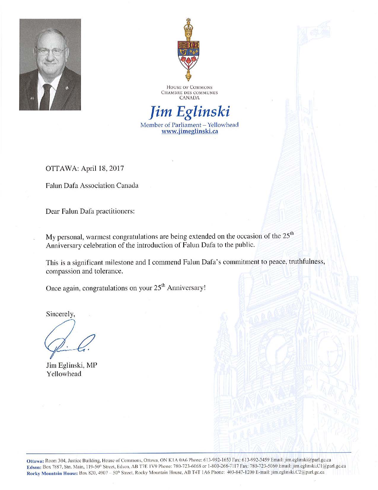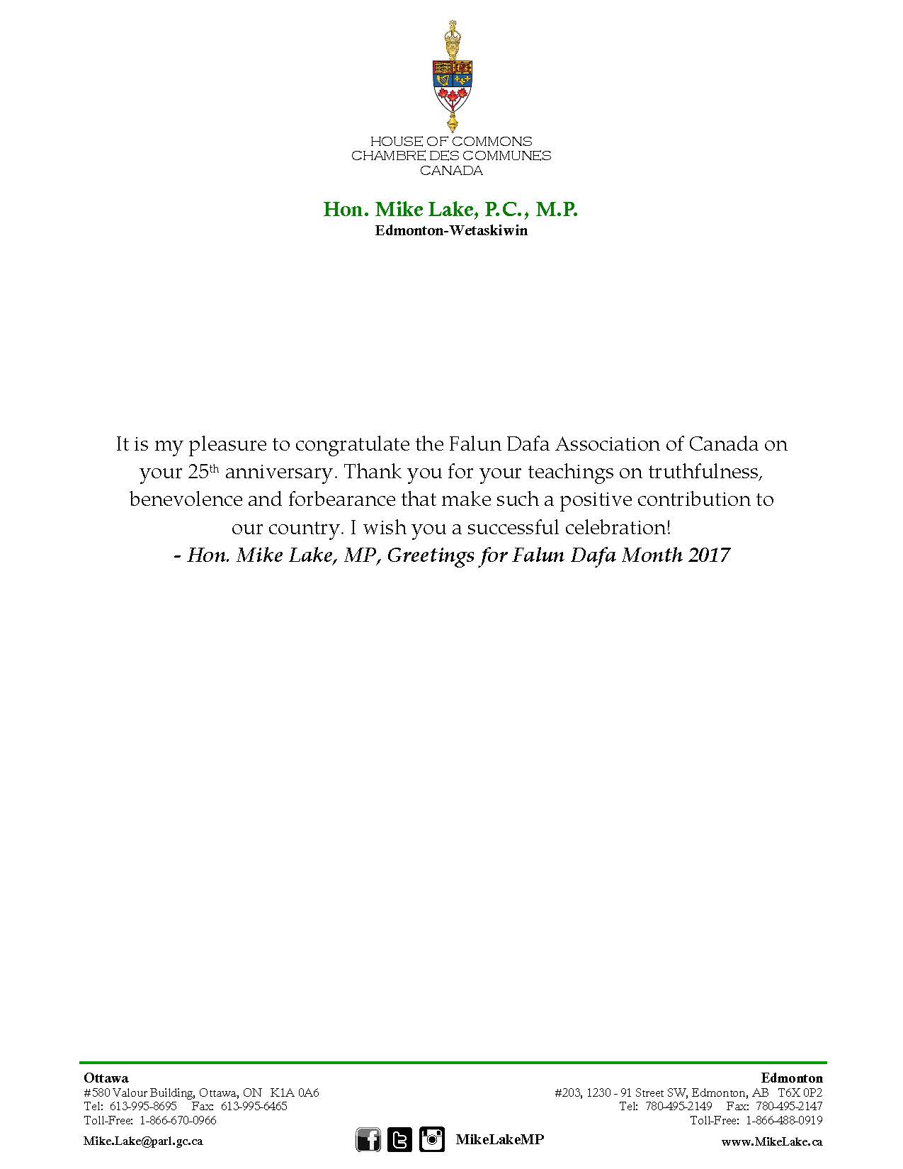 民主党前区议员林咏然表示这二十五年来,无论他到哪个国家地区,都看到法轮功学员以真善忍的精神感染周围的人们,觉得非常感动。林咏然祝贺李洪志先生华诞,他说:“觉得李洪志老师非常伟大,有一个那么长的时间坚忍的去传扬法轮功。”他祈愿法轮功发扬光大:“不单单是我们中国,还是令全世界更多的人可以受益。”