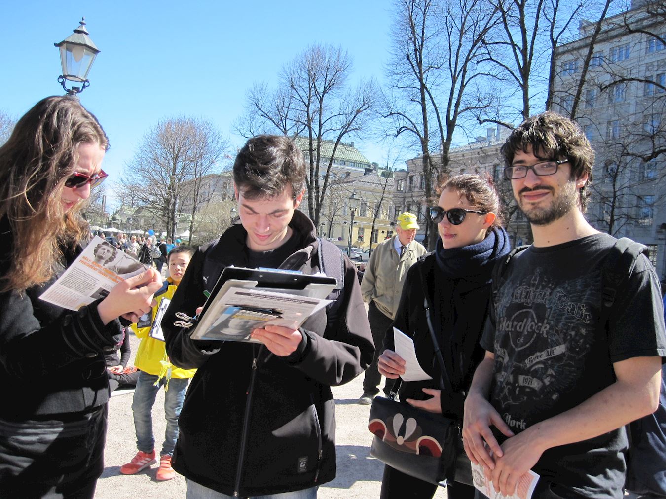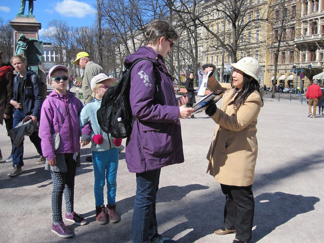 一位年轻小姐从深圳来港旅游,第一次看到法轮功学员的游行:“很有意思,挺震撼的,感觉还不错。”她认为每个都应有自己的信仰自由,支持法轮功的信仰自由。