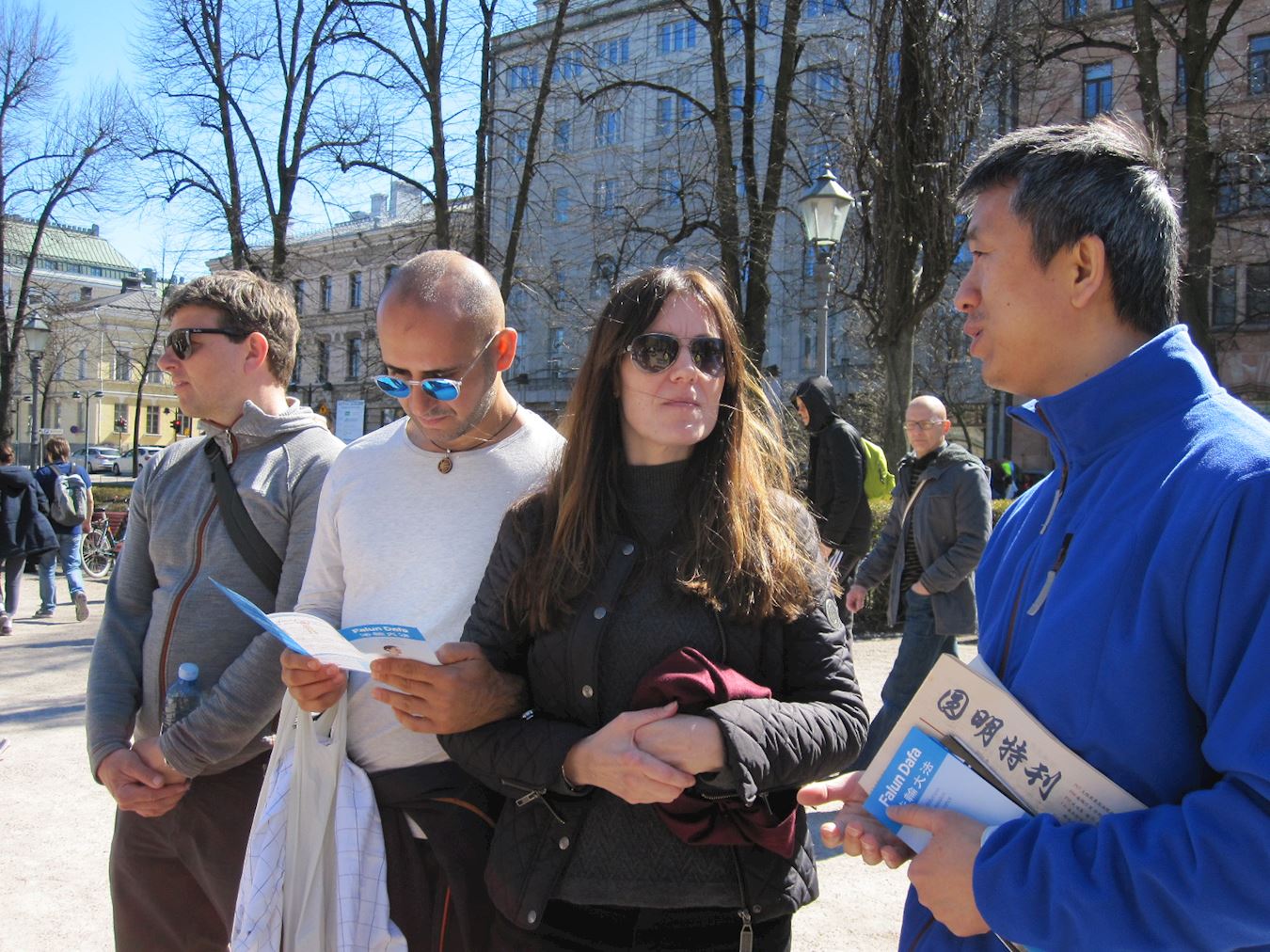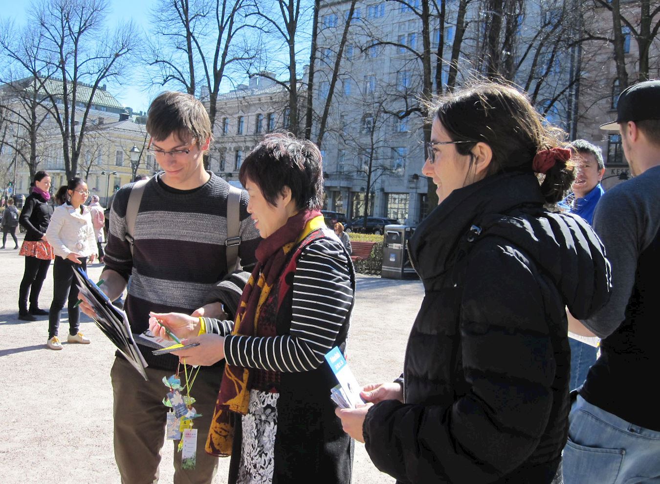 ![]() 图12~19:法轮功学员的游行队伍向人们传达真相。 |