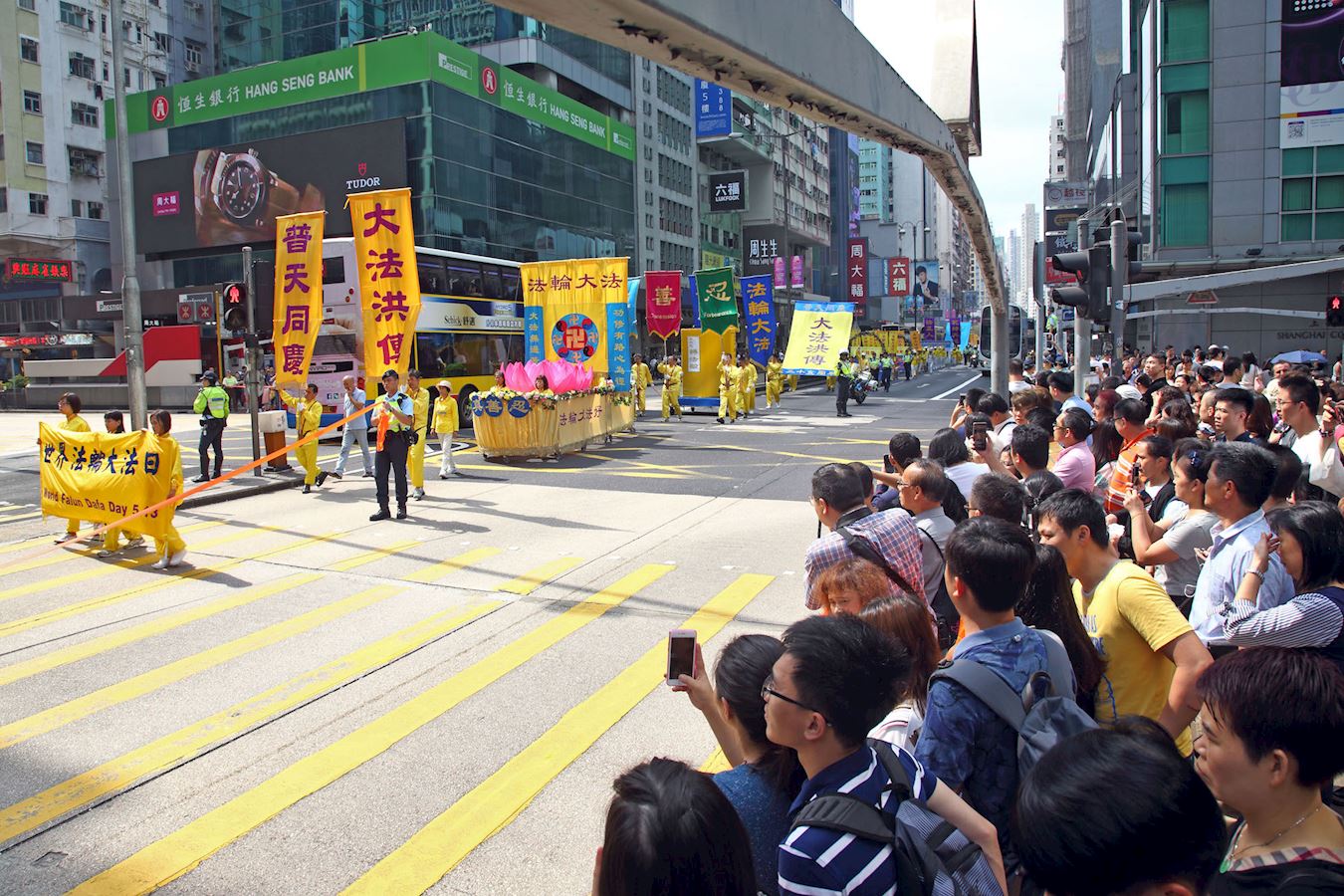 ![]() 图6~11:法轮功学员游行庆祝“世界法轮大法日”,及“法轮大法弘传世界二十五周年”纪念,吸引香港市民及中西游客驻足关注及拍照。 |