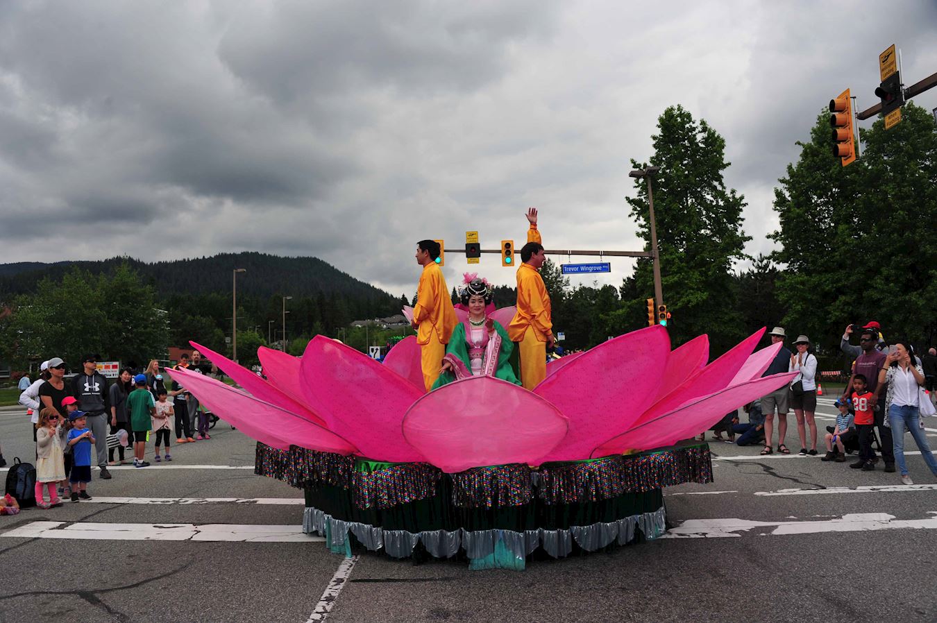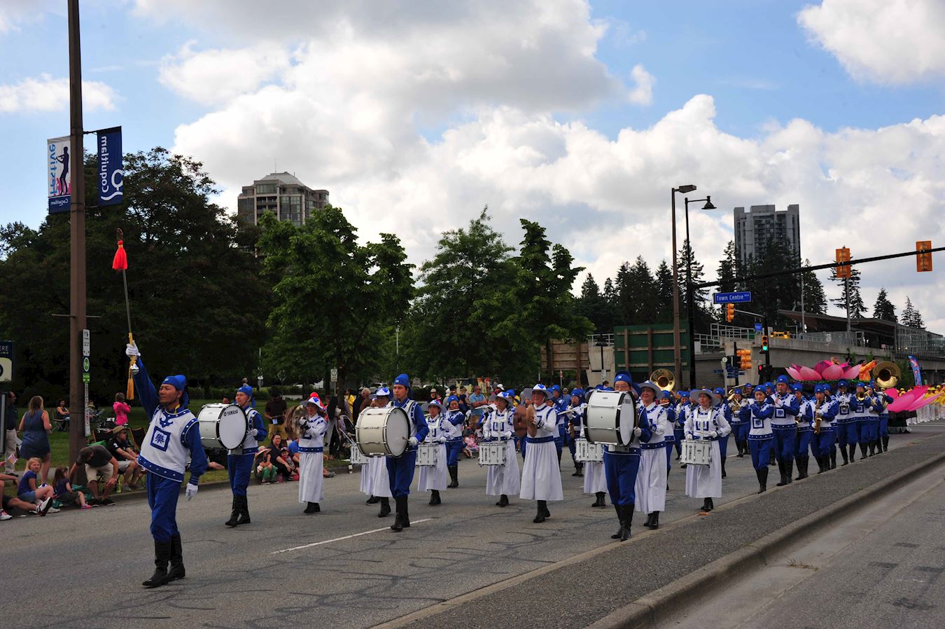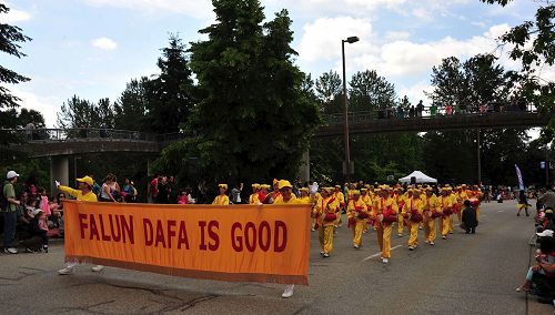 高贵林市位于温哥华市郊,每年的泰迪熊节游行都是社区的盛事,六月十一日这天,很多居民举家早早坐在路边观看游行。温哥华法轮功学员的游行队伍包括,天国乐团,腰鼓队,真善忍花车,法轮功功法演示队等,一路走来受到沿途观众热烈欢迎。很多华裔观众纷纷接受法轮大法真相传单,和为法轮功学员的游行鼓掌或拍摄法轮功学员的游行队伍。