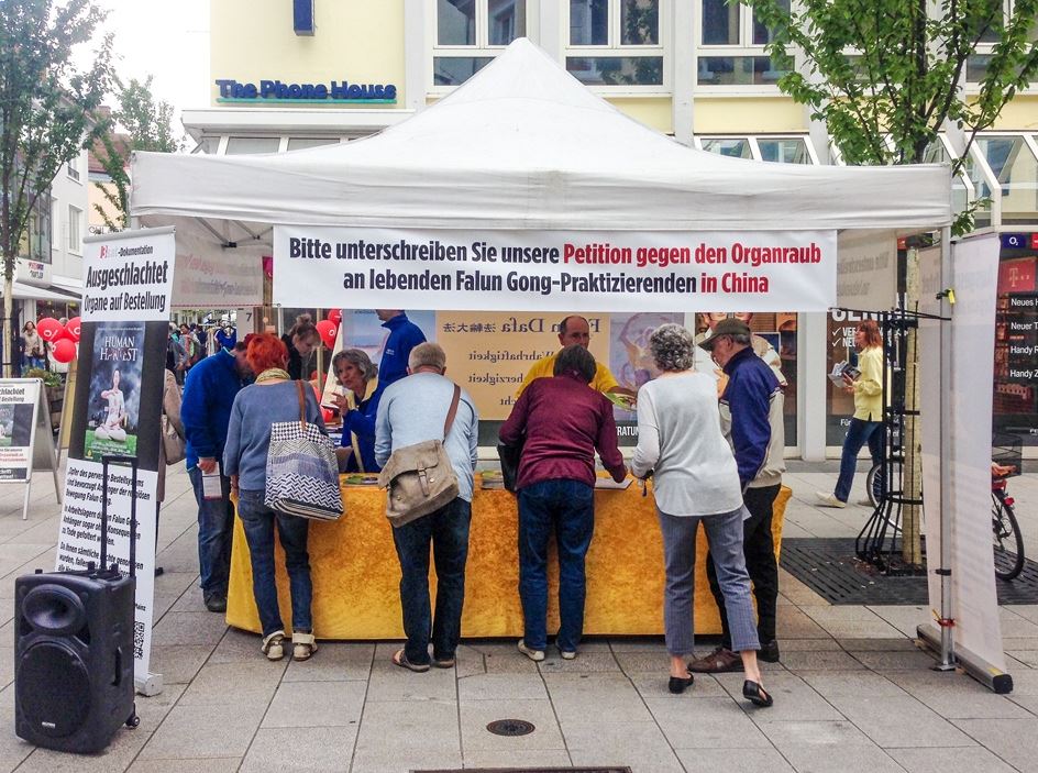 ![]() 图1:二零一七年五月二十日,德国西南部莱茵兰-普法尔茨州的法轮功学员在兰道(Landau)举办信息日,传播法轮功的真相,同时征集“反对中共强摘器官”的签名。 |