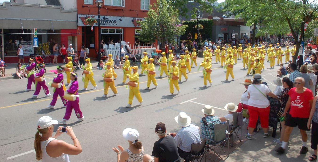【明慧网二零一七年六月二十一日】二零一七年六月十七日与十八日,在这个庆祝父亲节的周末,由多伦多法轮功学员组成的天国乐团、花车队与腰鼓队三个队伍共同组成的法轮大法代表队应邀参加了两场大游行——伯灵顿音乐节之声游行(Sound of Music Festival Parade in Burlington)和奥沙瓦圣日节游行(Oshawa Fiesta Parade),受到沿途观众和主办方的赞赏。