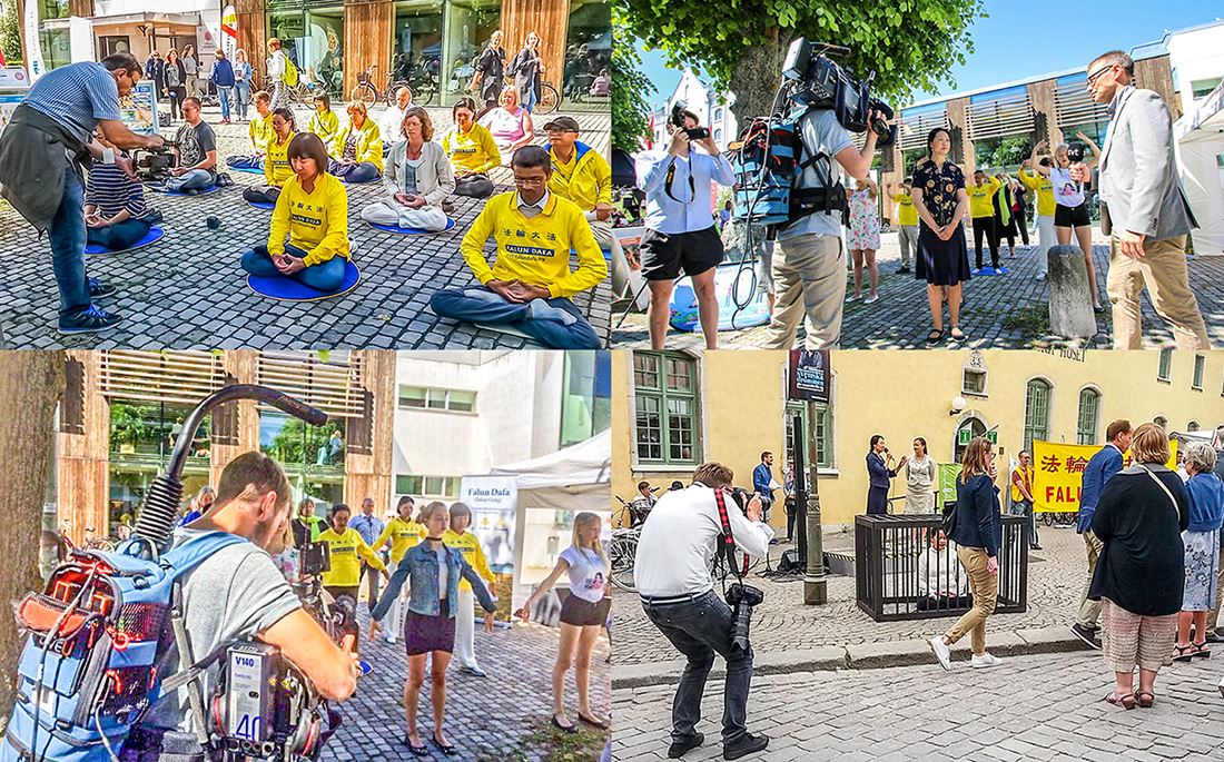 ![]() 图3:瑞典多个主流媒体现场采访了法轮功学员的活动。 |