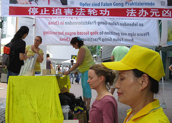 法轮功学员在德国南部多个城市举办活动,向民众介绍法轮功,揭露中共迫害法轮功、特别是活体摘取法轮功学员器官的罪行。