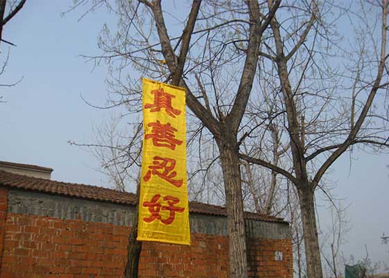 横幅标语传递“真善忍好”