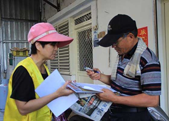 七月十四日下午,台湾宜兰法轮功学员来到苏澳镇的南方澳小渔村游客中心前,向民众展示功法及征集反迫害签名。